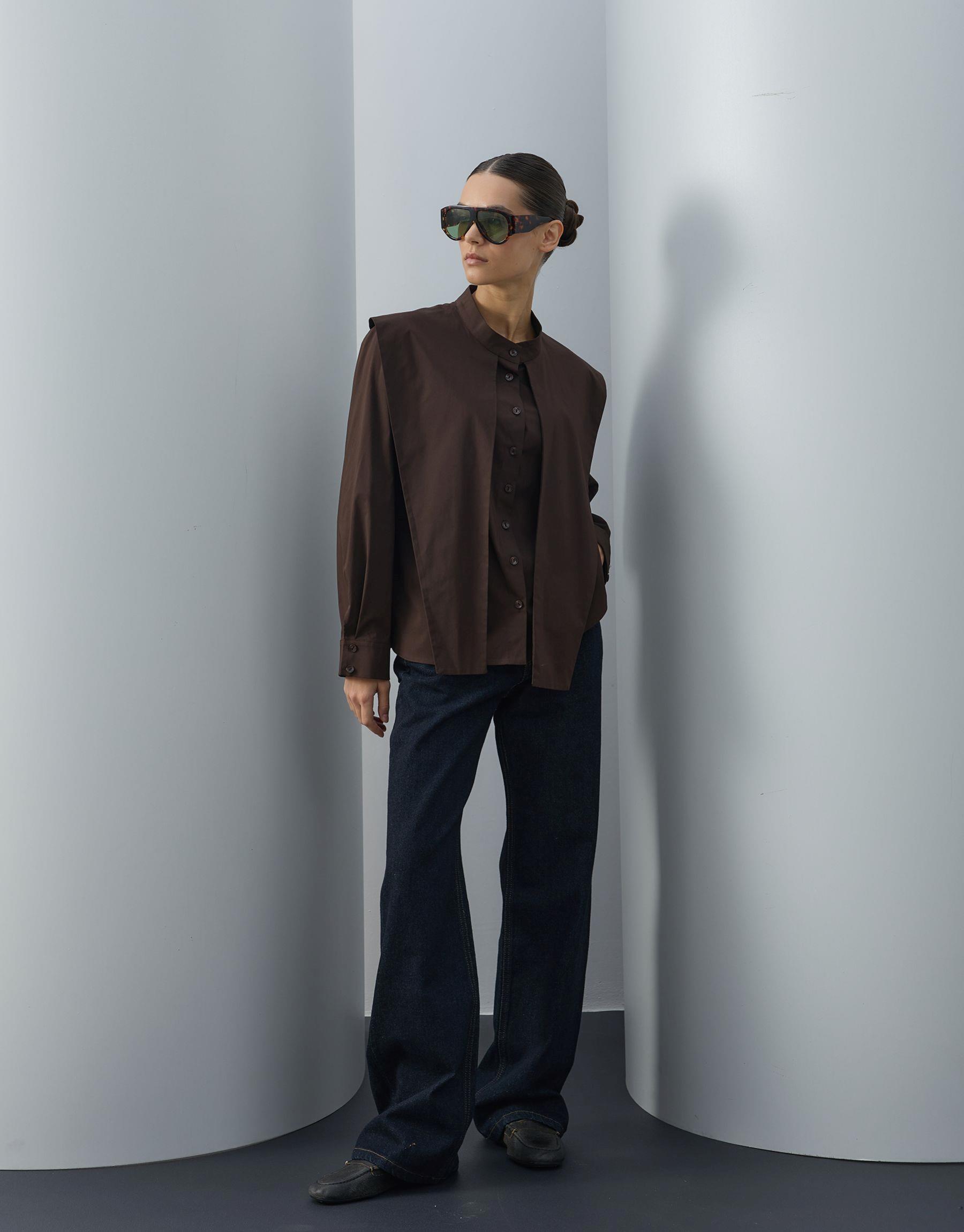 Bayan Acı Kahve Poplin Aller Parçalı Gömlek | Sarprive