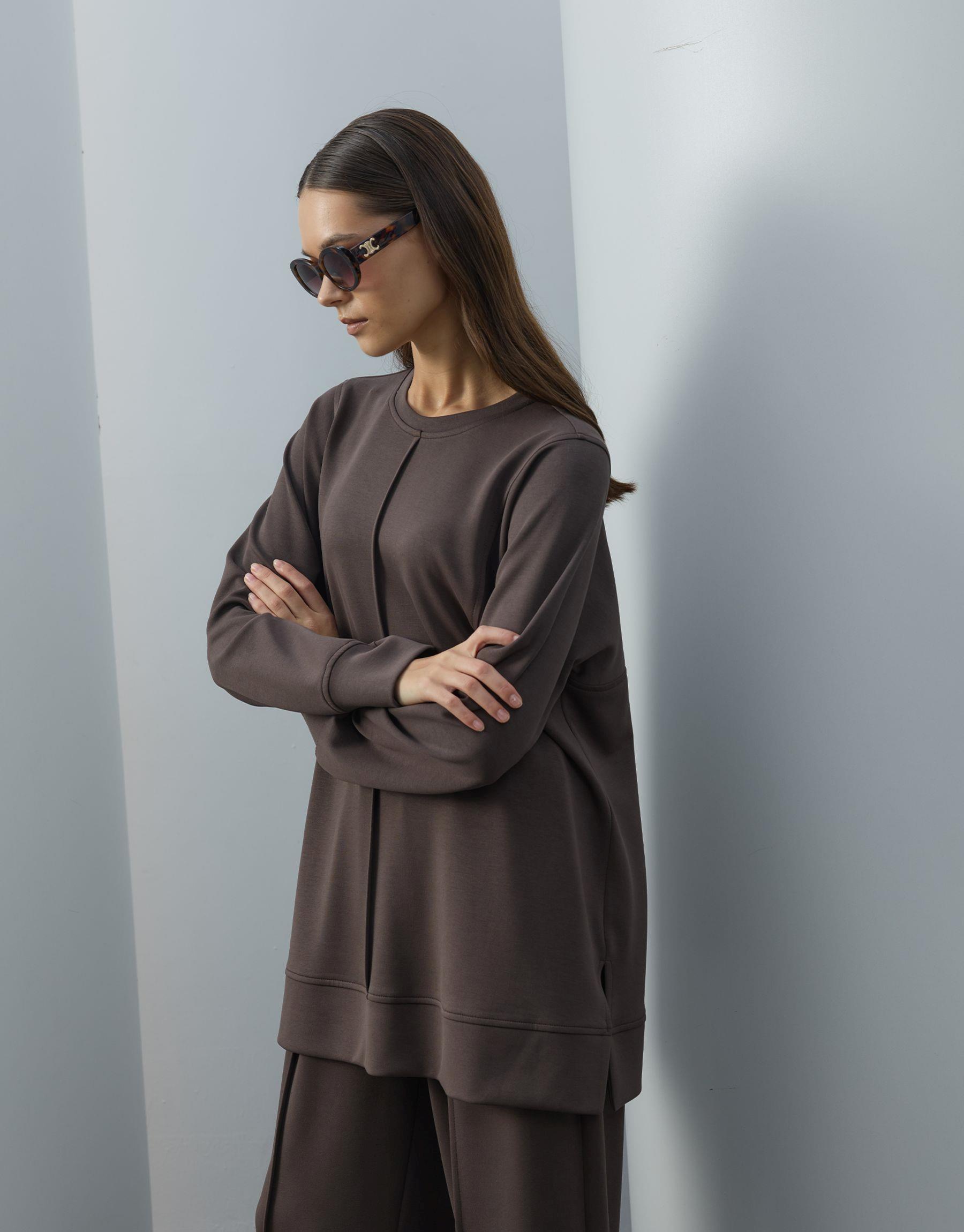 Bayan Acı Kahve Modal Nervür Dikişli Takım | Sarprive