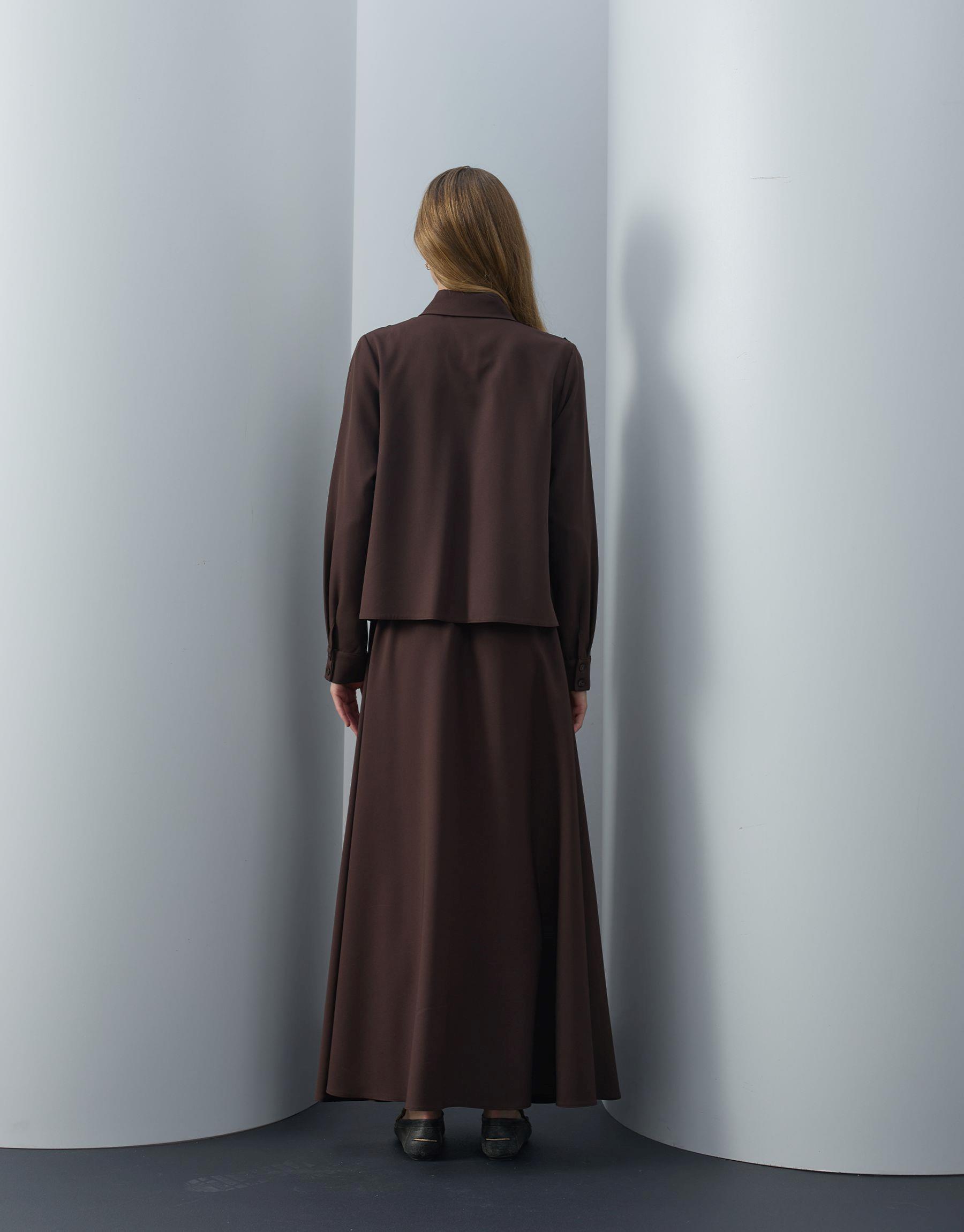Bayan Acı Kahve Nakış Detaylı Etekli Takım | Sarprive