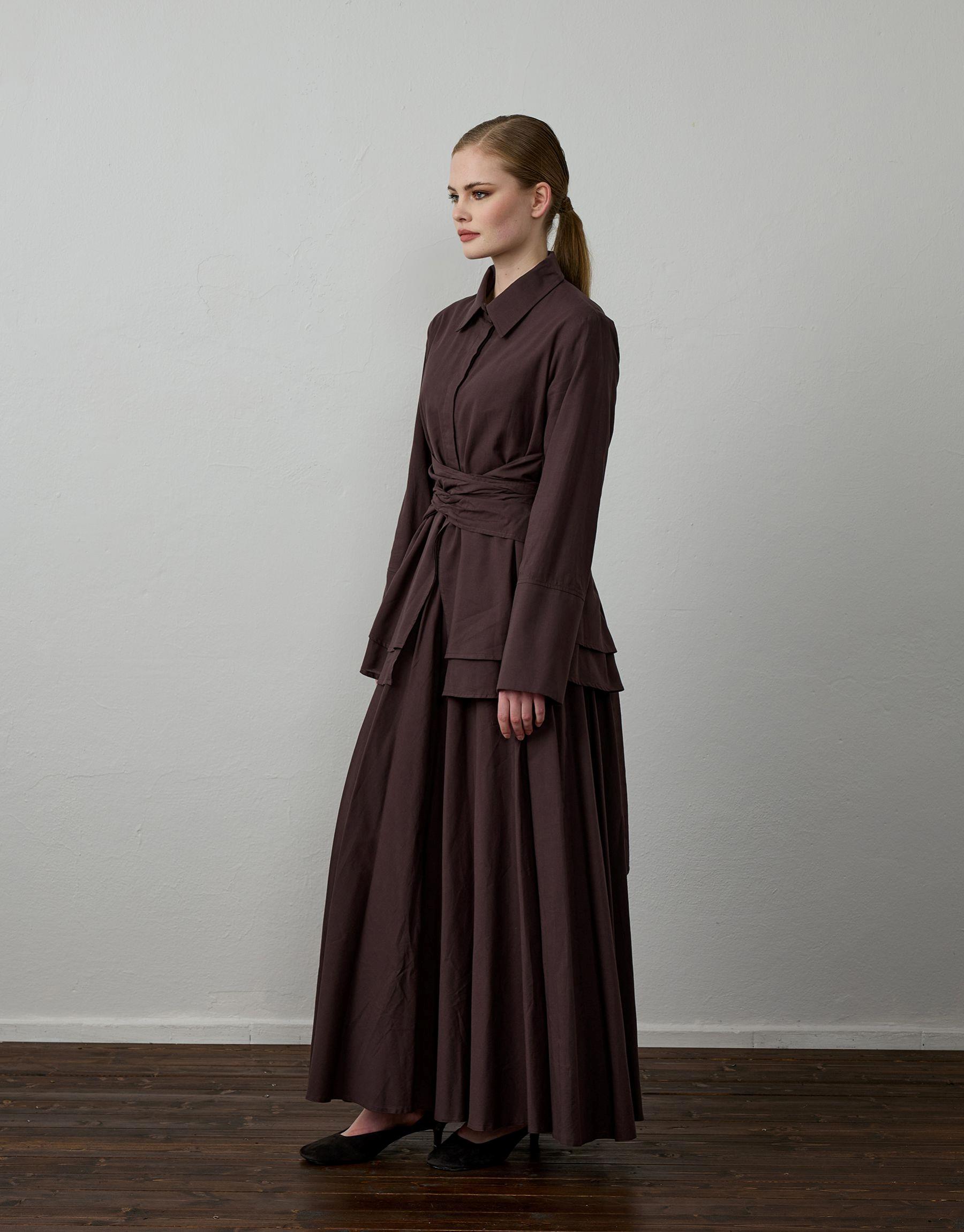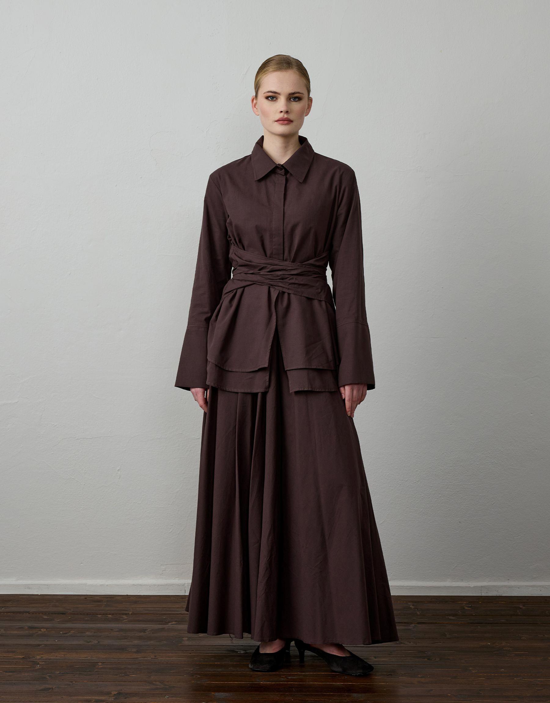 Bayan Acı Kahve Pamuklu Kemer Detaylı Takım | Sarprive