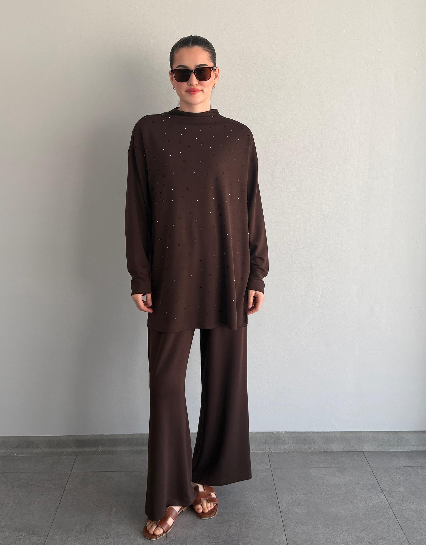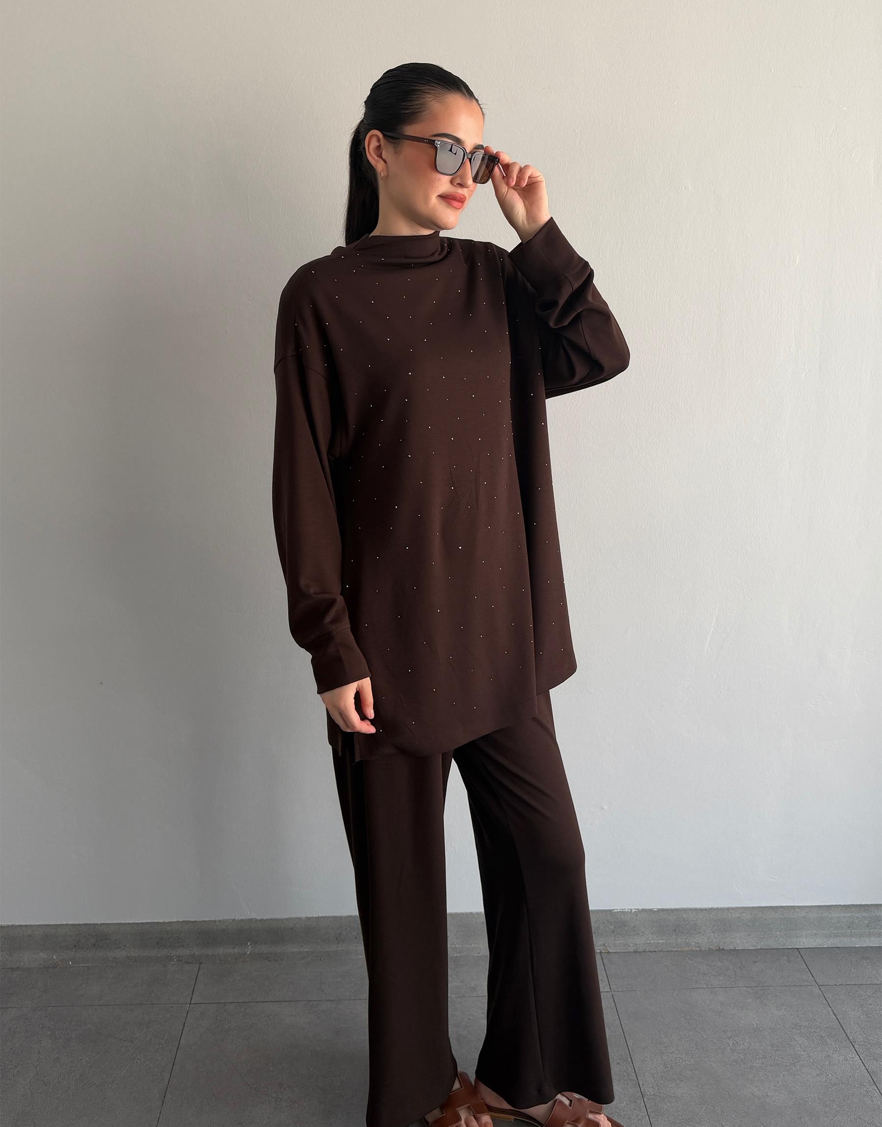 Bayan Acı Kahve Şakayık Modal Taşlı Takım | Sarprive