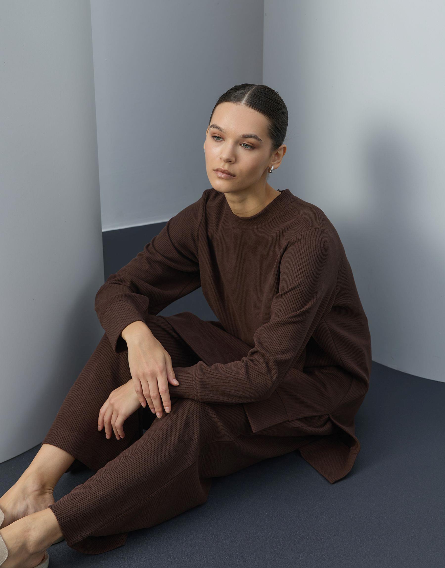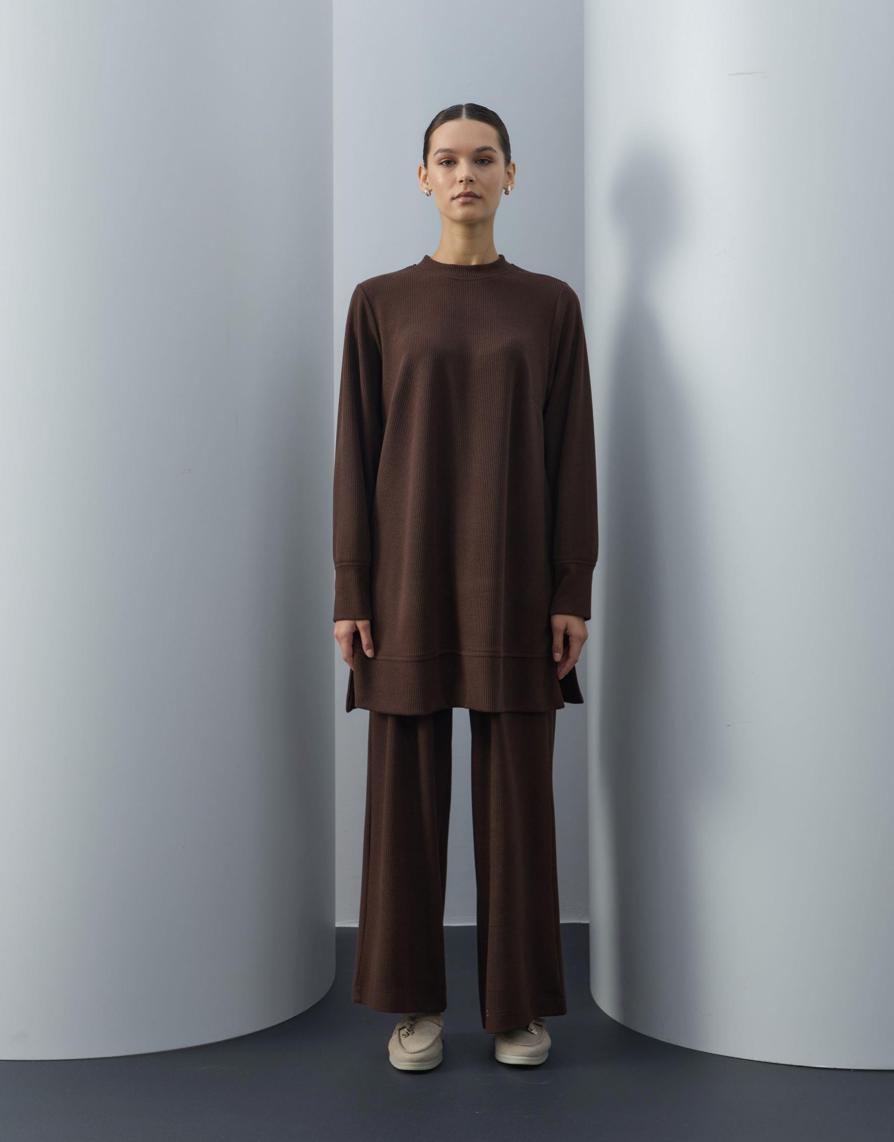 Bayan Acı Kahve Triko Bol Formlu Takım | Sarprive