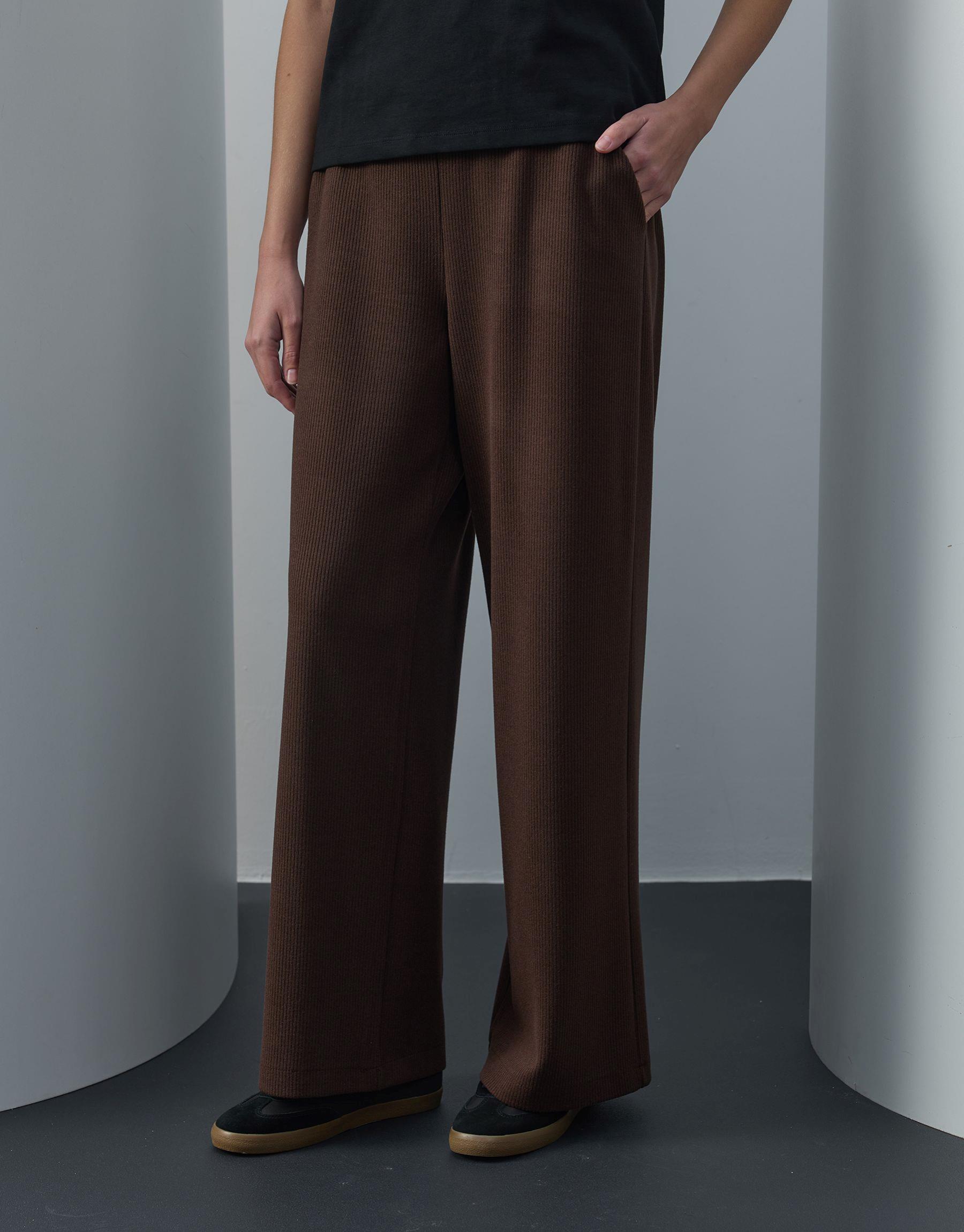 Bayan Acı Kahve Triko Cepli Bol Pantolon | Sarprive