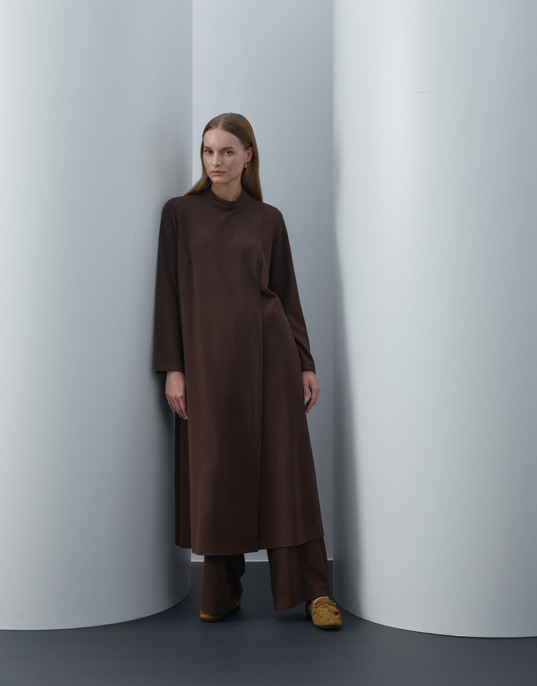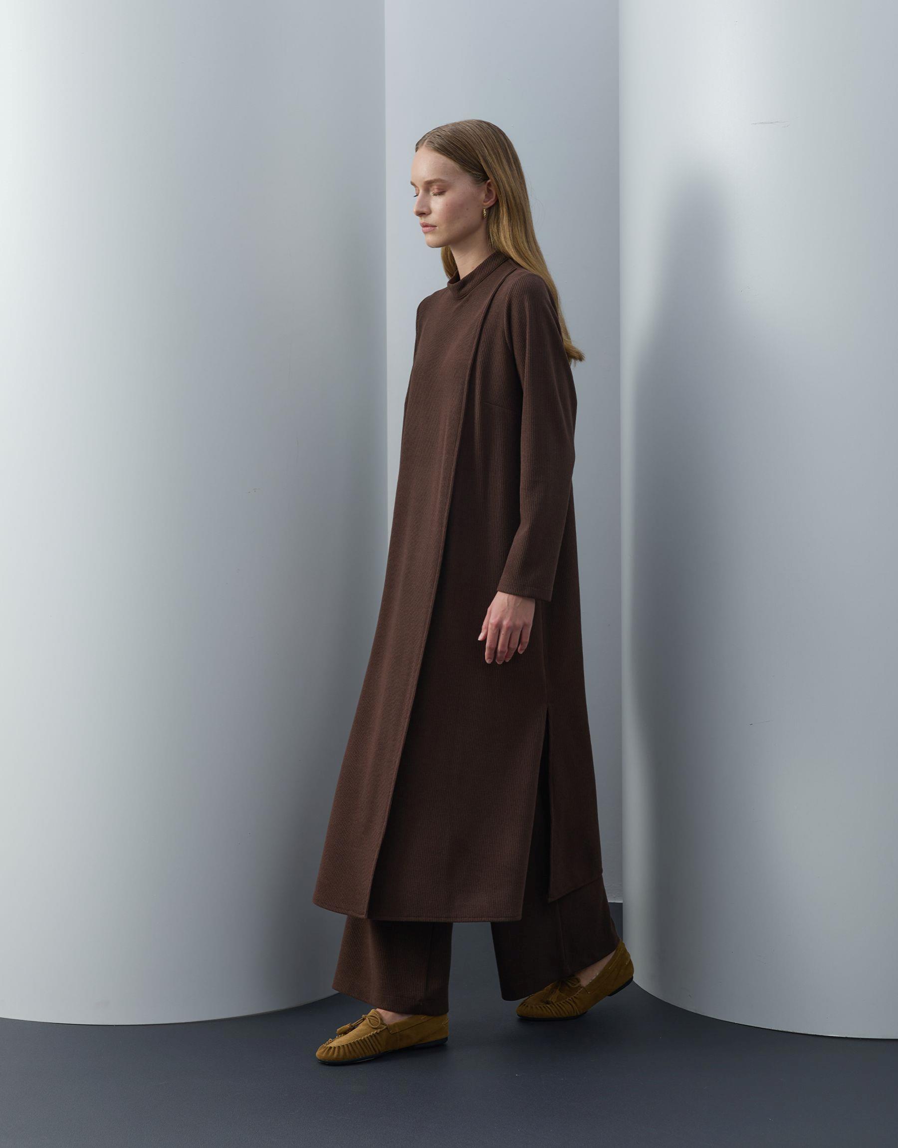Bayan Acı Kahve Triko Kapaklı Bol Form Takım | Sarprive