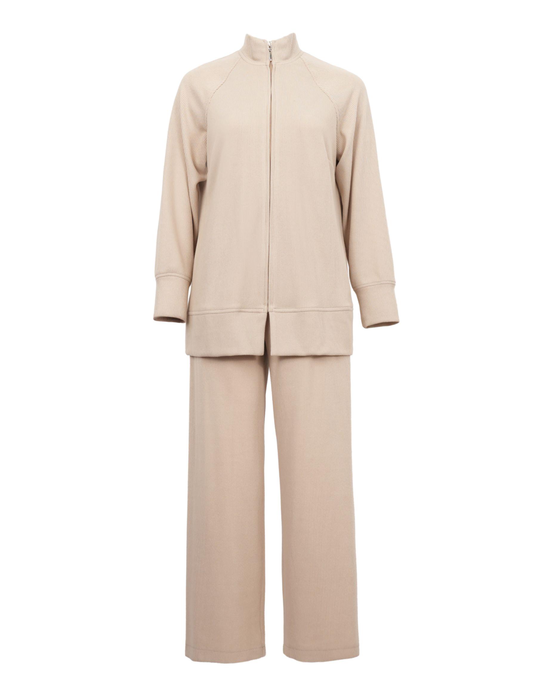 Bayan Bej Triko Fermuarlı Bol Takım | Sarprive