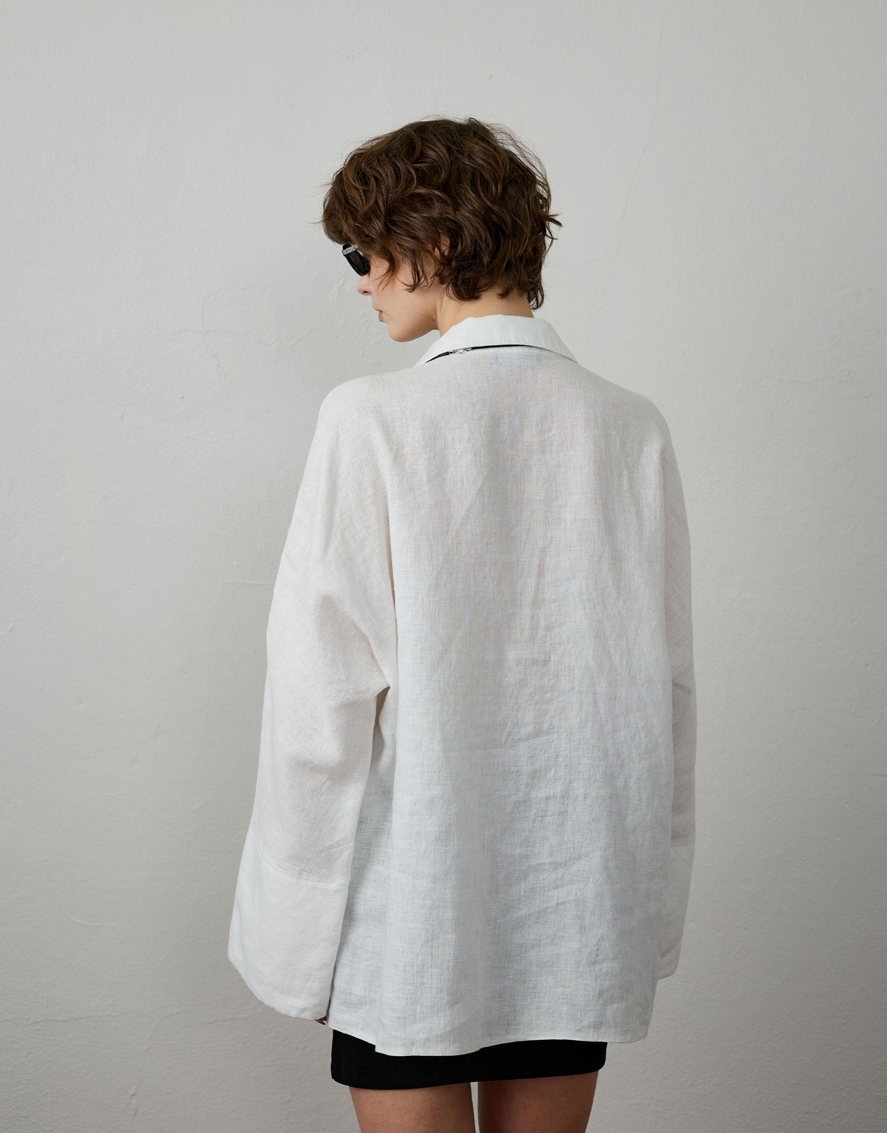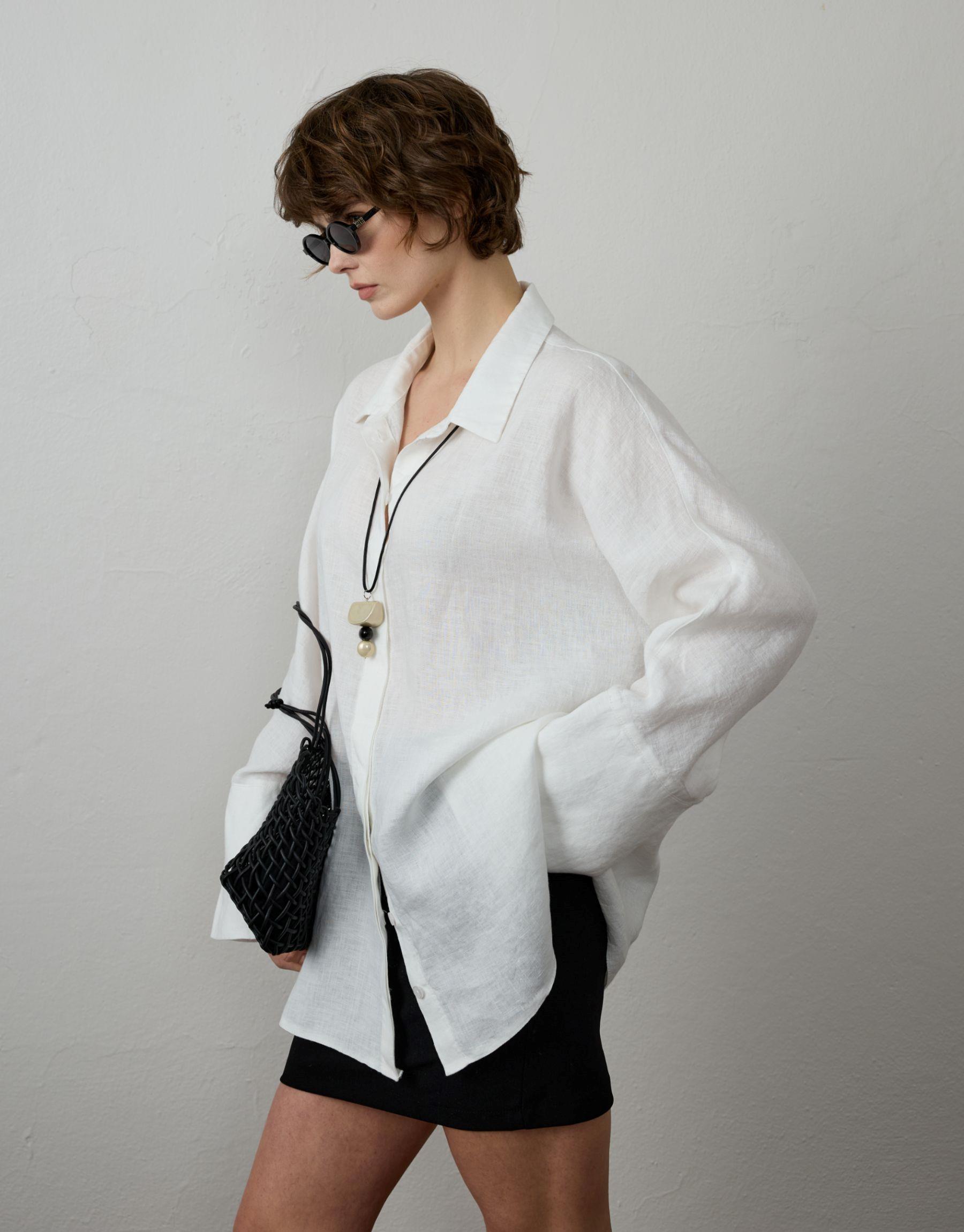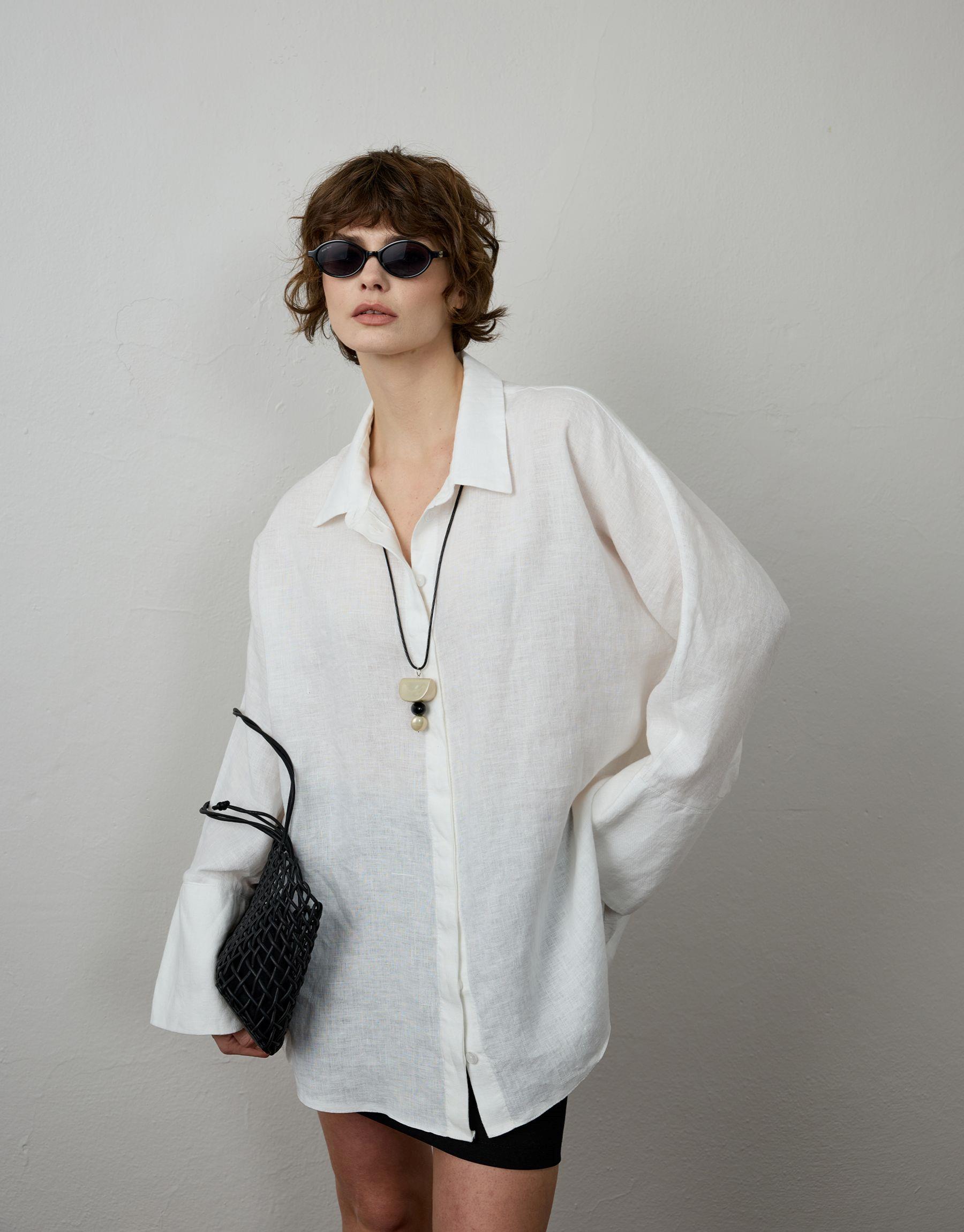 Bayan Beyaz %100 Keten Seyyar Kemerli Gömlek | Sarprive