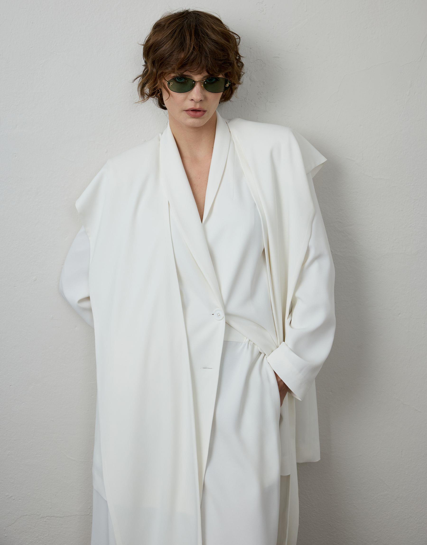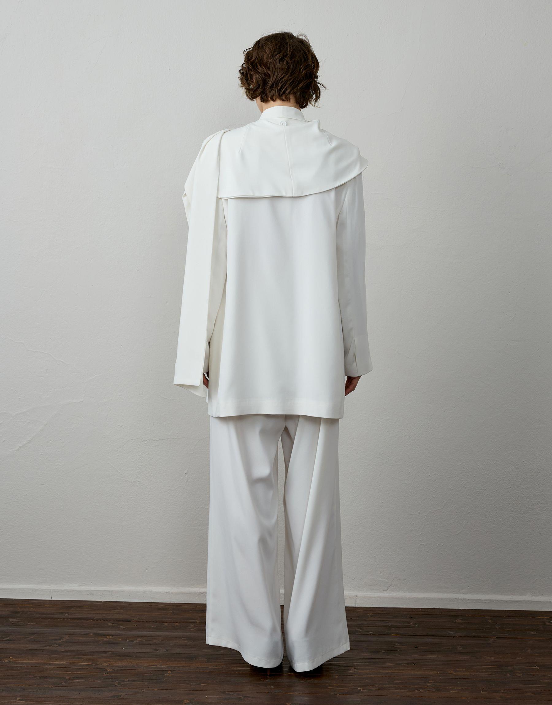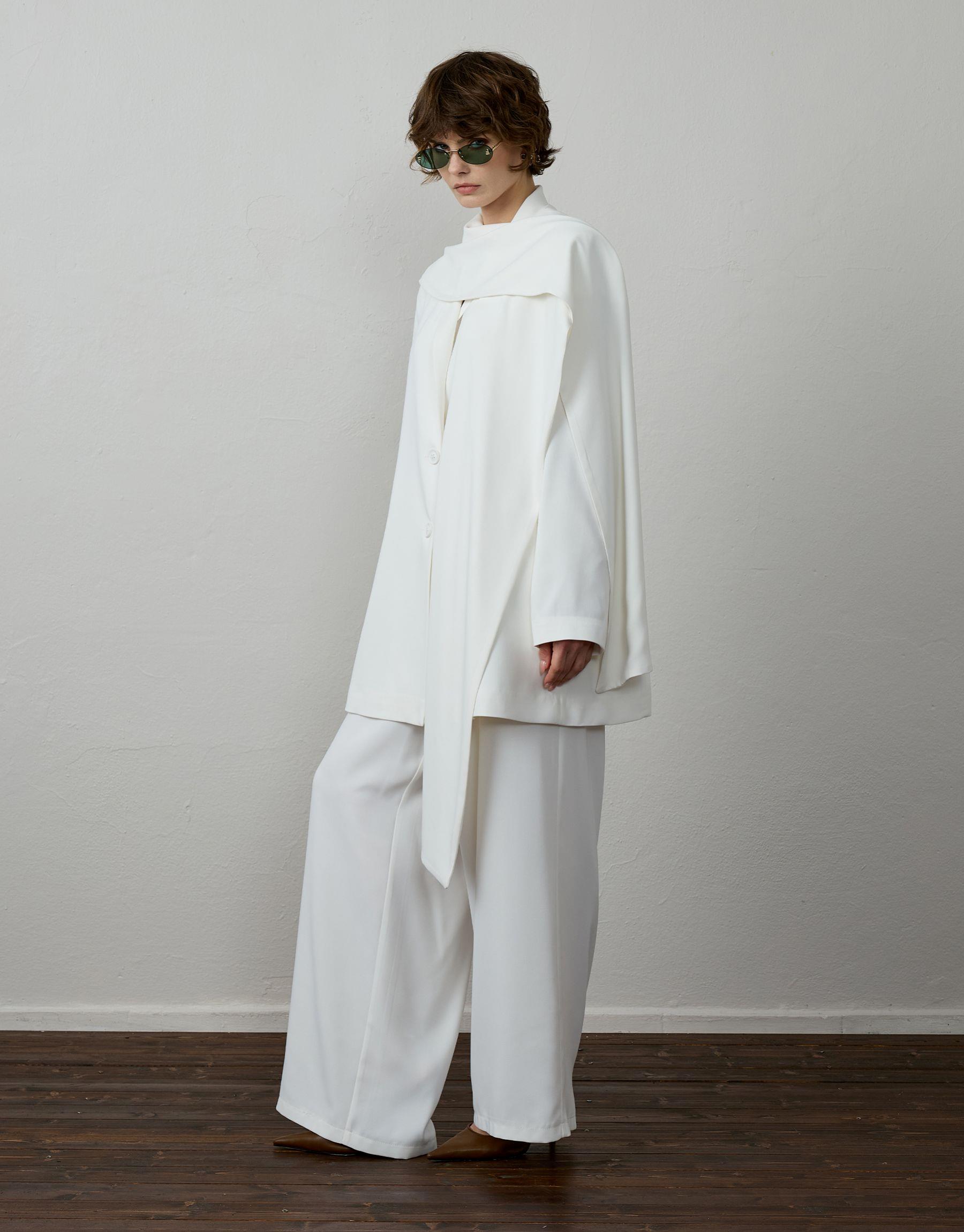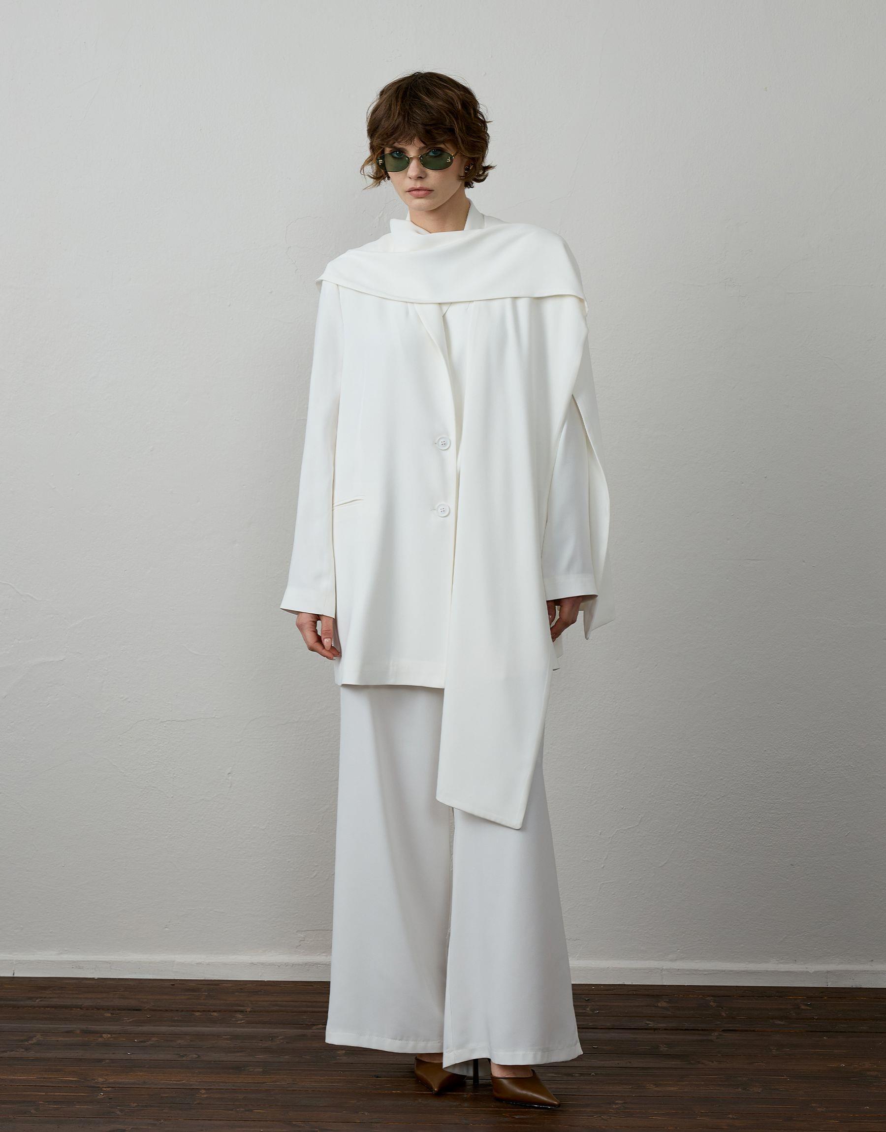 Bayan Beyaz Adriana Seyyar Fular Detaylı Takım | Sarprive
