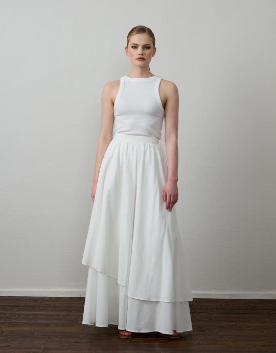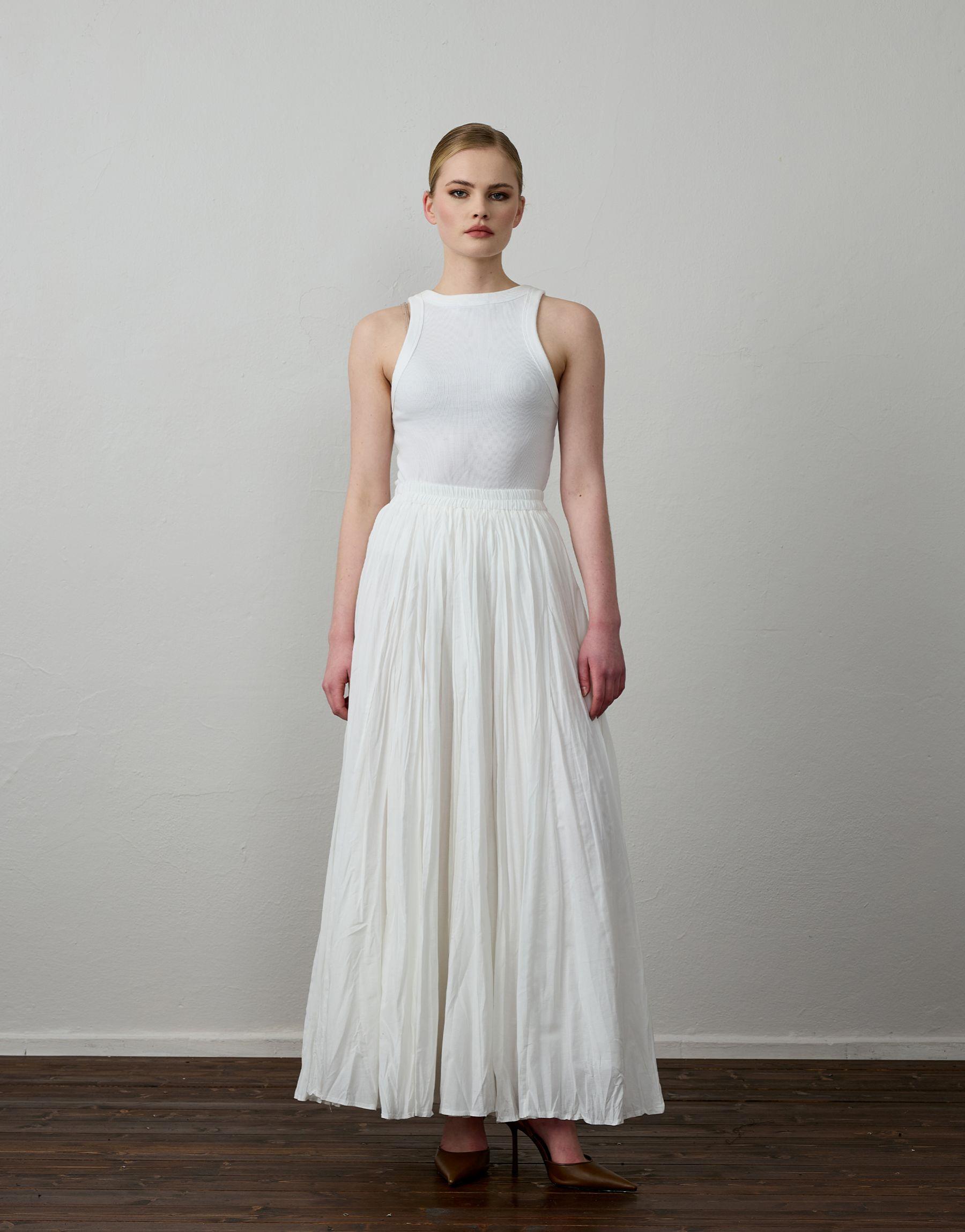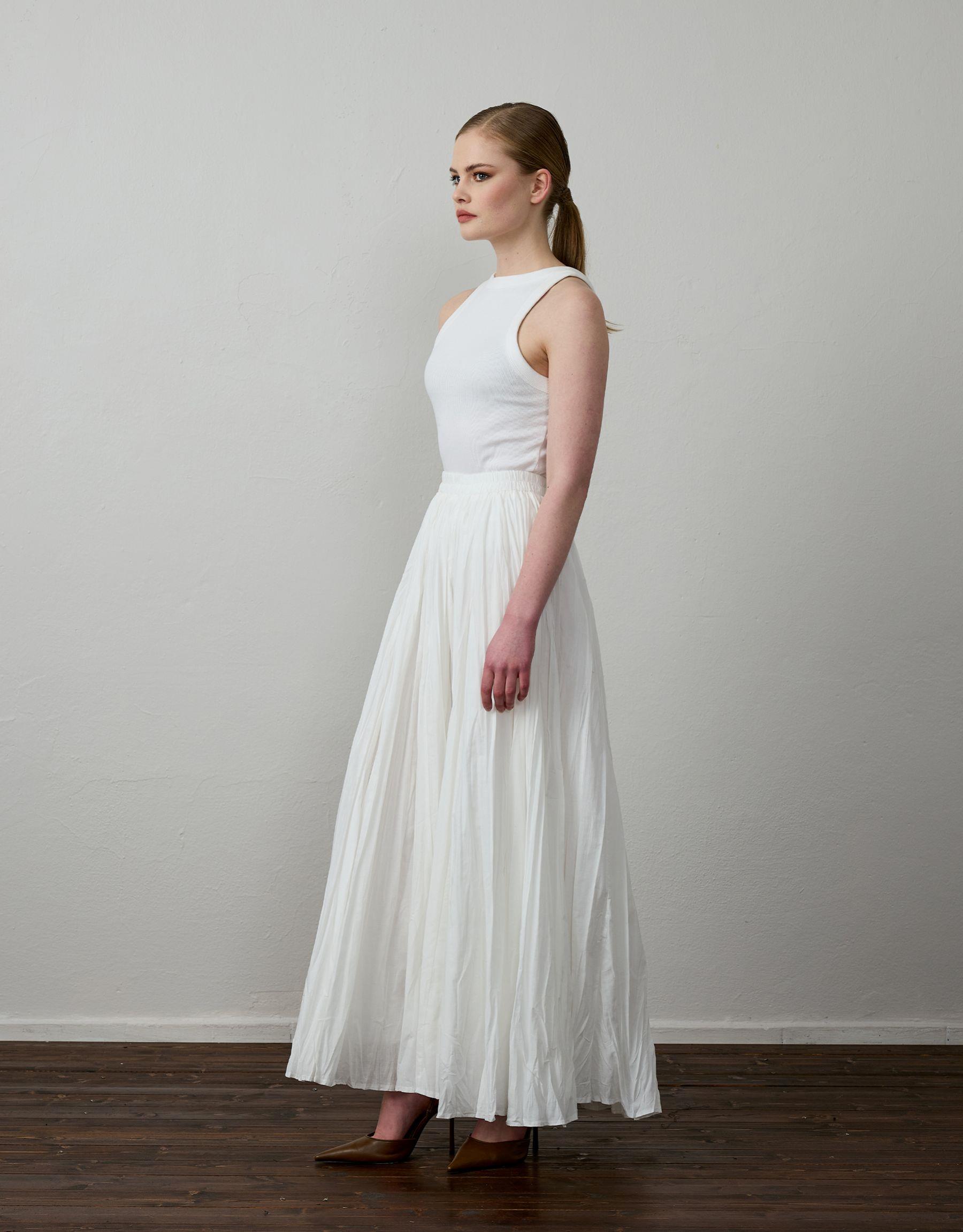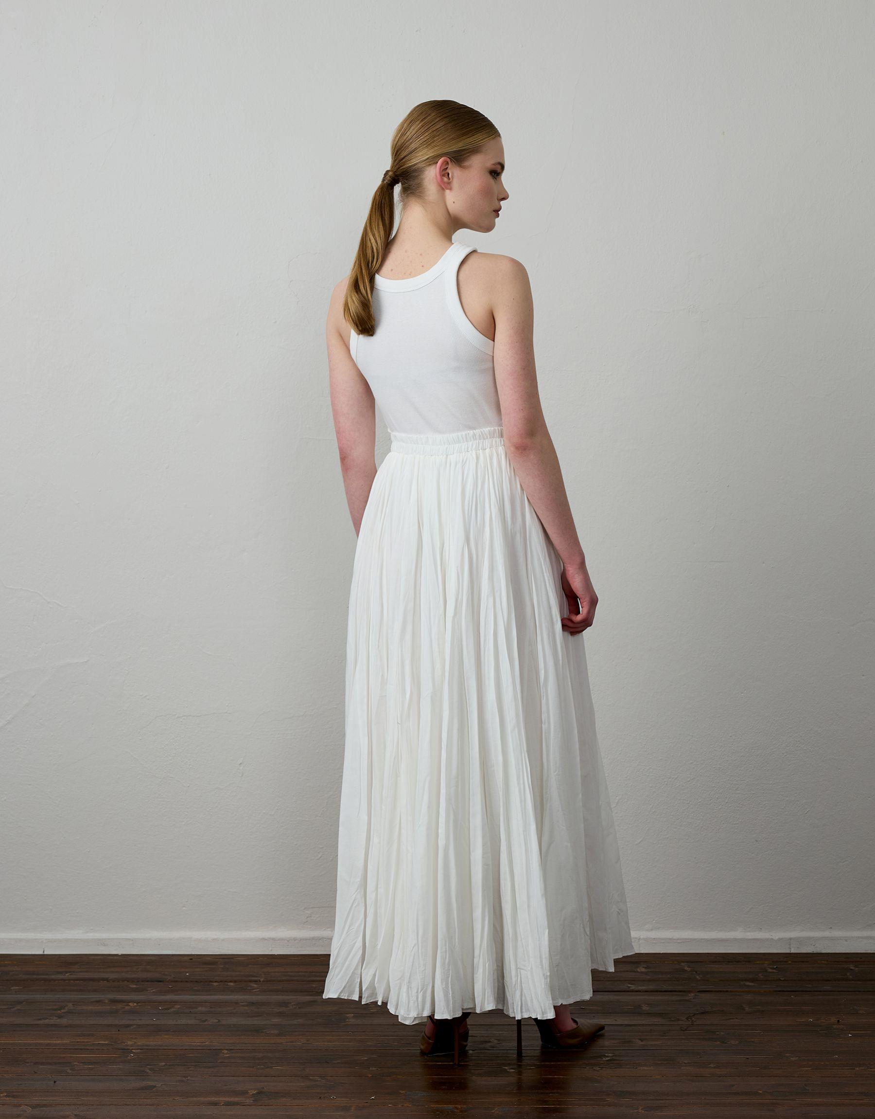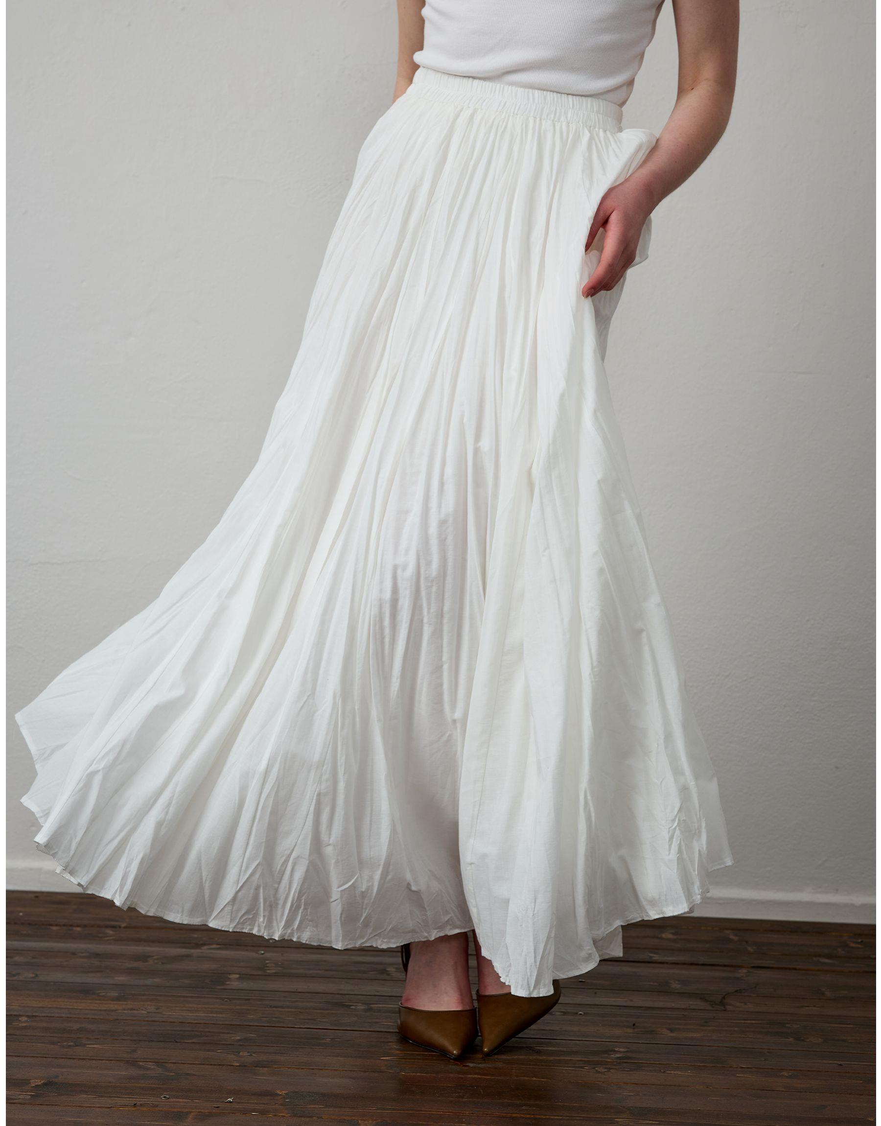Bayan Beyaz Pamuklu Godeli Hafif Kraşlı Etek | Sarprive