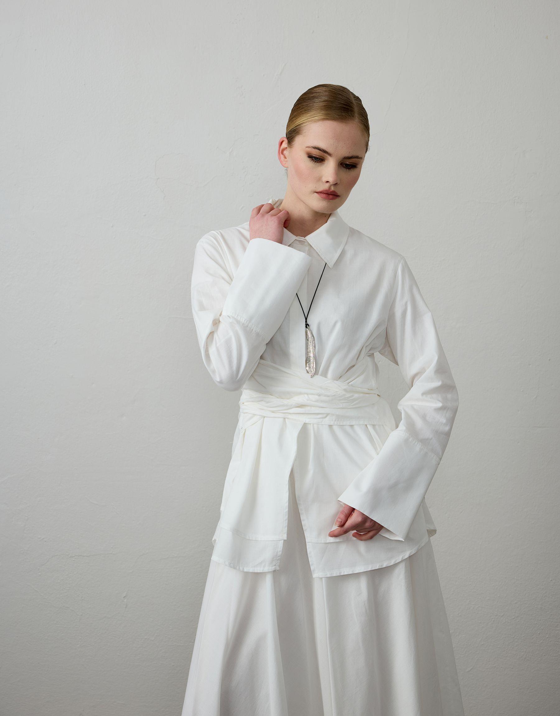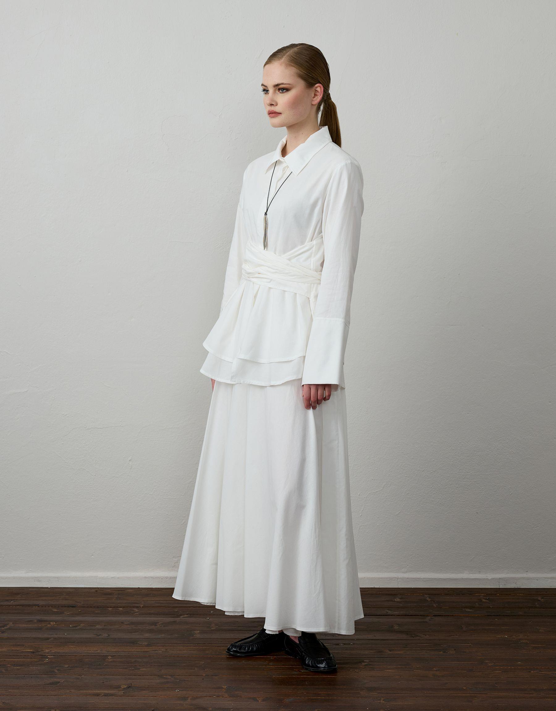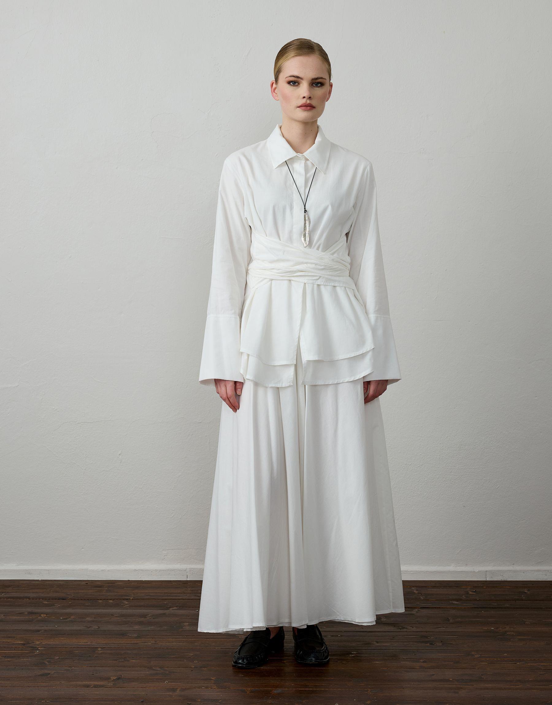Bayan Beyaz Pamuklu Kemer Detaylı Takım | Sarprive
