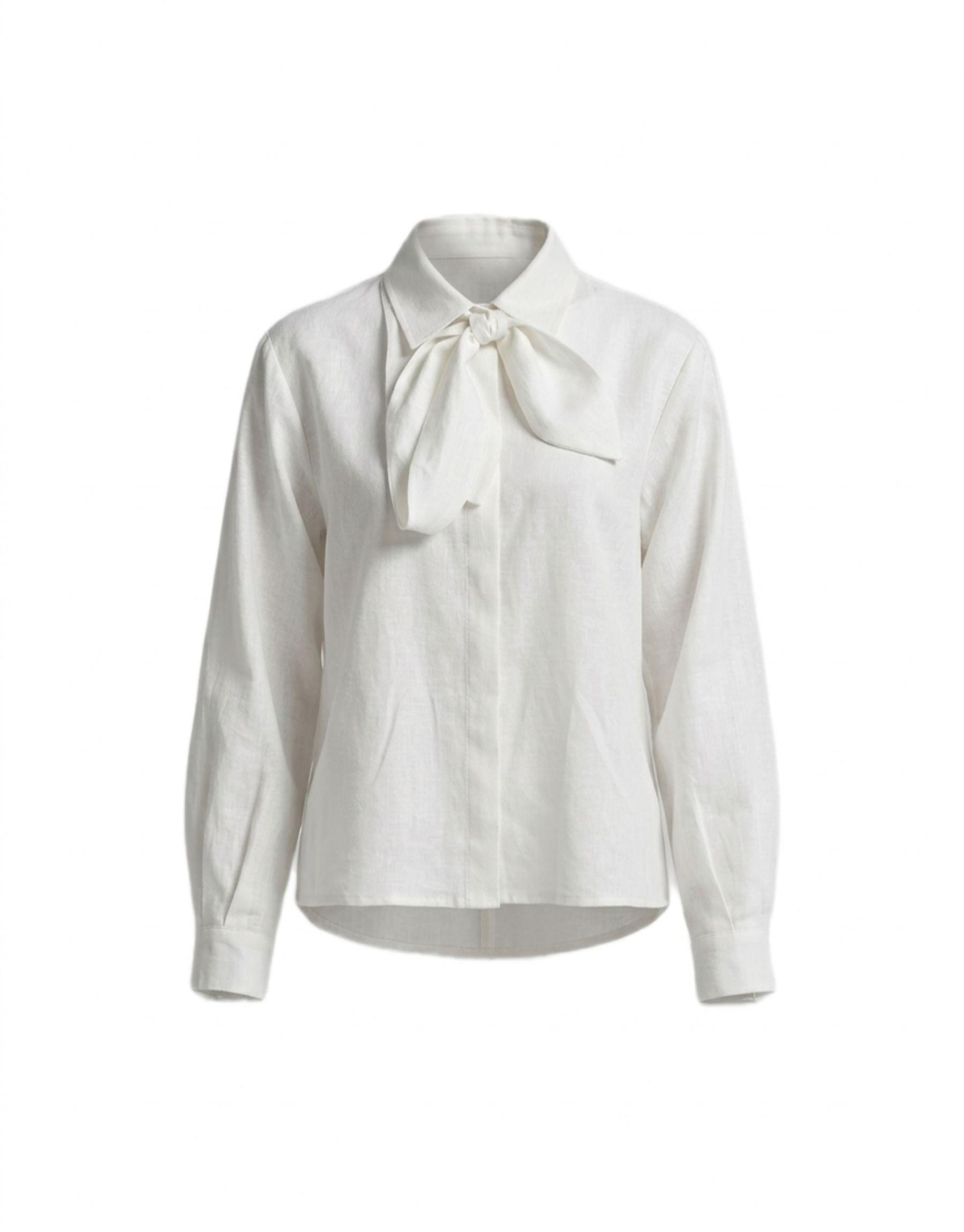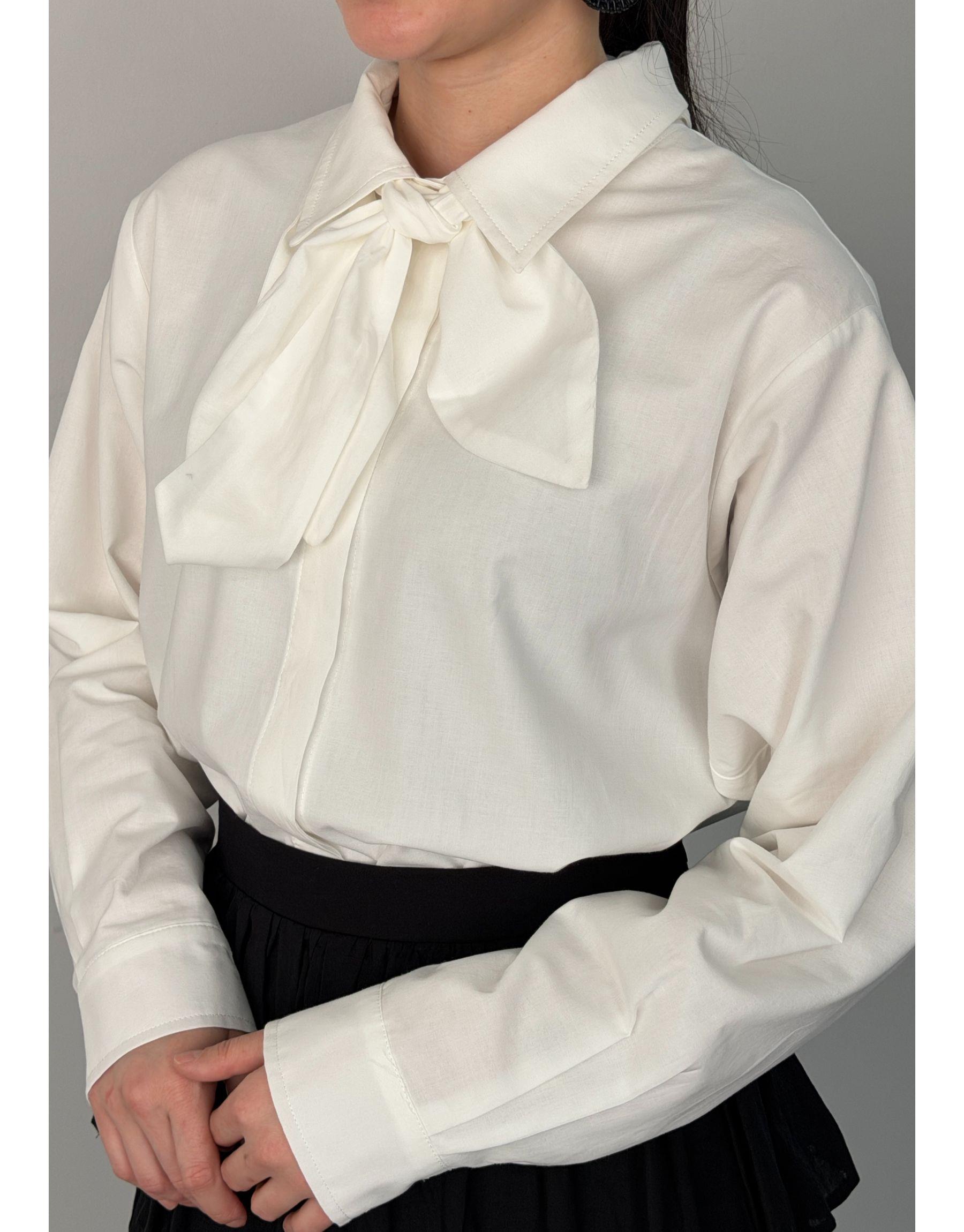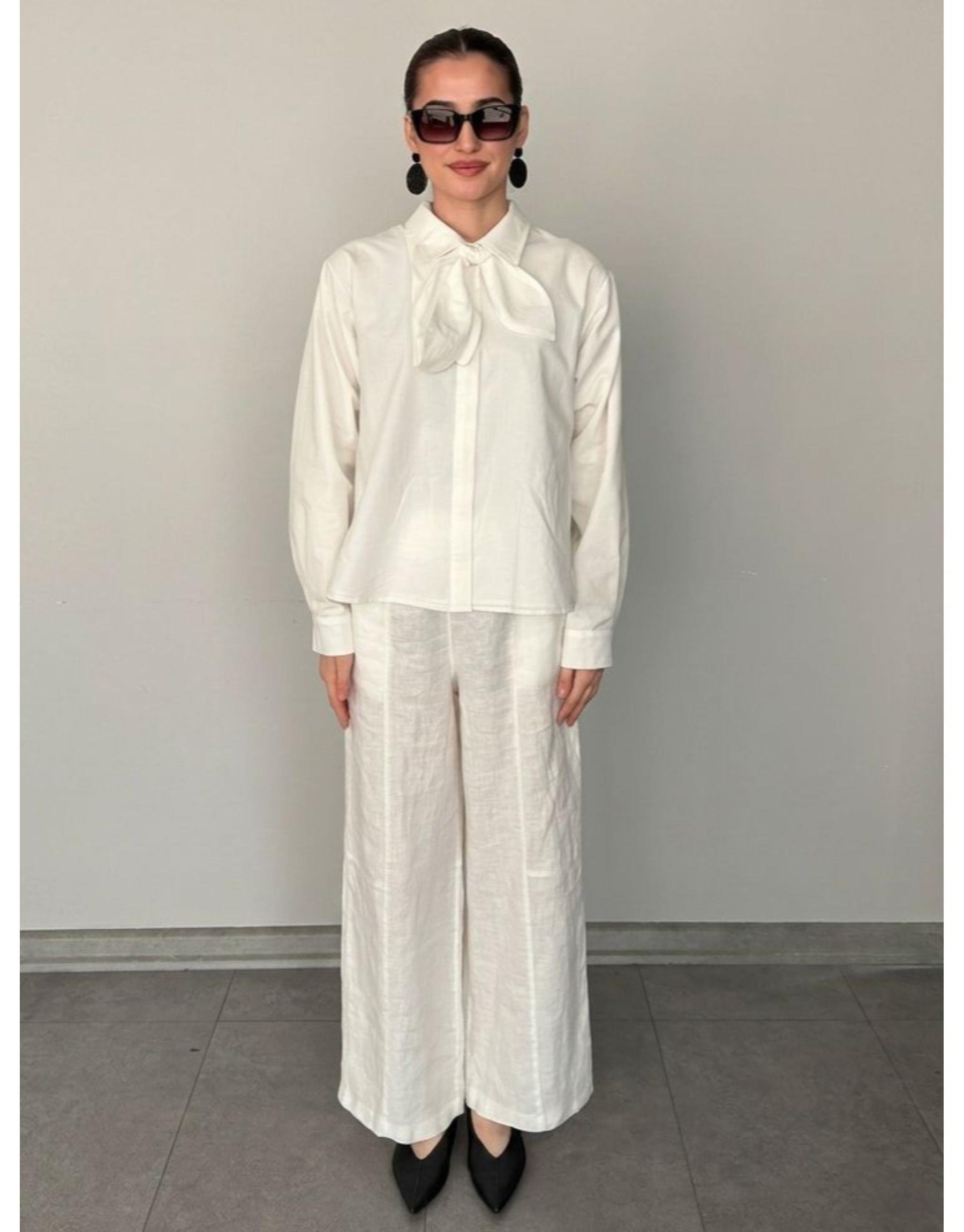 Beyaz Pamuklu Seyyar Fularlı Gömlek