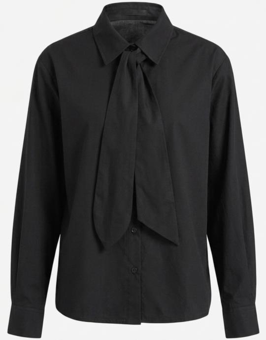 Siyah Pamuklu Seyyar Fularlı Gömlek
