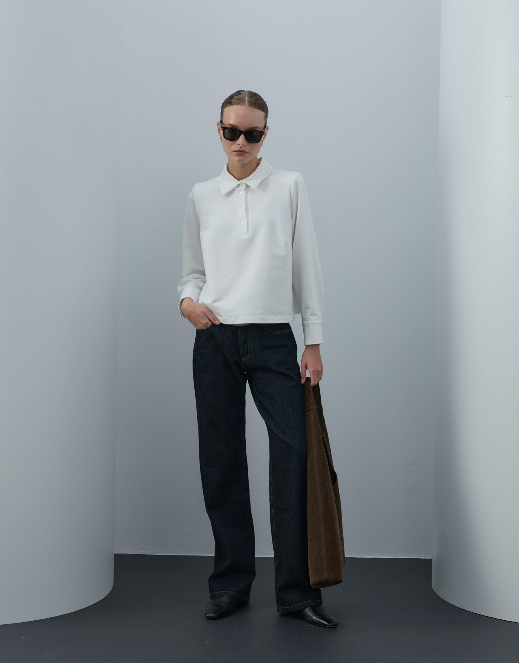 Açık Lacivert Triko Fermuarlı Kısa Sweat