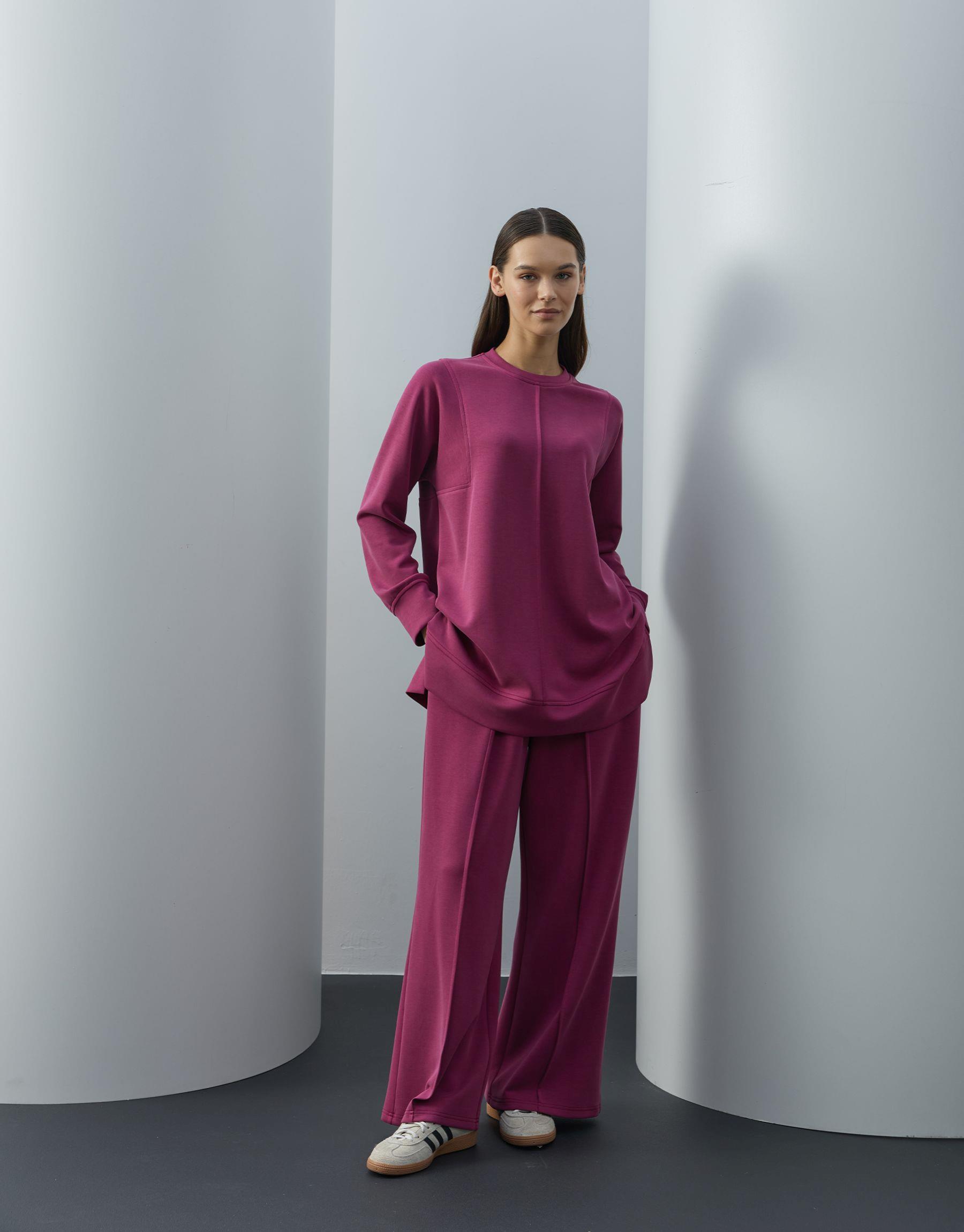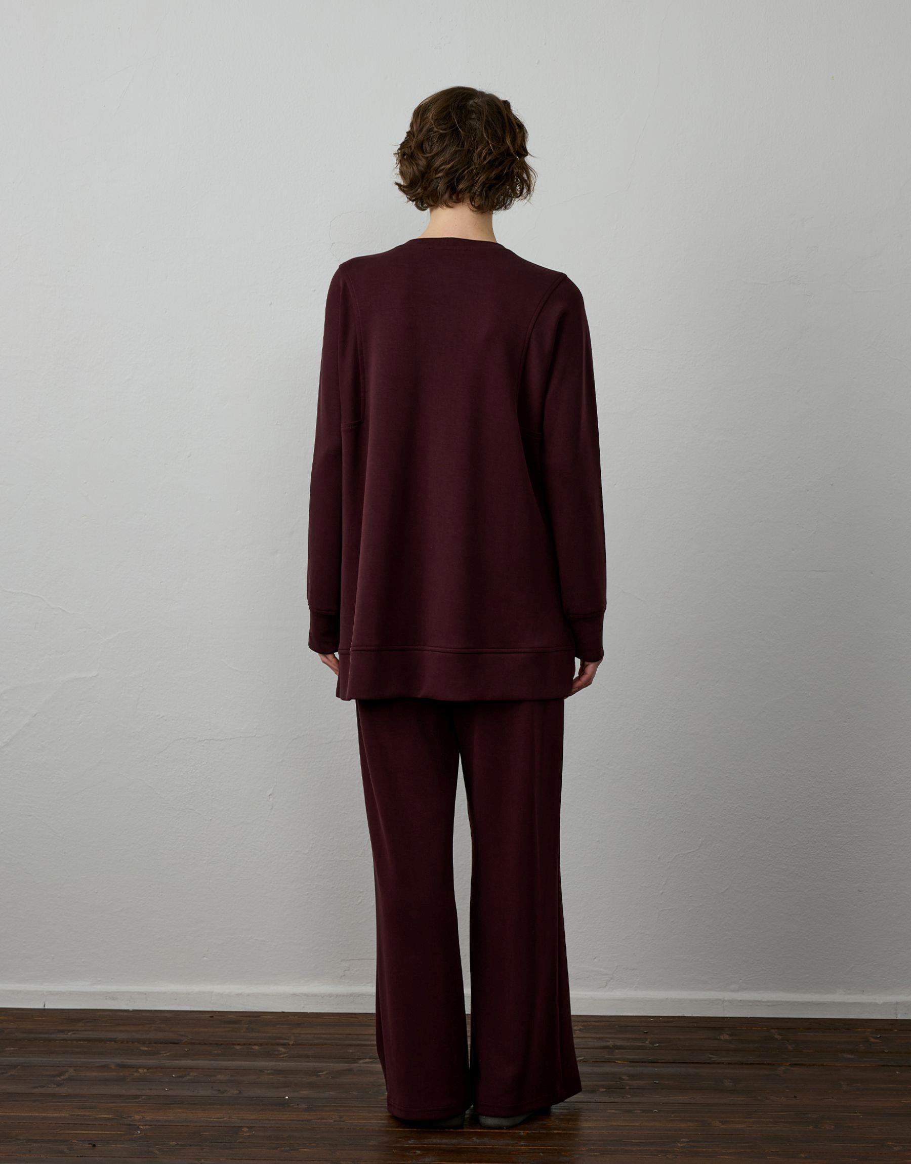 Bayan Bordo Modal Nervür Dikişli Takım | Sarprive