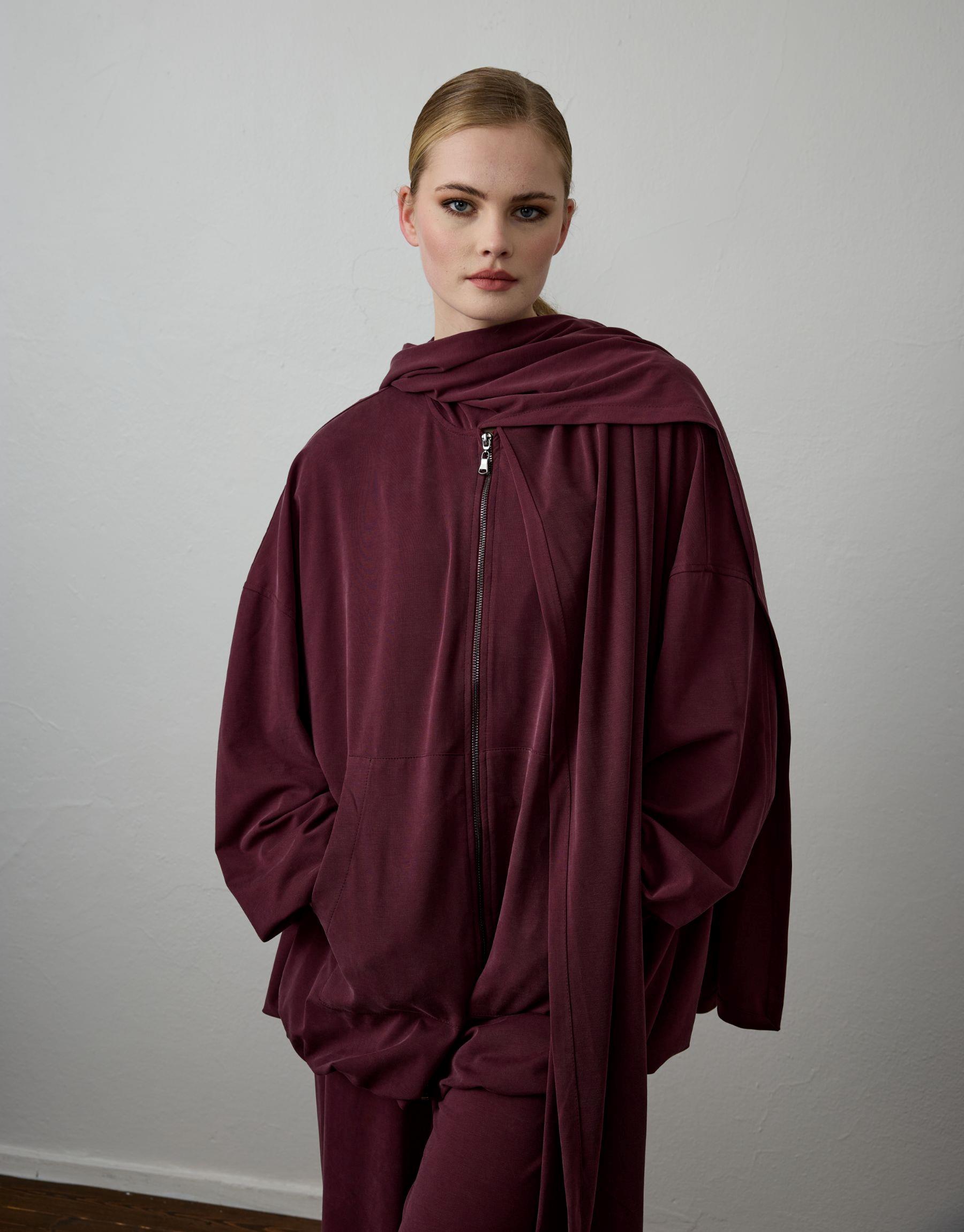 Bayan Bordo Örme Şal Detaylı Takım | Sarprive