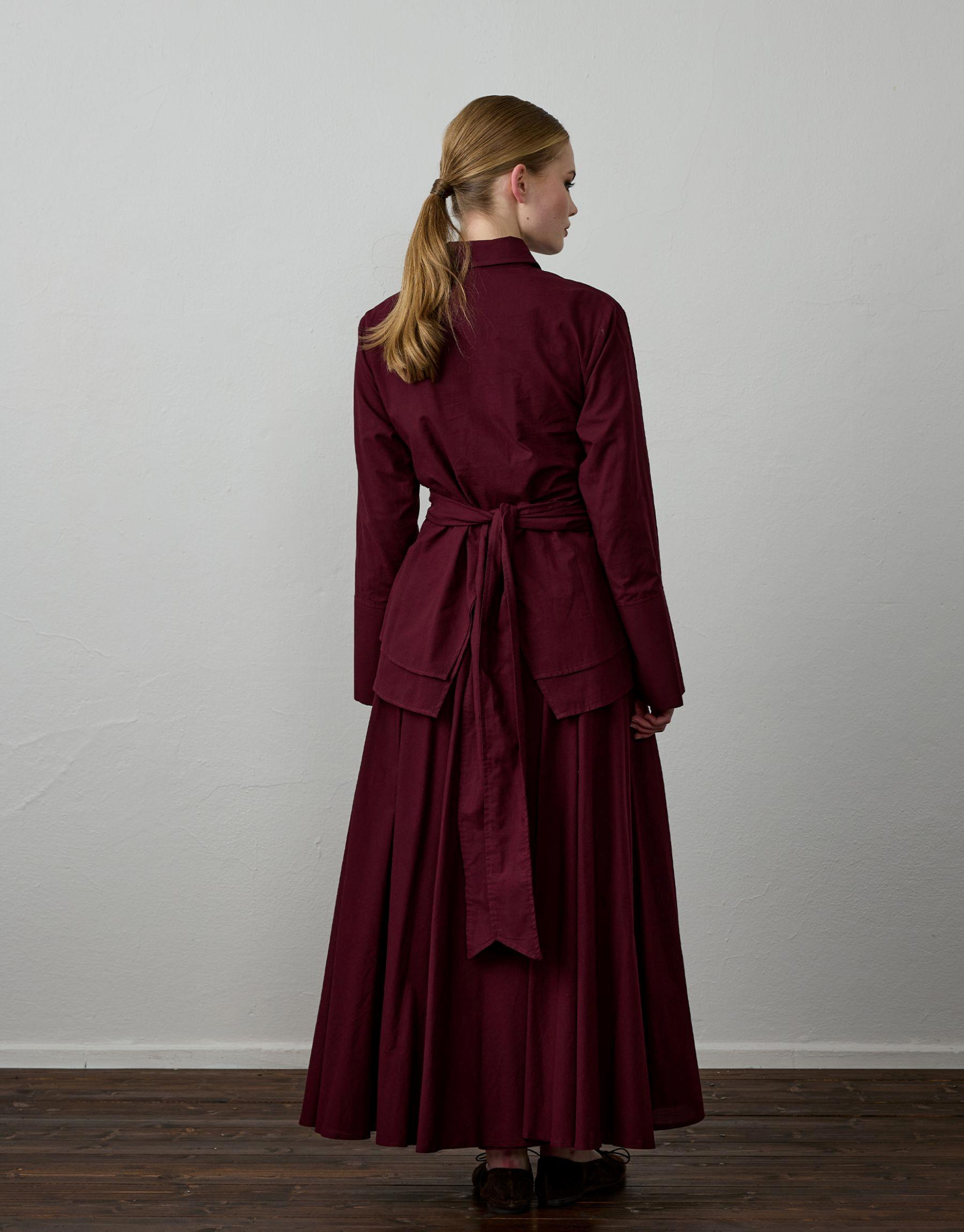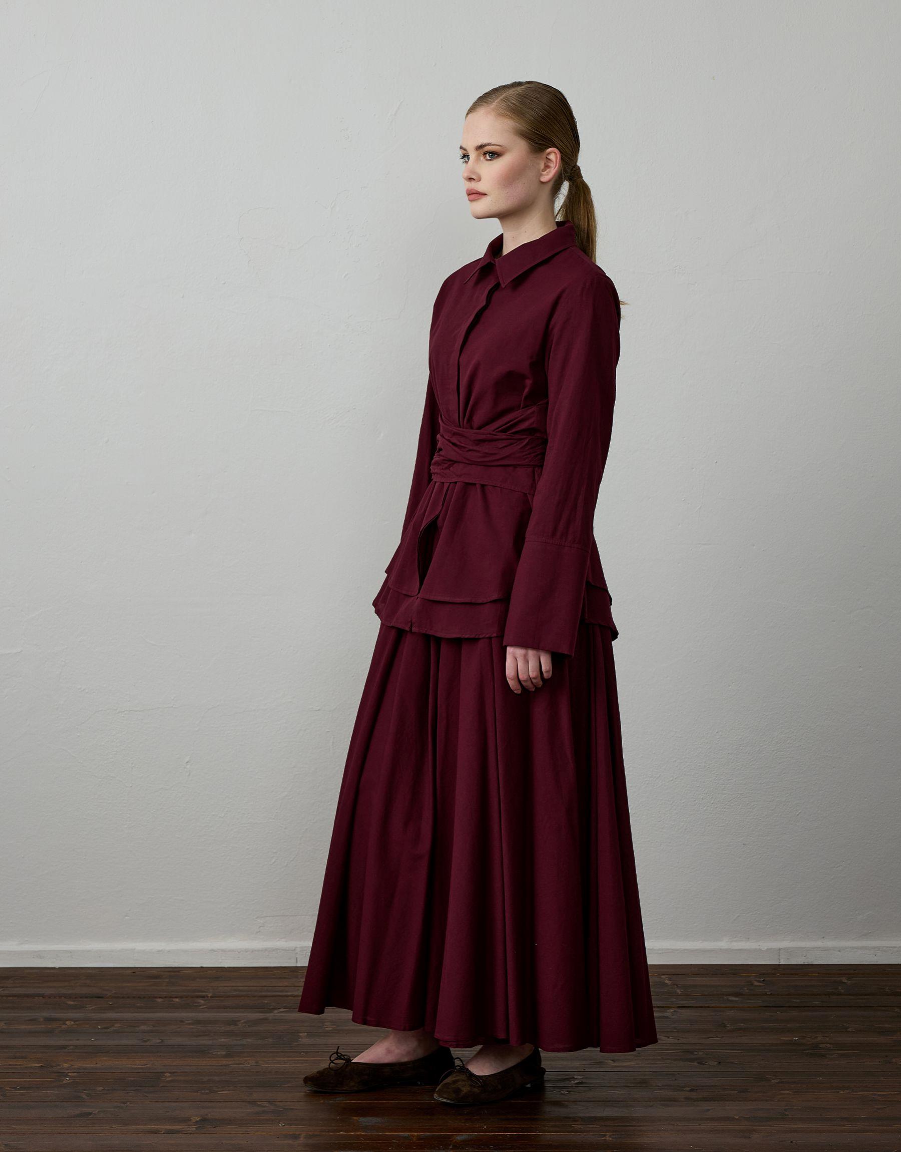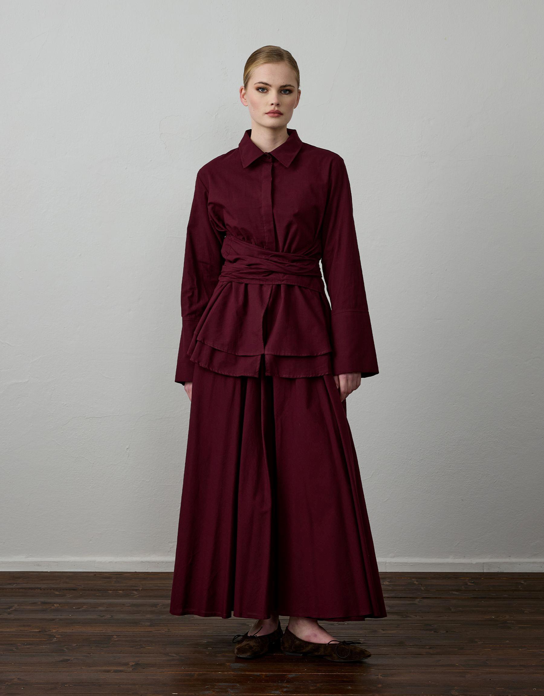 Bayan Bordo Pamuklu Kemer Detaylı Takım | Sarprive