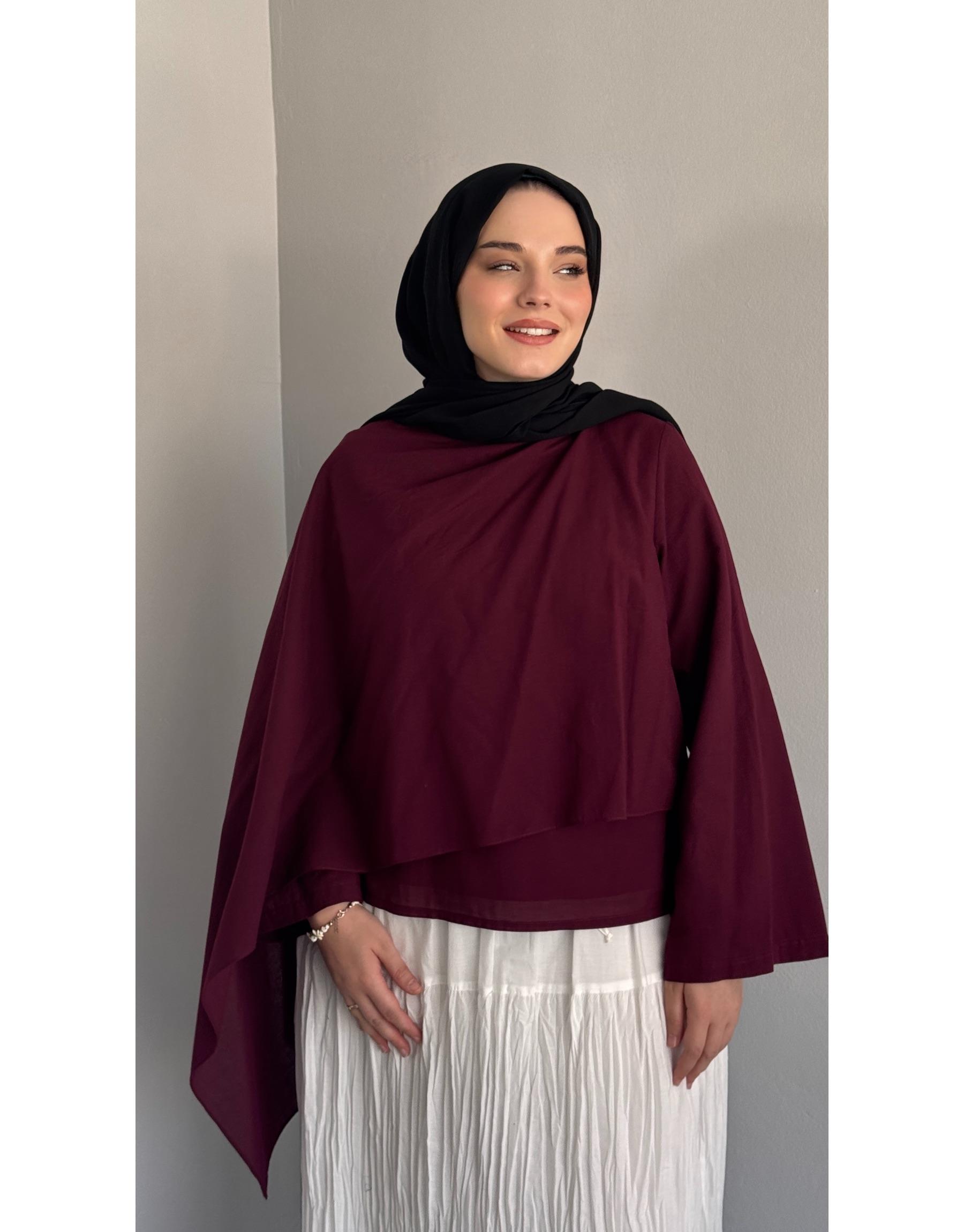Bayan Bordo Pamuklu Pelerinli Bluz | Sarprive
