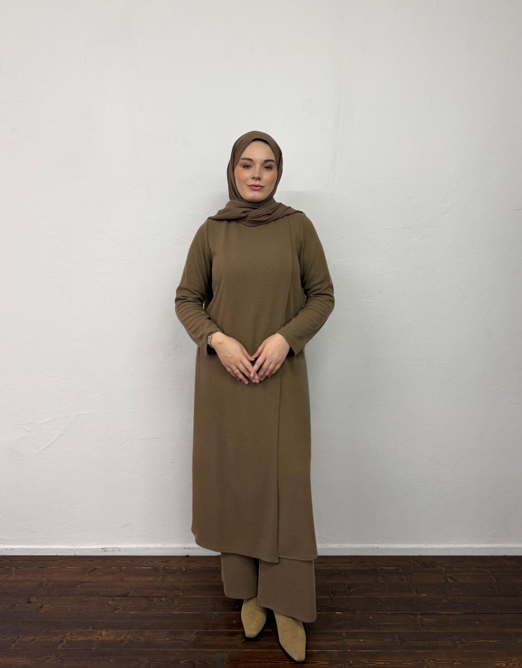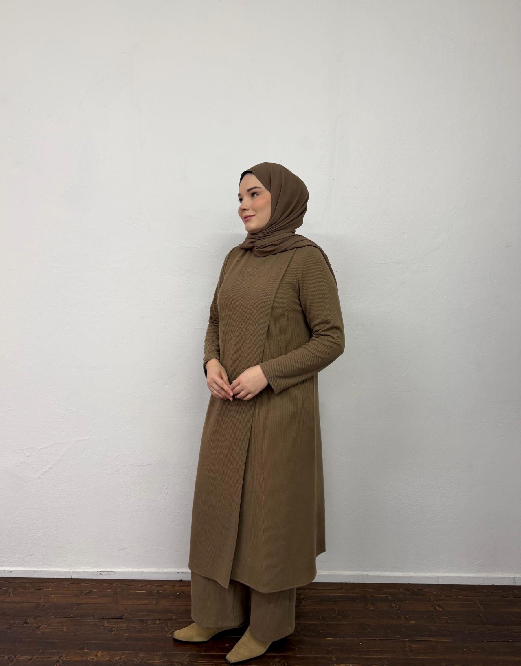 Bayan Camel Triko Kapaklı Bol Form Takım | Sarprive