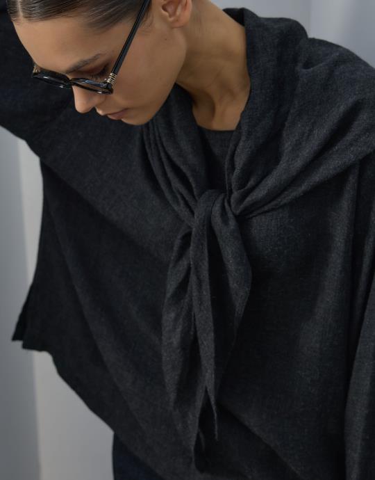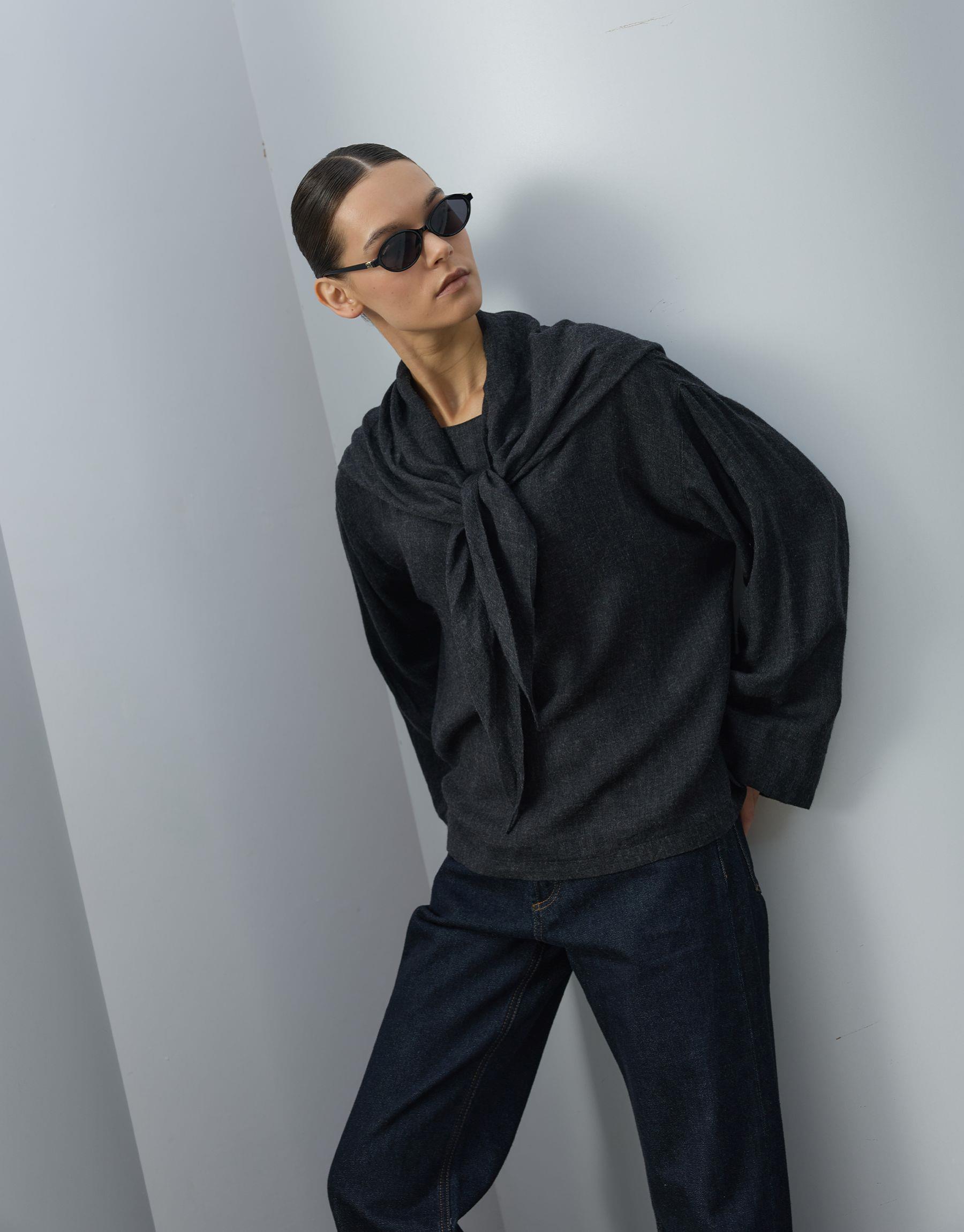 Sütlü Kahve Pamuklu Pelerinli Bluz