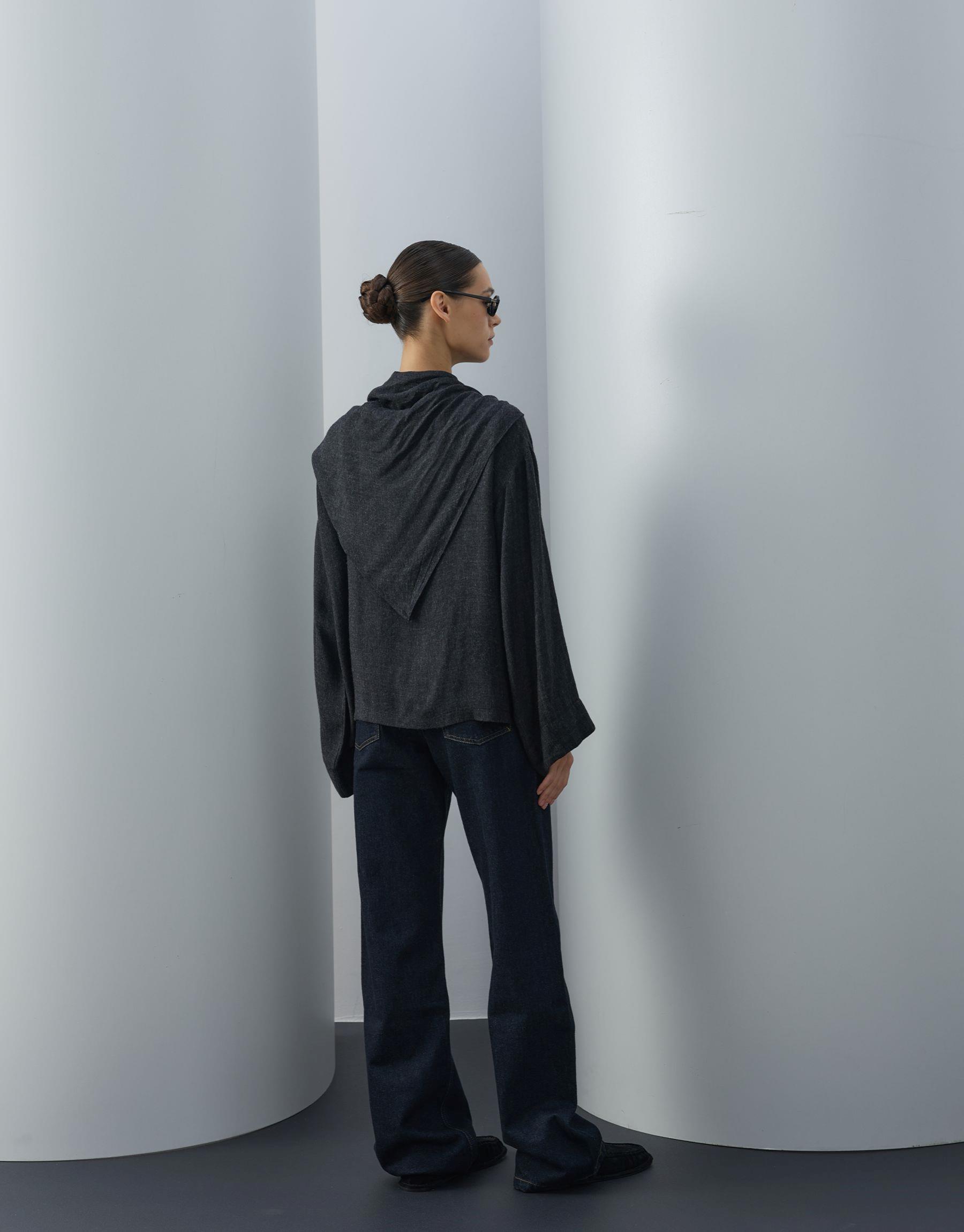 Petrol Yeşili Pamuklu Pelerinli Bluz