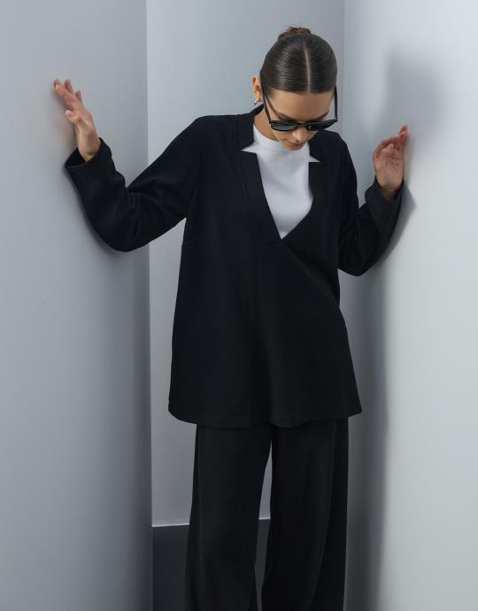 Açık Lacivert Triko V Yaka Bol Formlu Takım