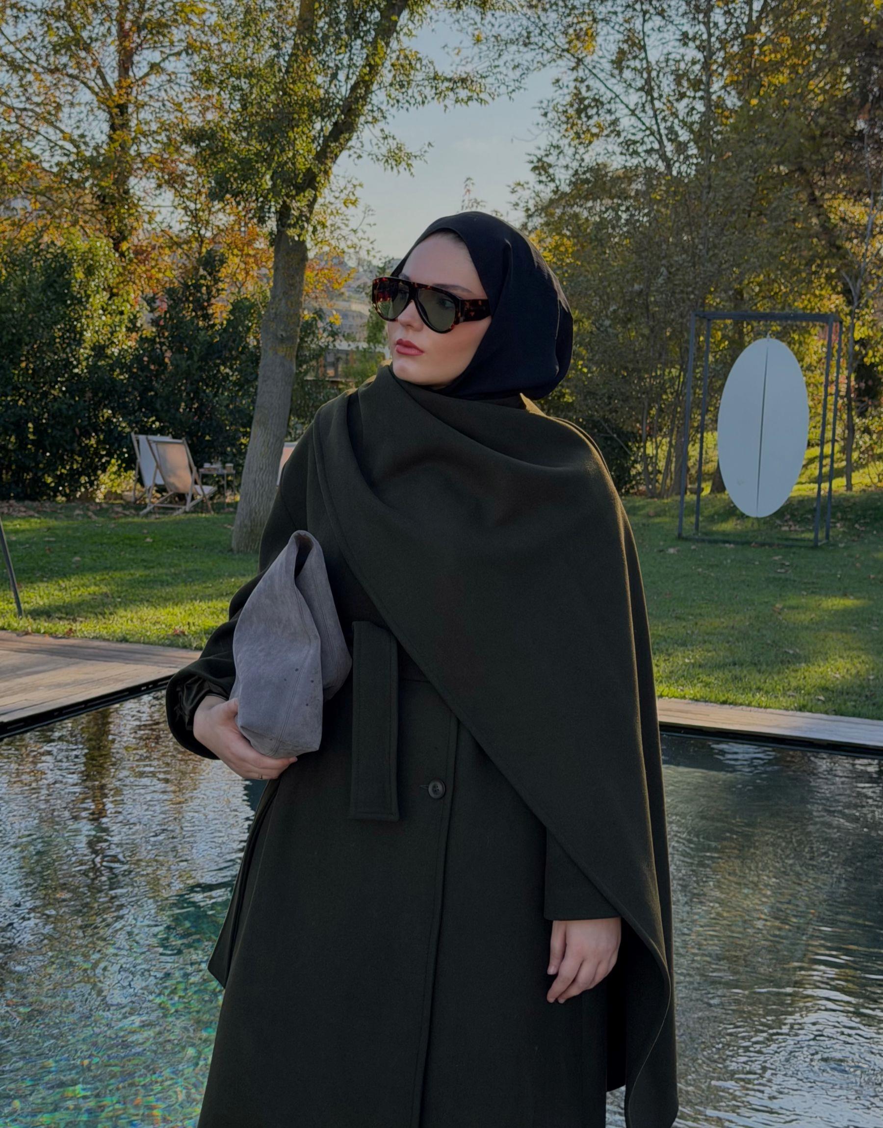Bayan Haki Yün Karışımlı Uzun Kaban | Sarprive