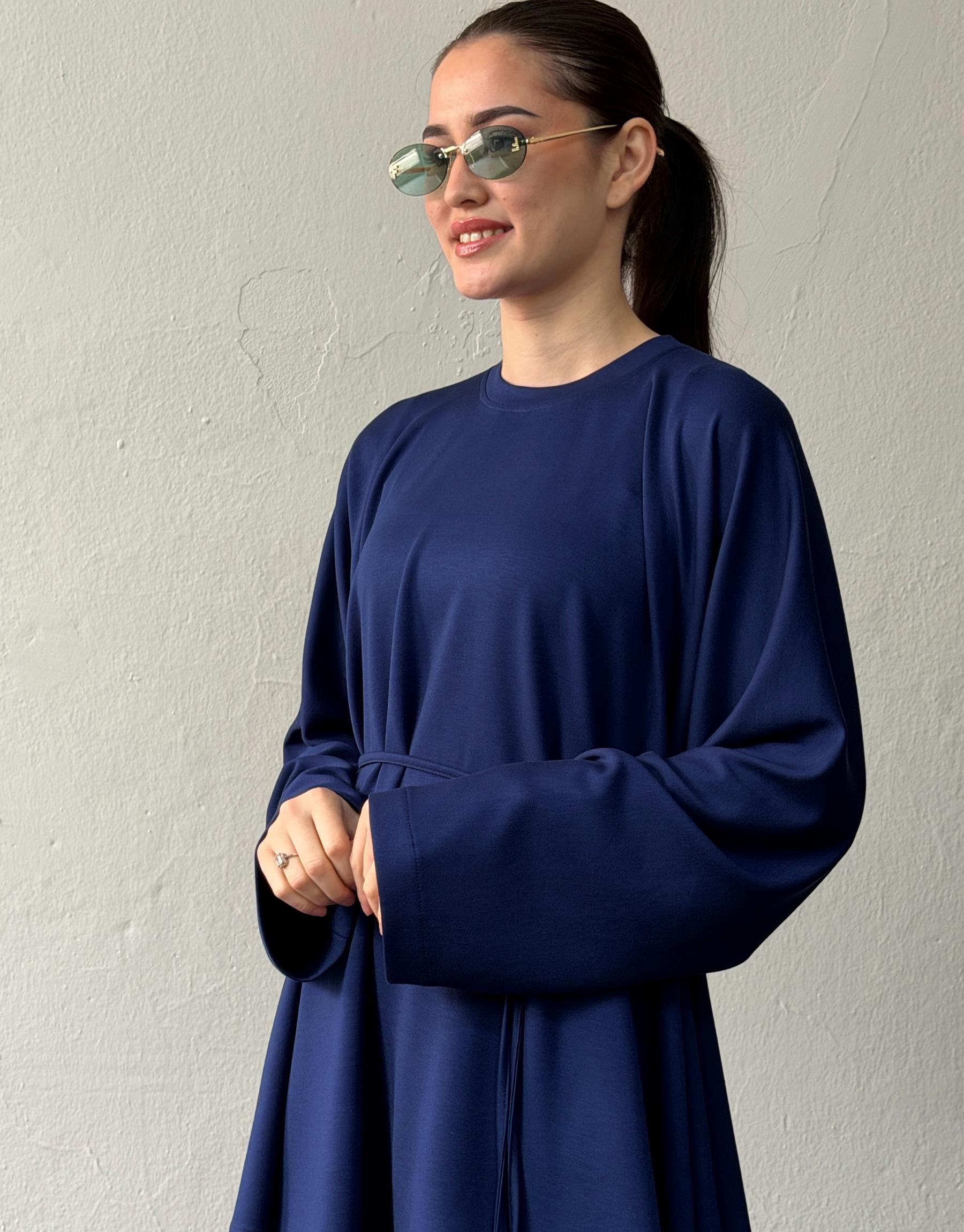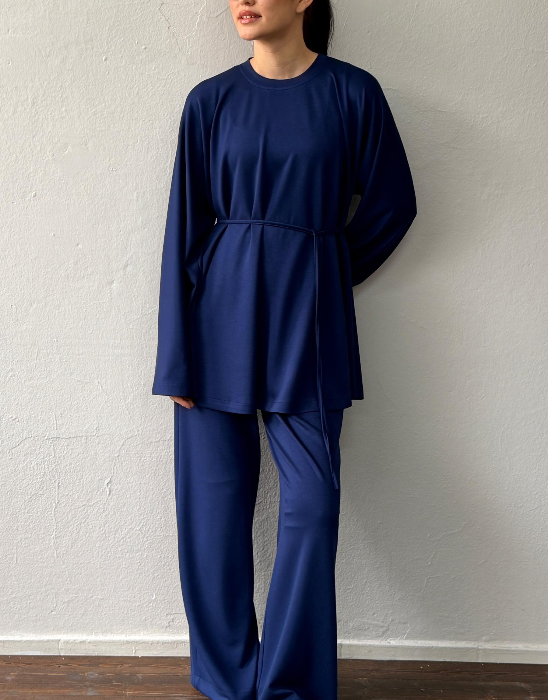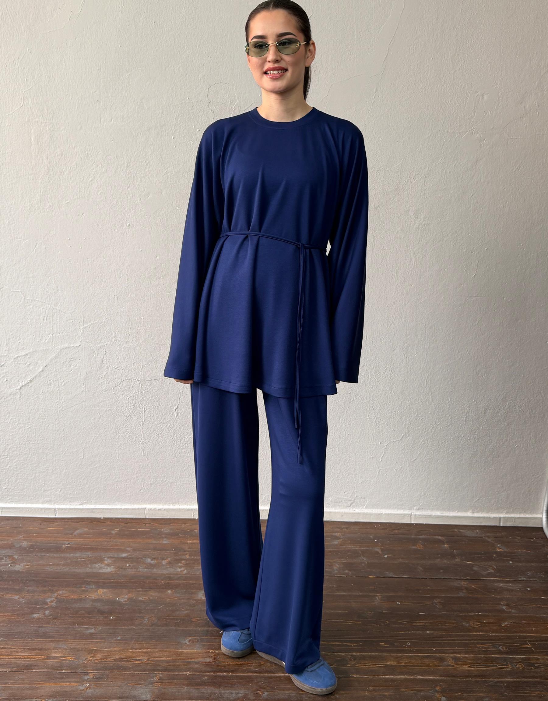 Lacivert Manolya Keten Dokulu Britli Takım