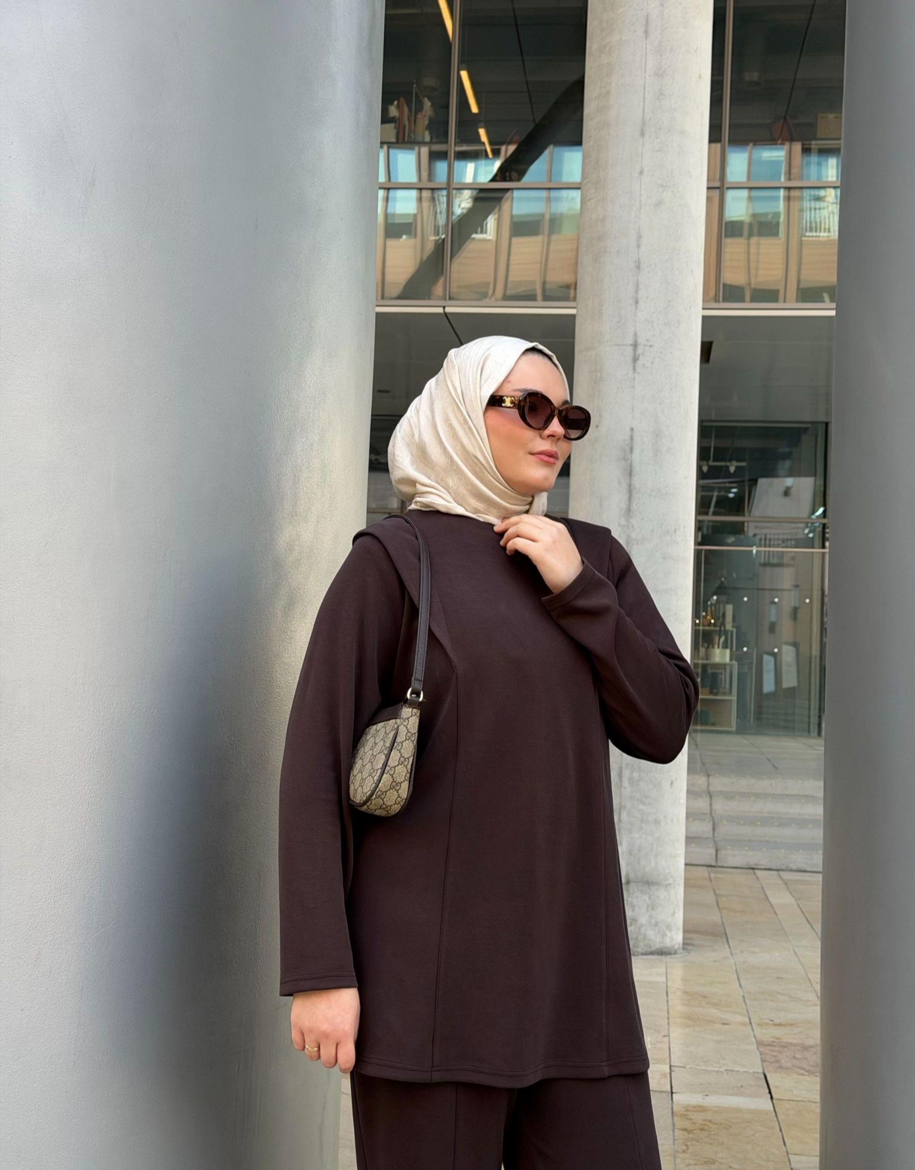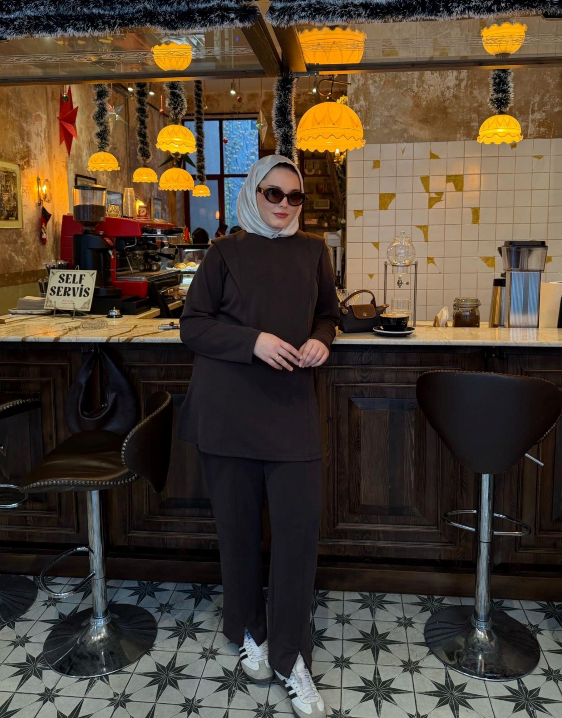 Bayan Kahverengi Modal Aller Omuz Detaylı Takım | Sarprive