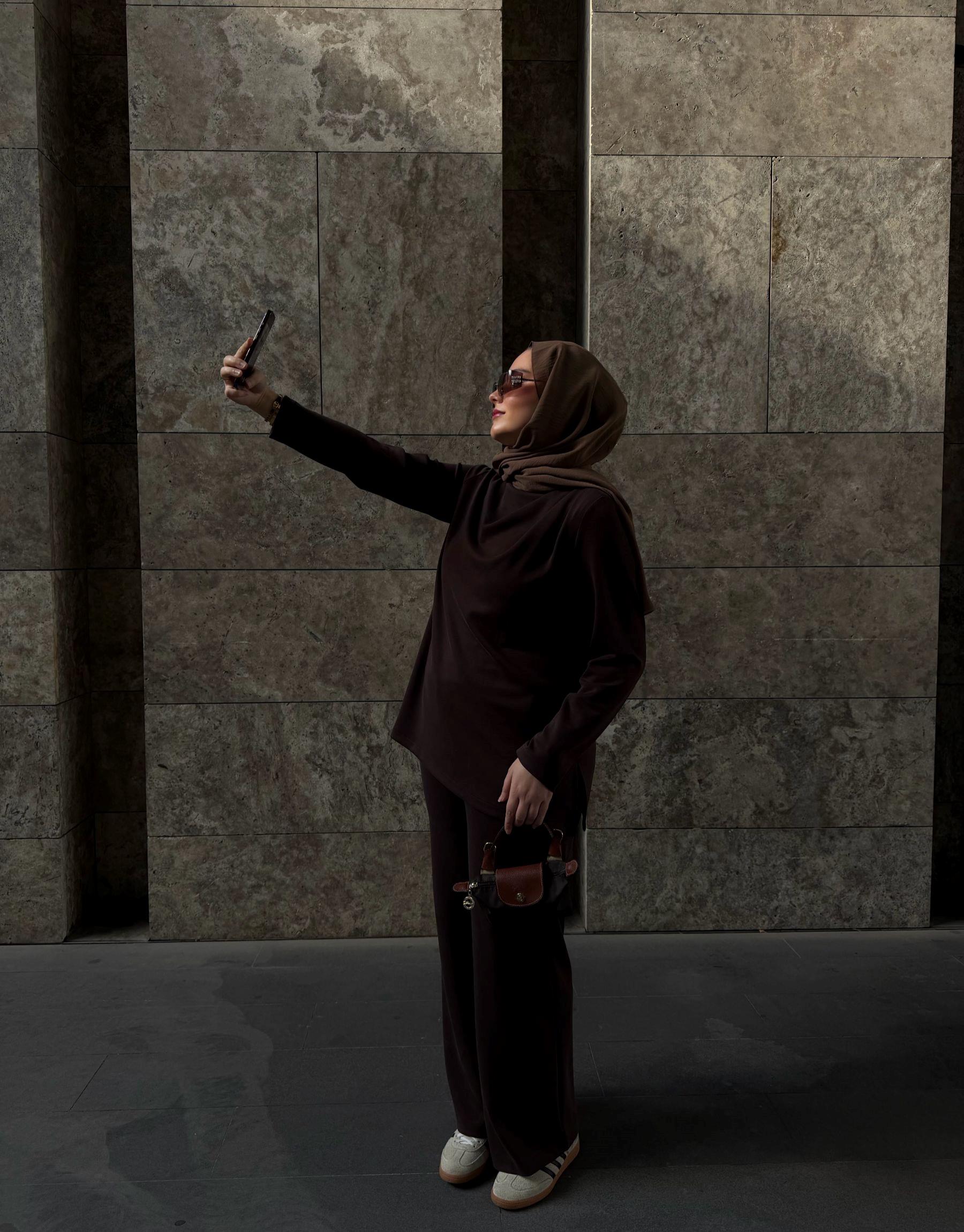 Bayan Kahverengi Modal Omuz Detaylı Takım | Sarprive
