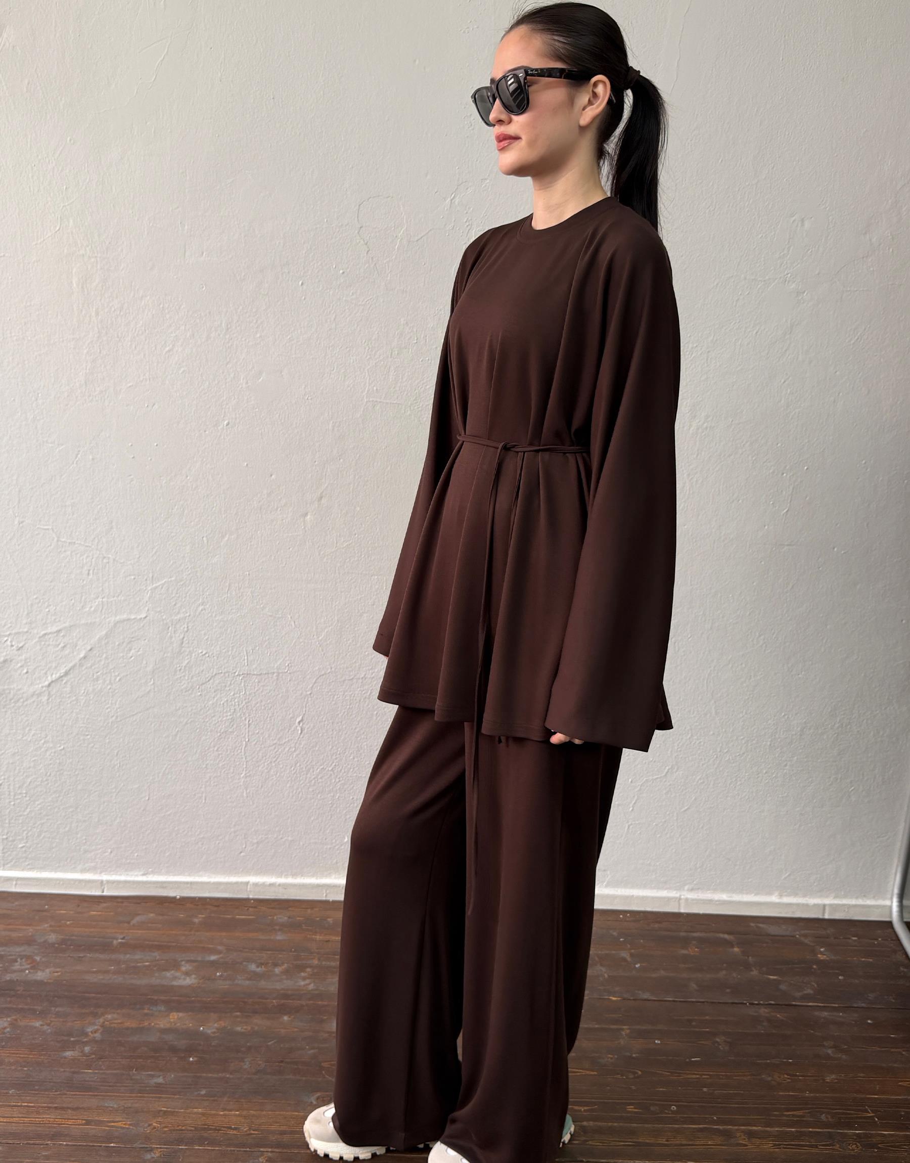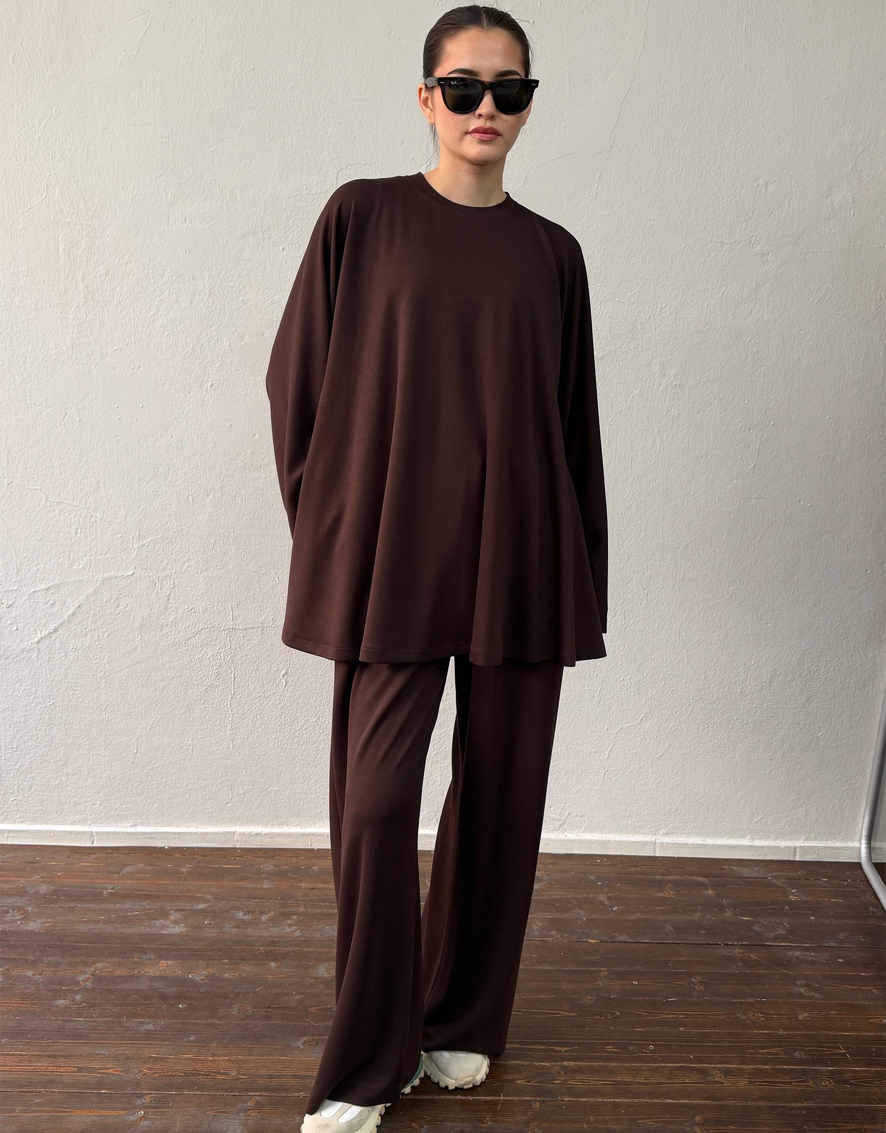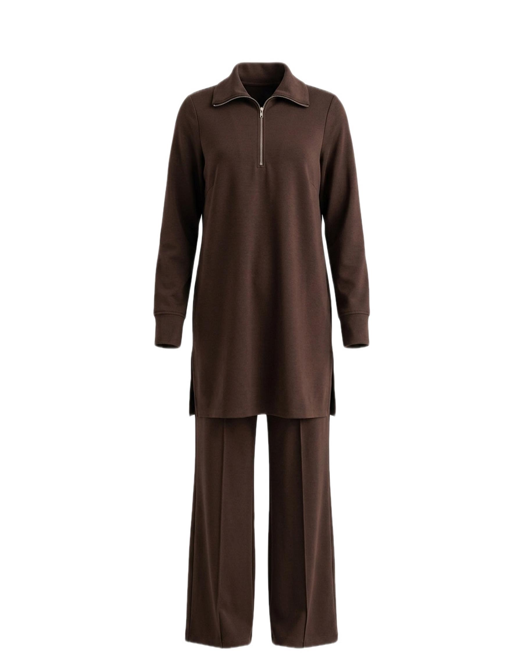 Bayan Kahverengi Orkide Modal Yarım Fermuarlı Takım | Sarprive