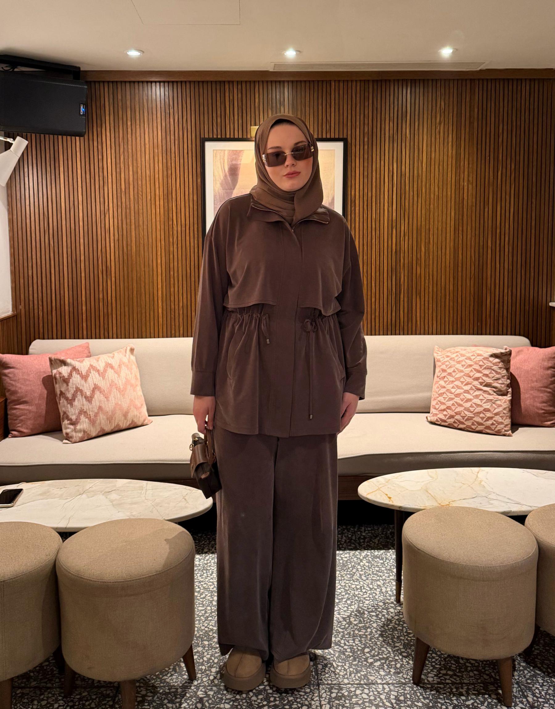 Bayan Kahverengi Örme Bağcık Detaylı Takım | Sarprive