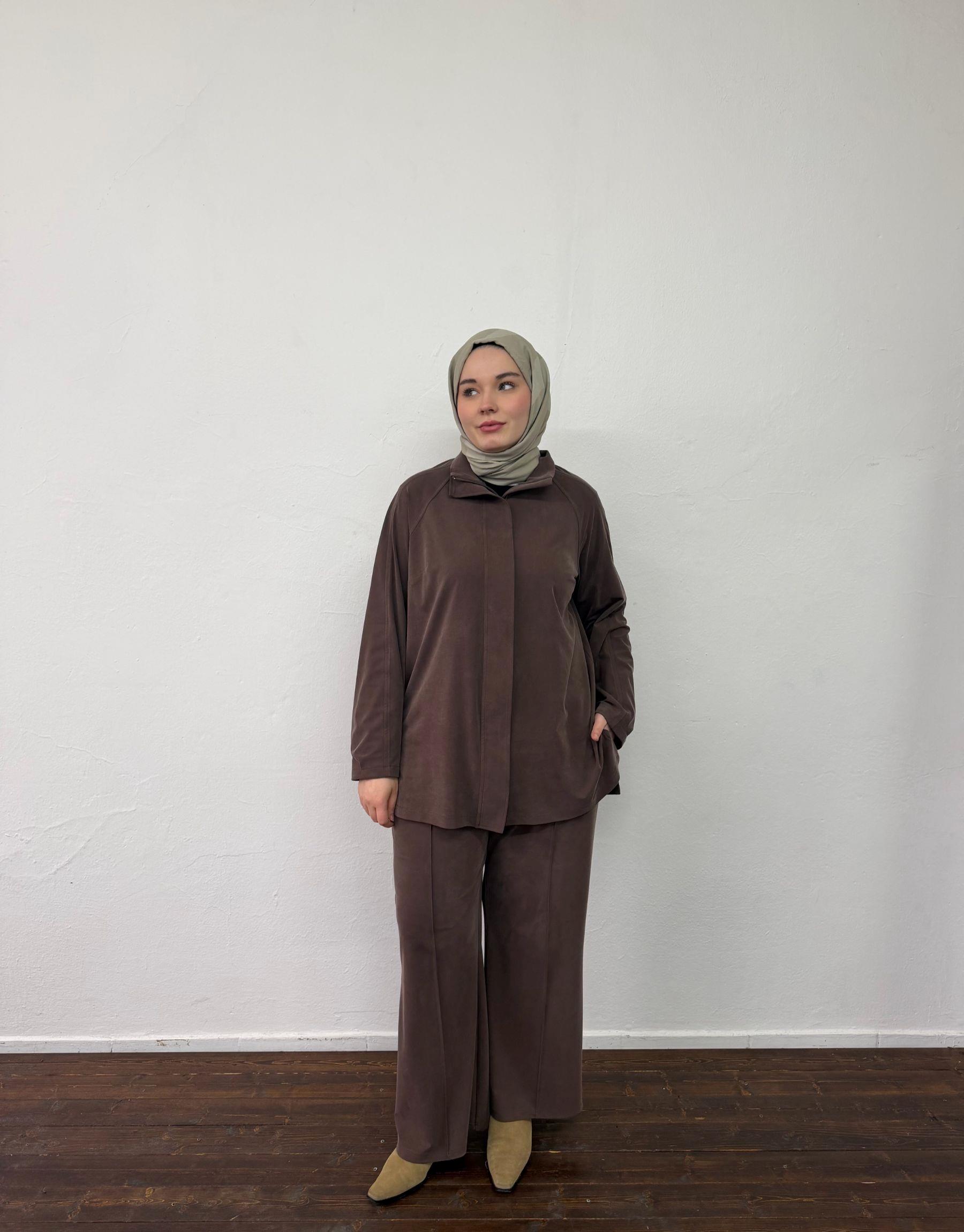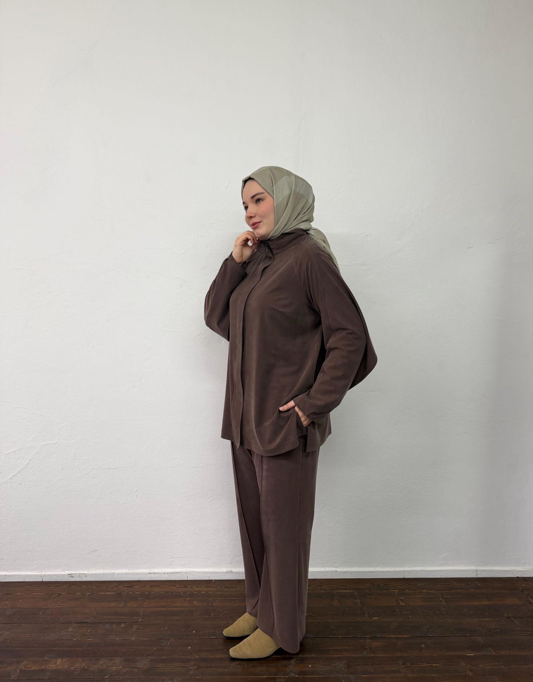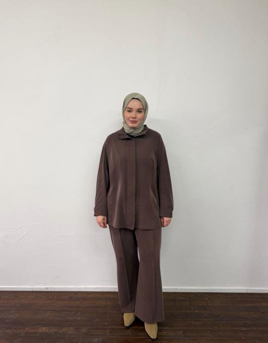 Bayan Kahverengi Örme Sırt Allerli Takım | Sarprive