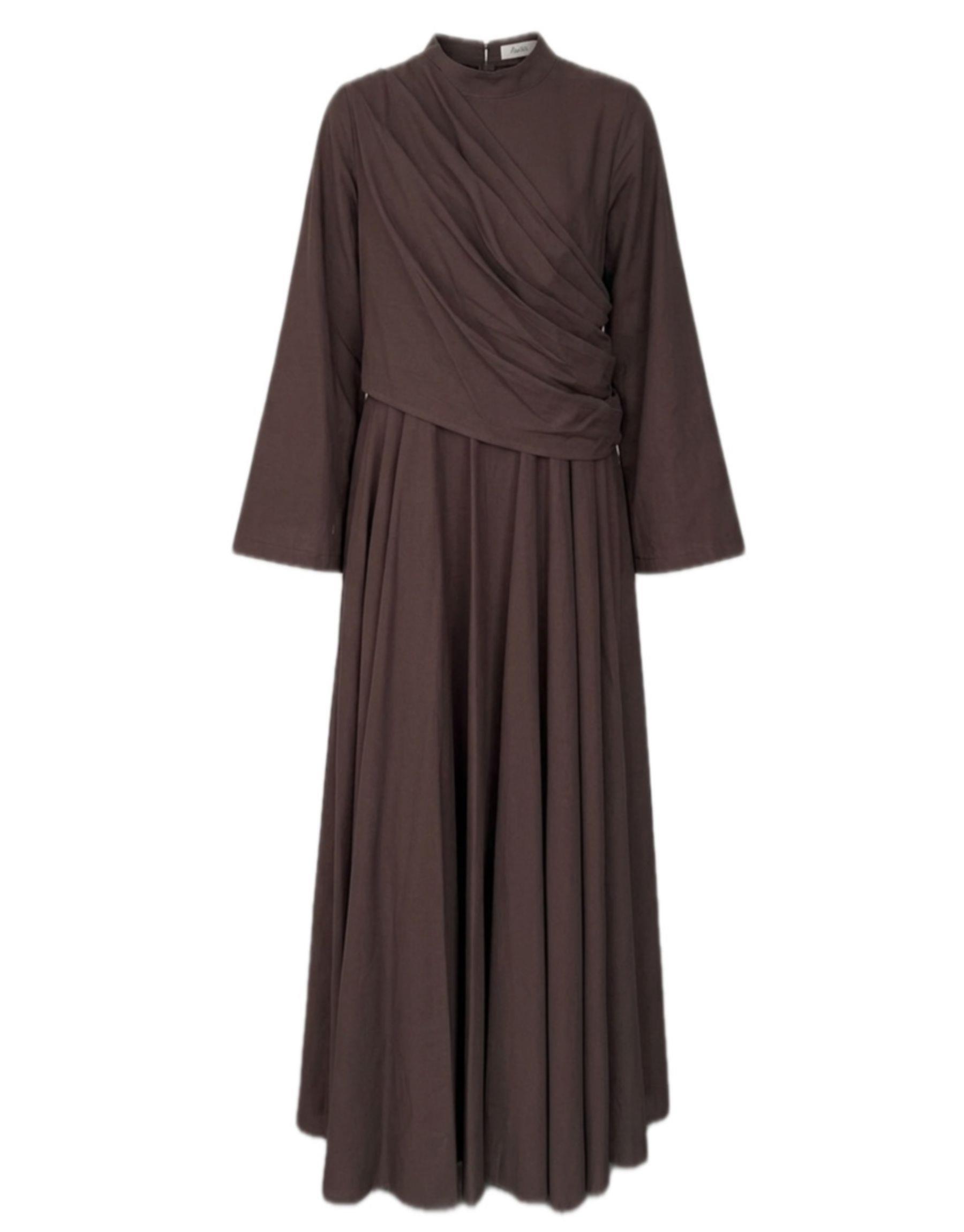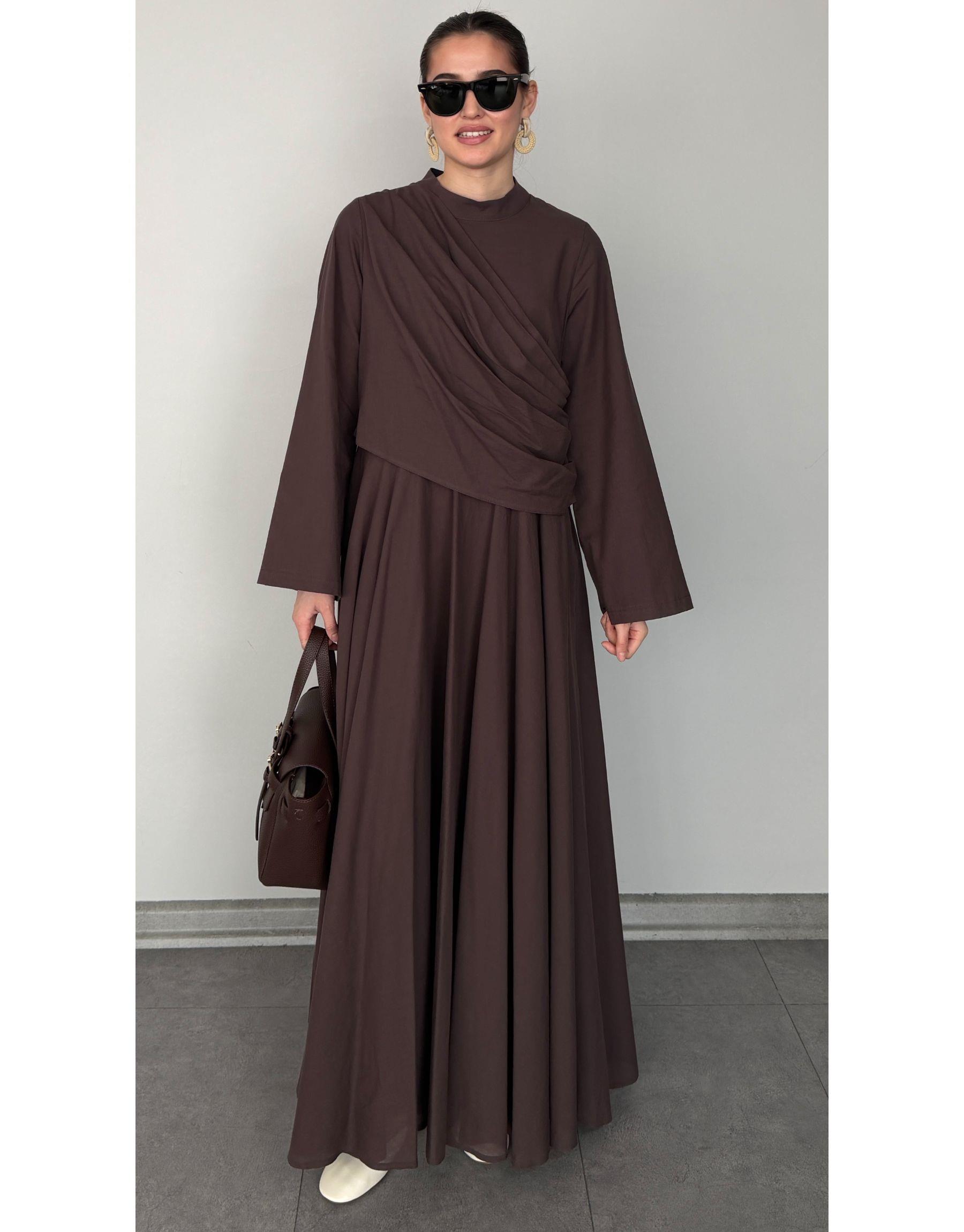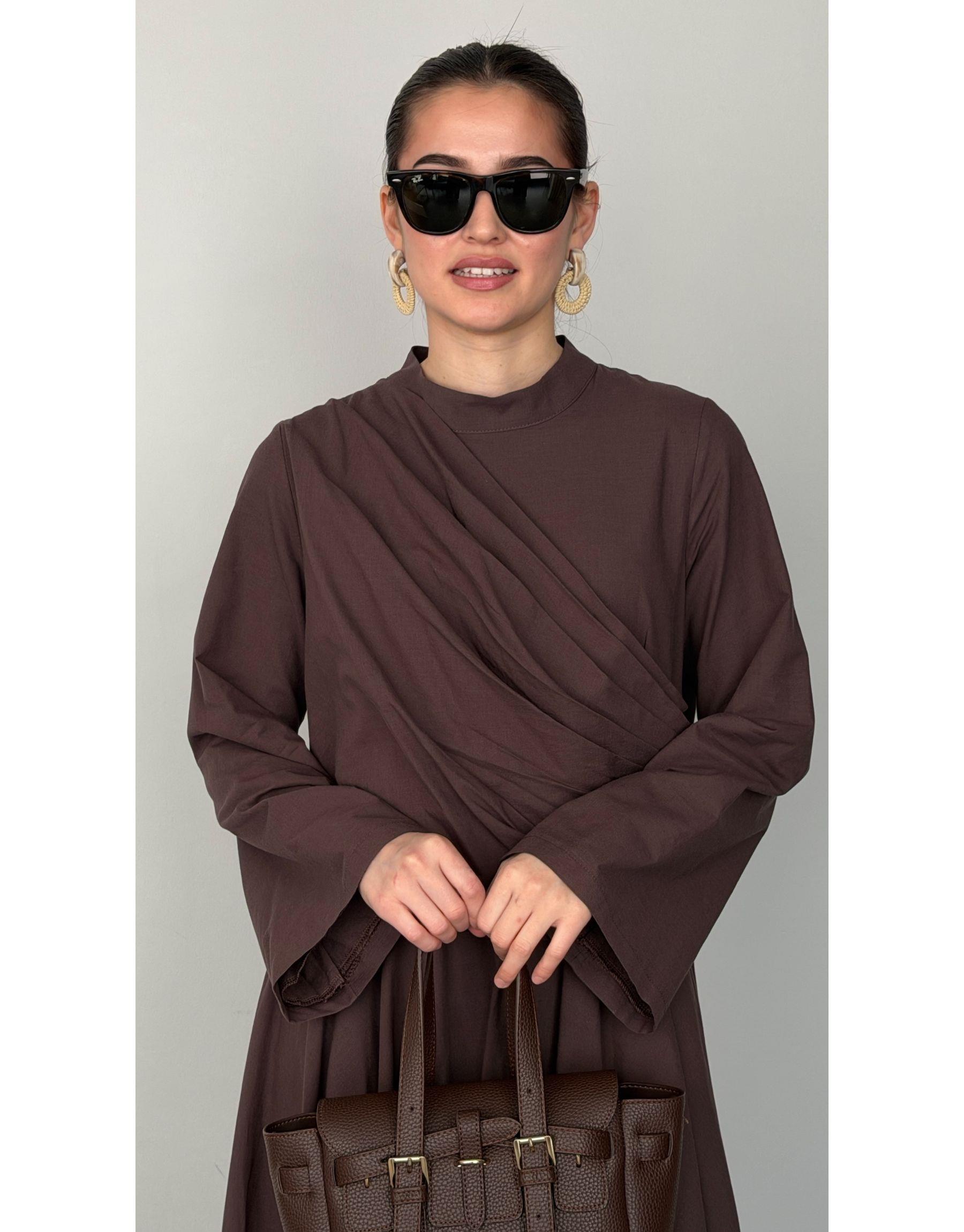 Bayan Kahverengi Pamuklı Allerli Elbise | Sarprive