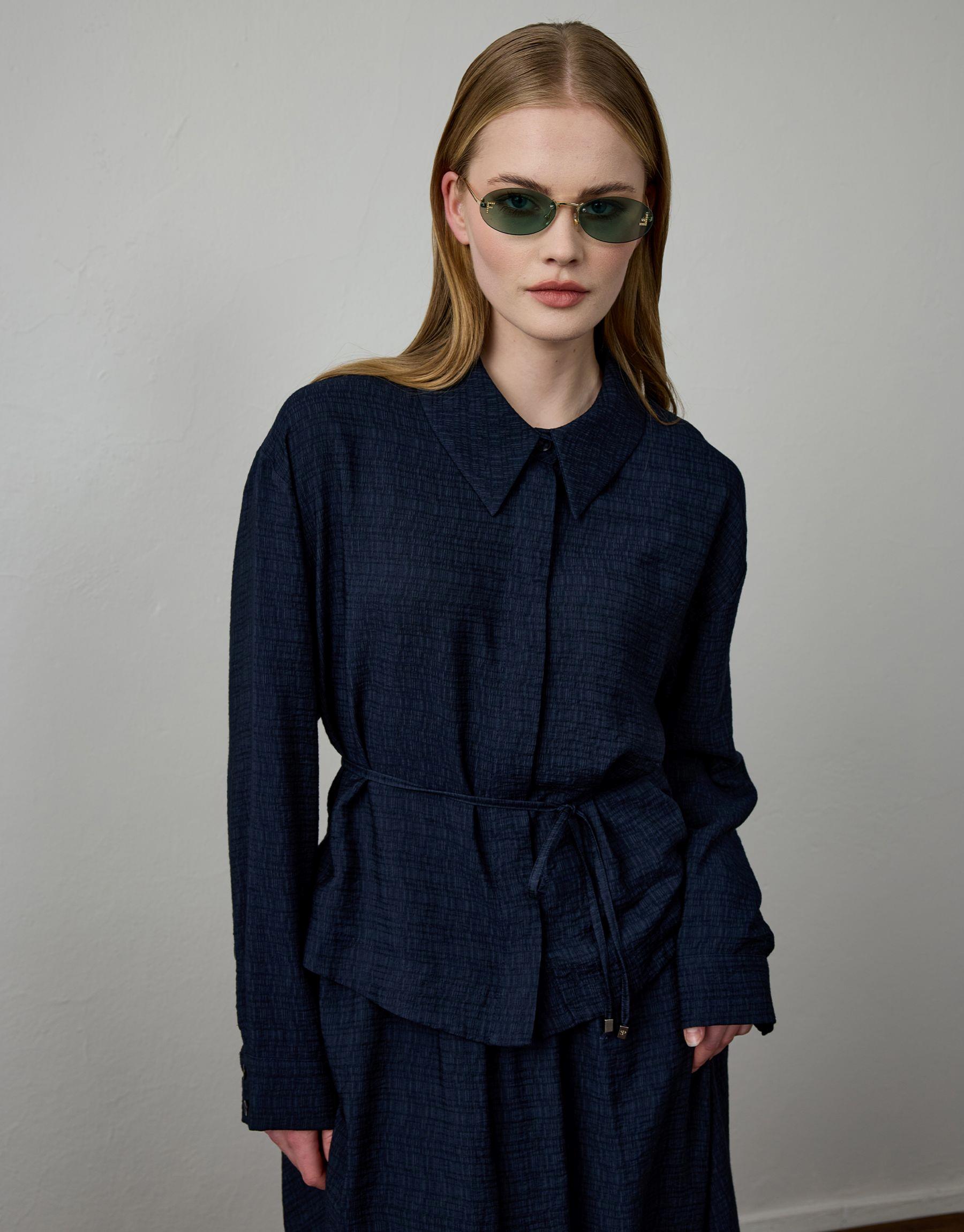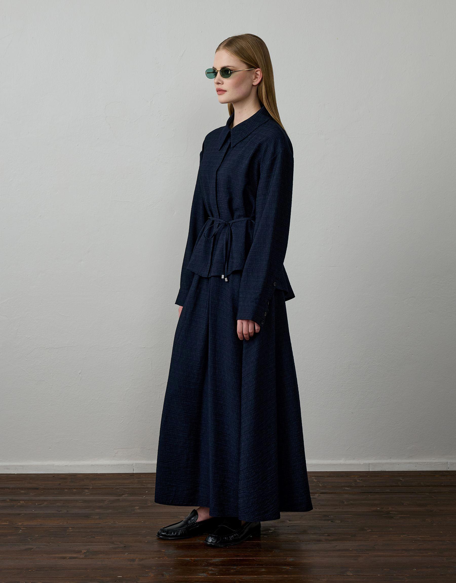 Bayan Lacivert Gofre Etekli Takım | Sarprive