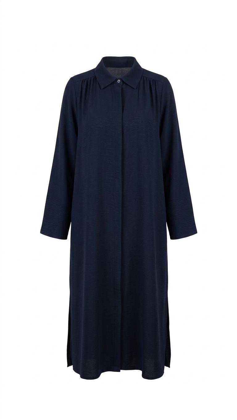 Bayan Lacivert İris Keten Dokulu Enjoy Tunik | Sarprive