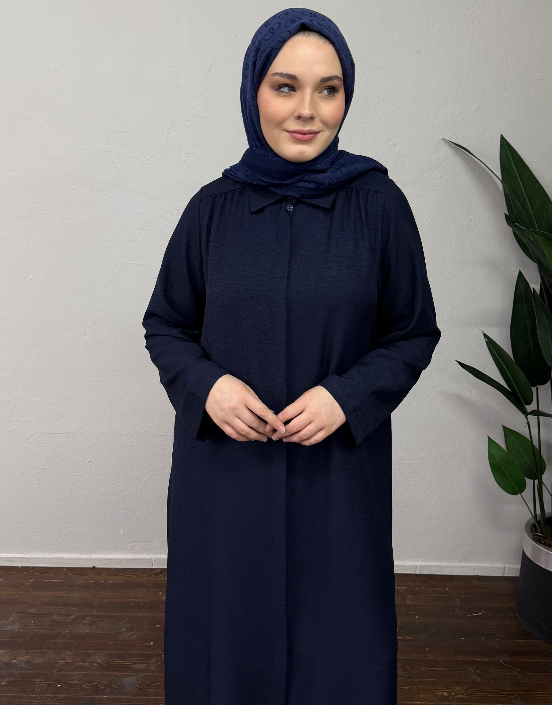 Bayan Lacivert Keten Dokulu Enjoy Tunik | Sarprive