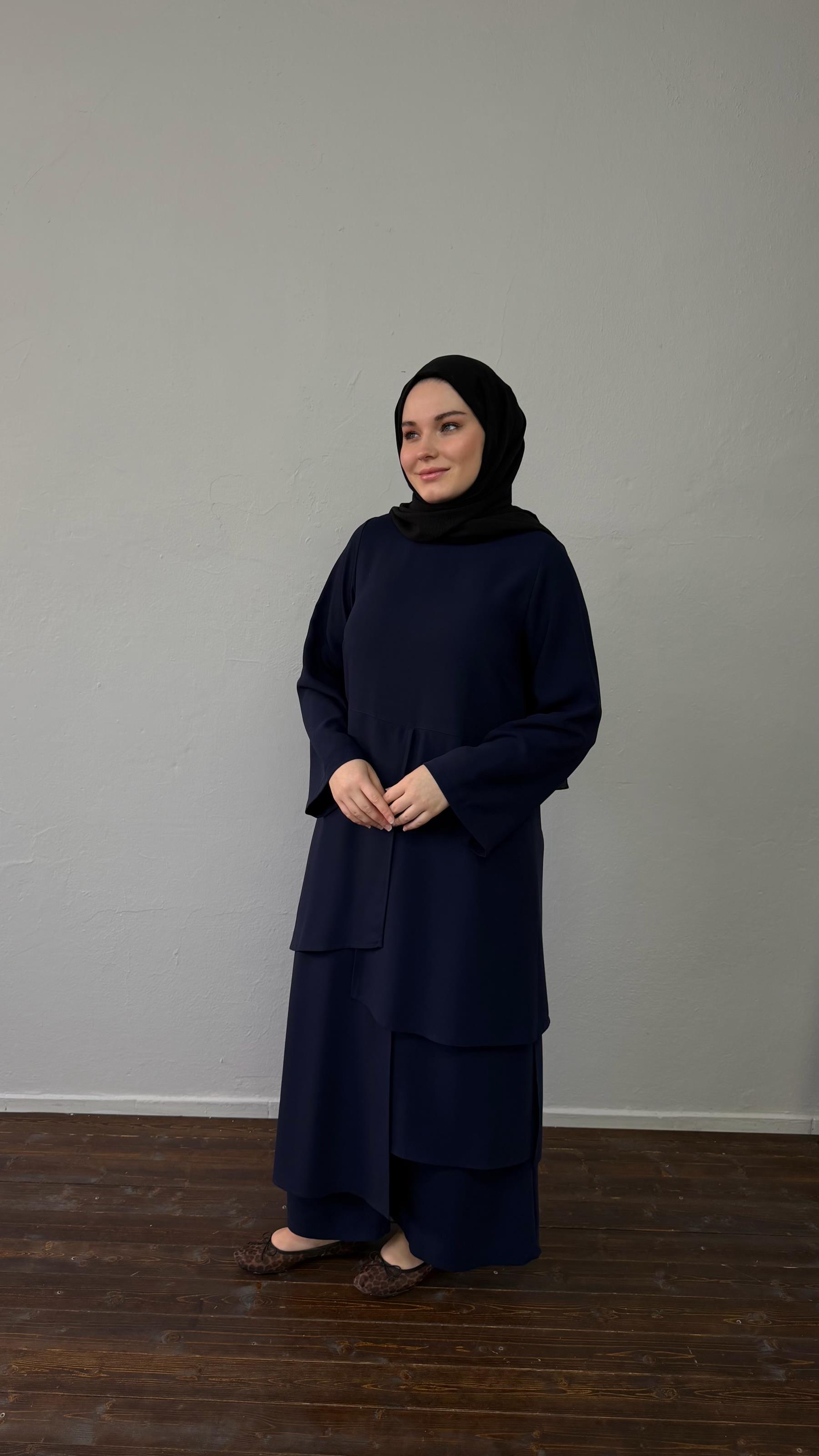 Bayan Lacivert Krep Parçalı Takım | Sarprive