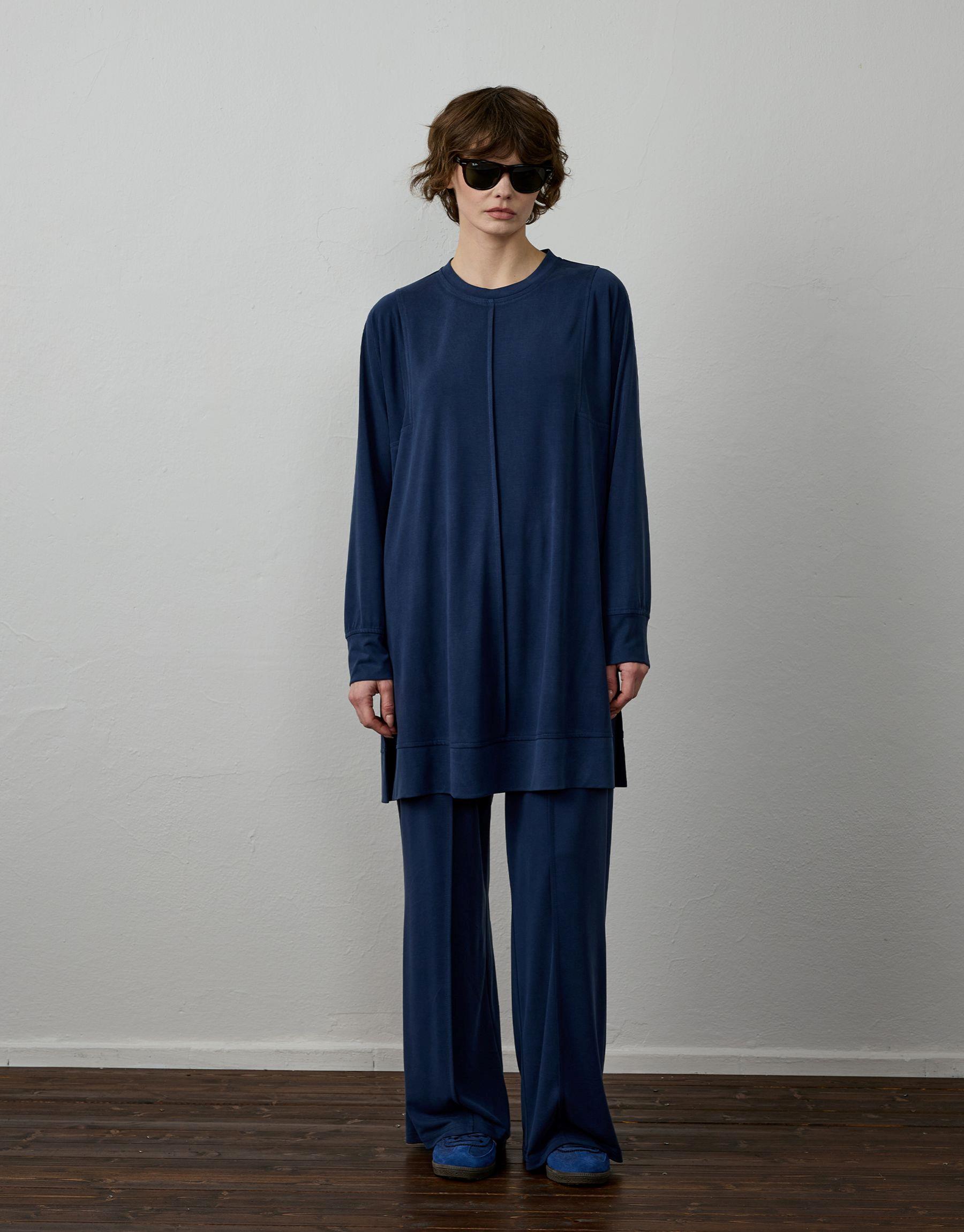 Bayan Lacivert Modal Karışımlı Nervür Detaylı Takım | Sarprive