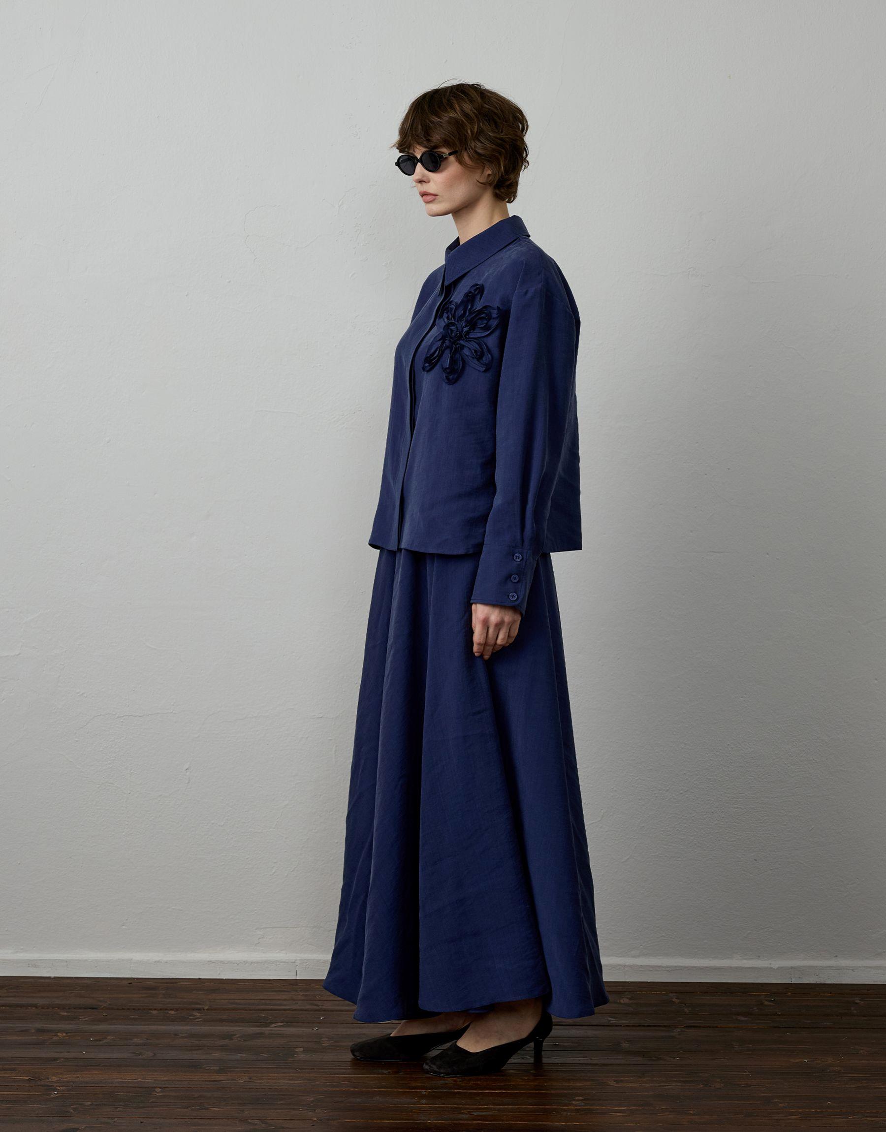 Doğal liflerden elde edilen yumuşacık tensel kumaşıyla Tensel etekli takım, hafifliğin ve sofistike sadeliğin birleştiği gömleğindeki zarif nakış detayıyla modern bir yorum sunar. Cilt dostu yapısı, dökümlü duruşu ve özenle düşünülmüş detaylarıyla stilinize zarif bir soluk getirir.Etek beli lastikli ve astarsızdır.