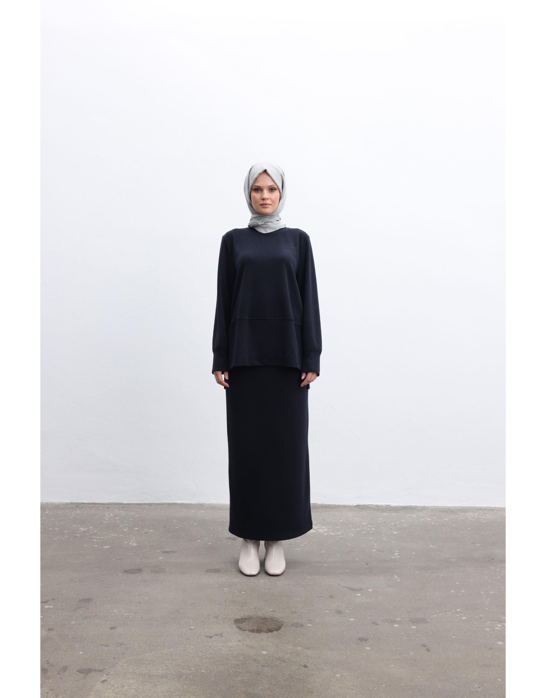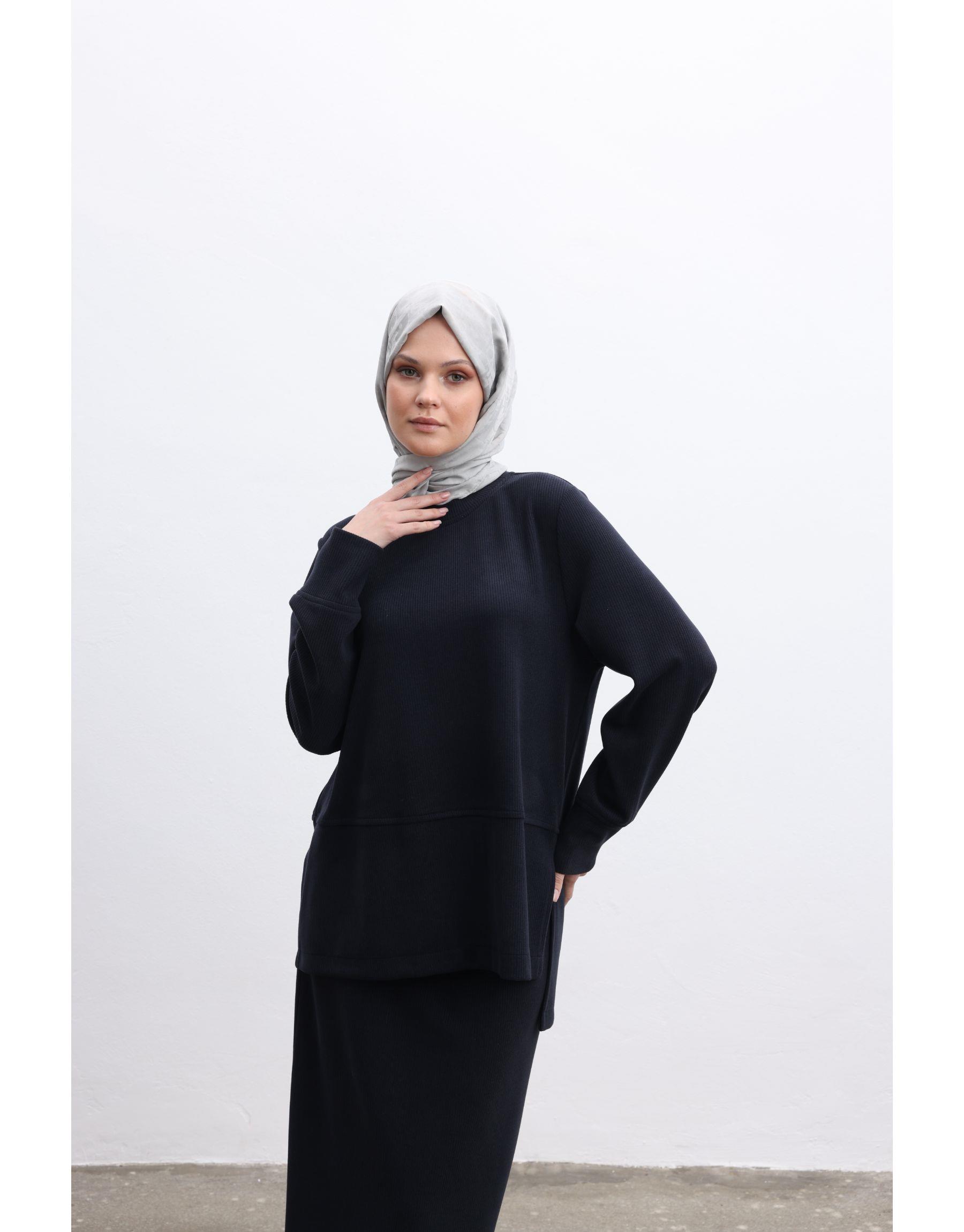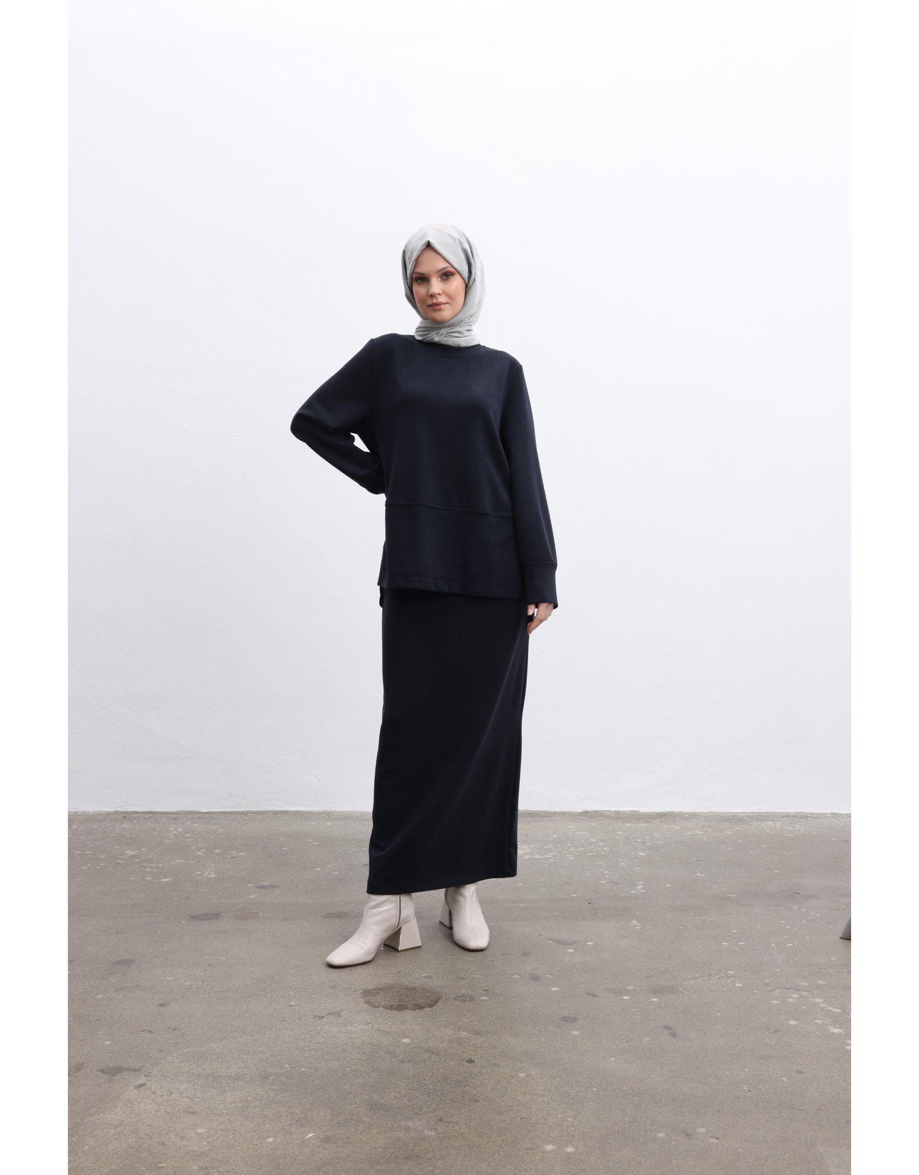 Bayan Lacivert Triko Kalem Etekli Takım | Sarprive