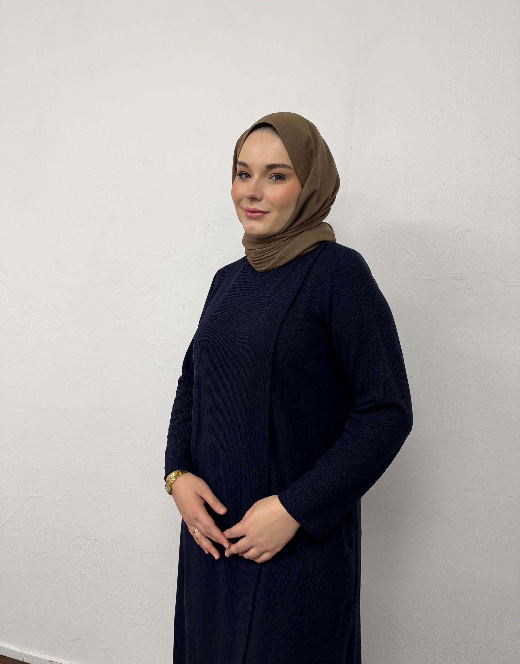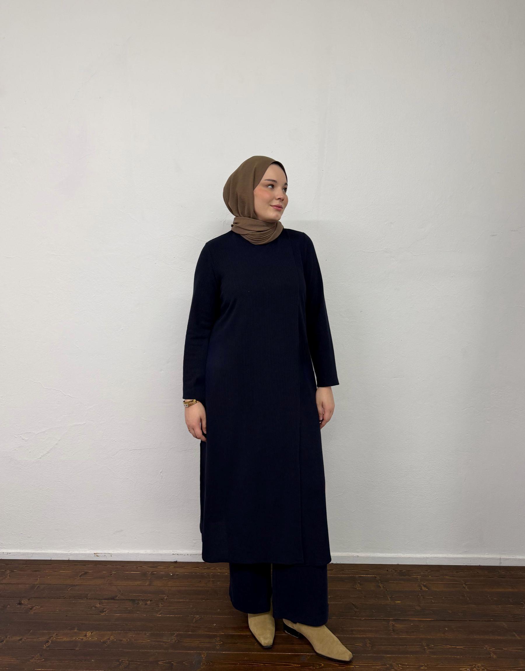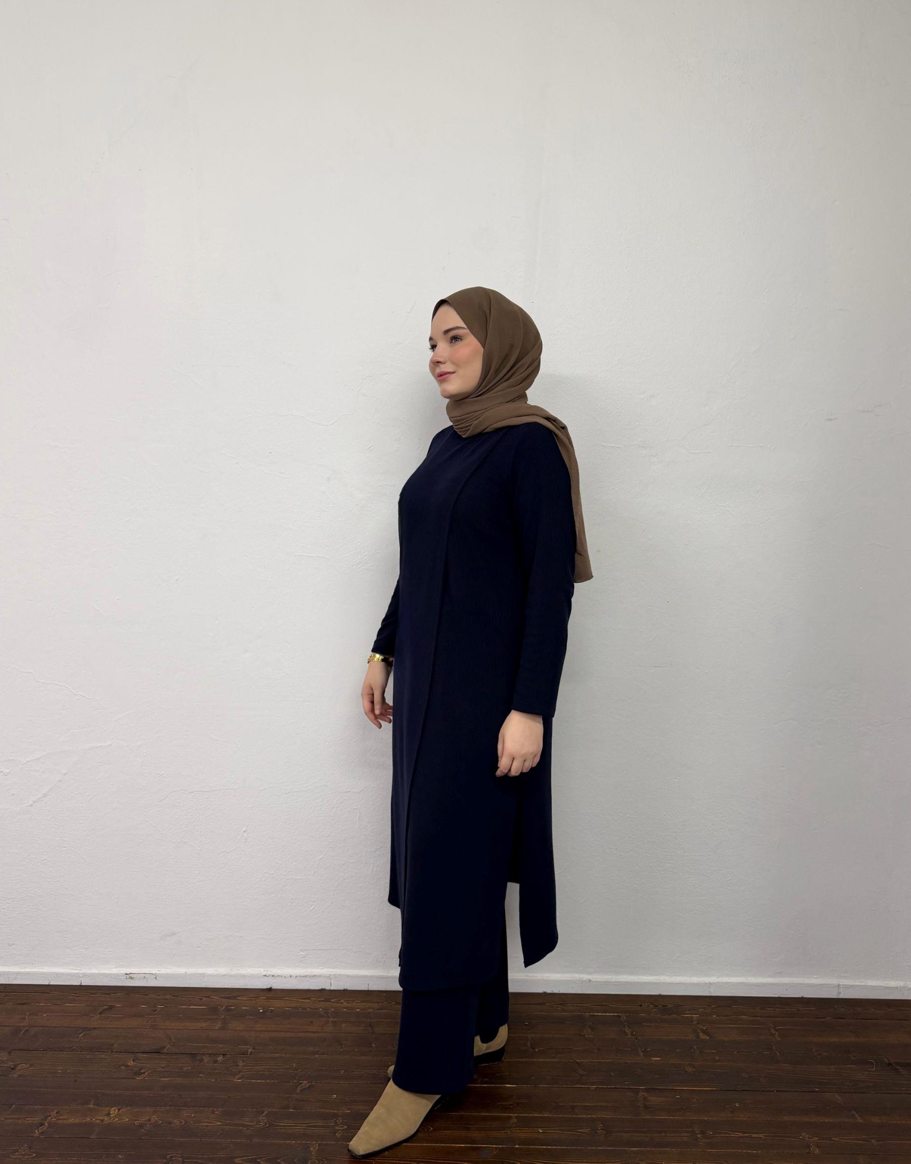 Bayan Lacivert Triko Kapaklı Bol Form Takım | Sarprive