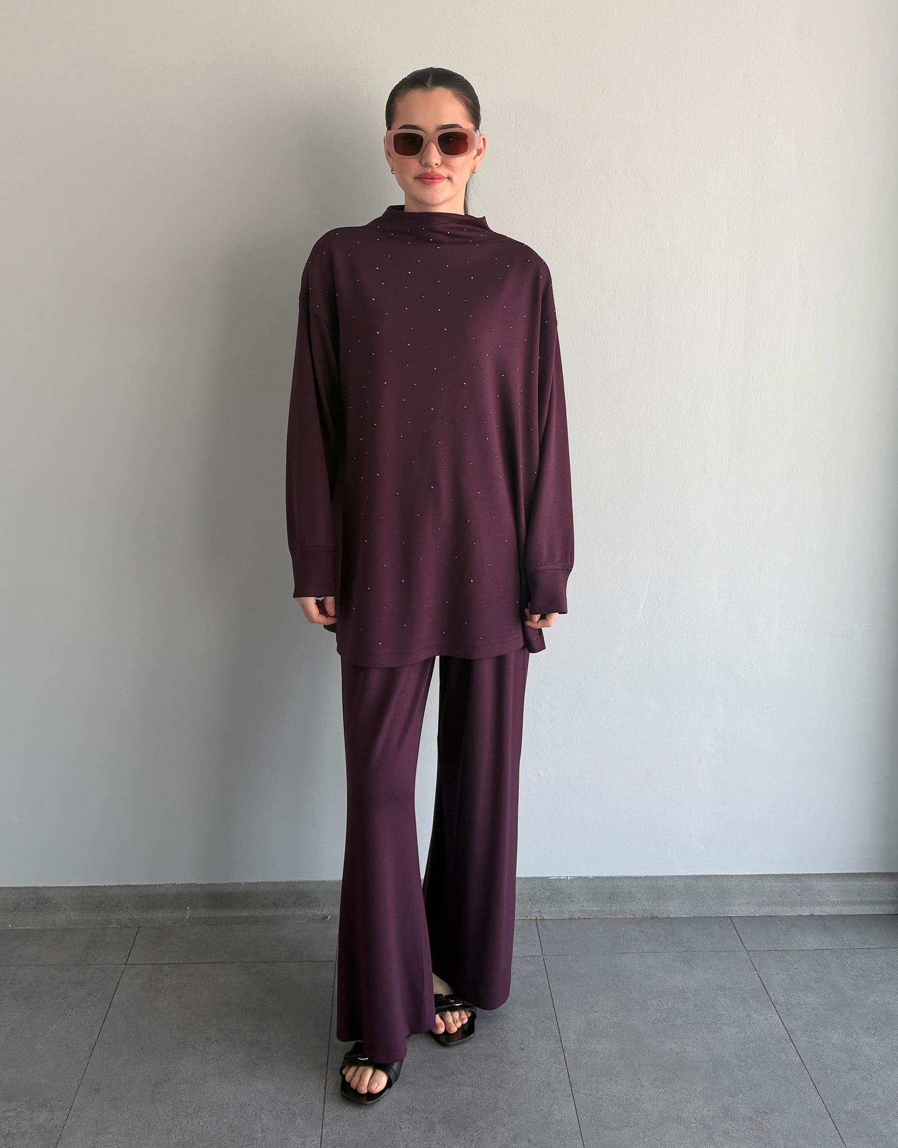 Bayan Mürdüm Şakayık Modal Taşlı Takım | Sarprive