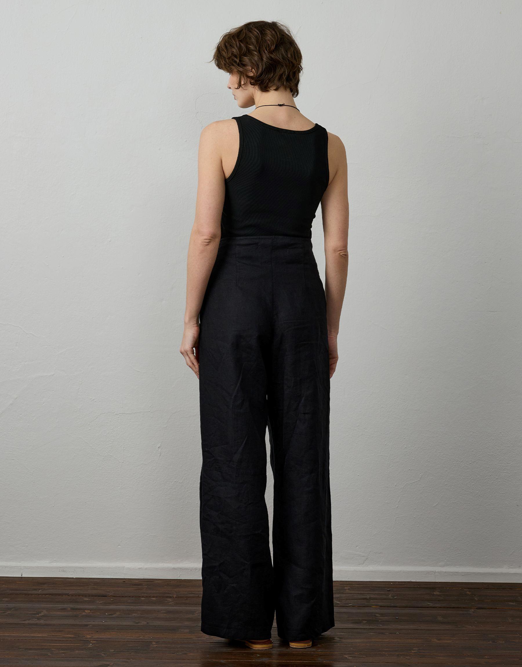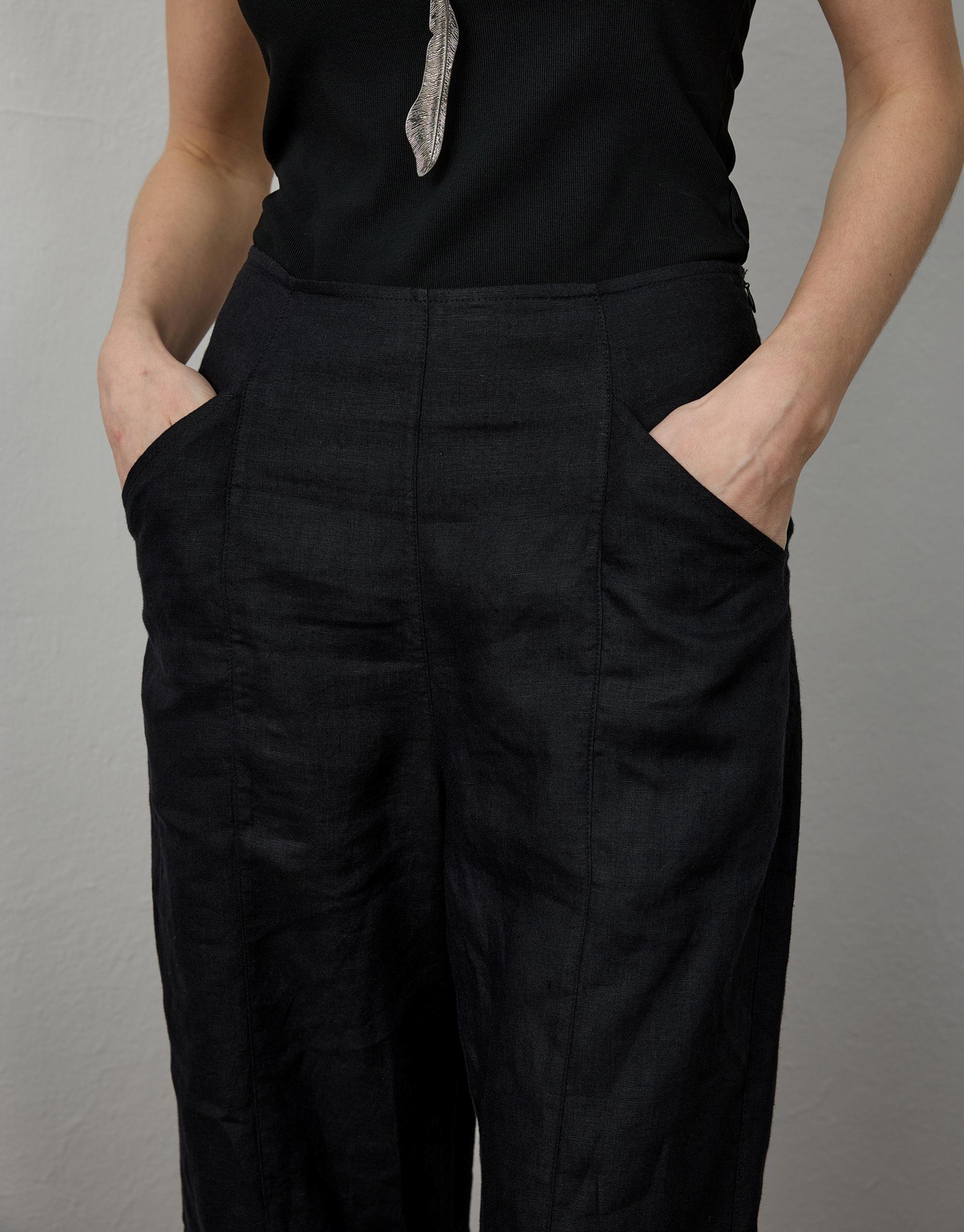 Siyah %100 Keten Punteriz Dikiş Pantolon