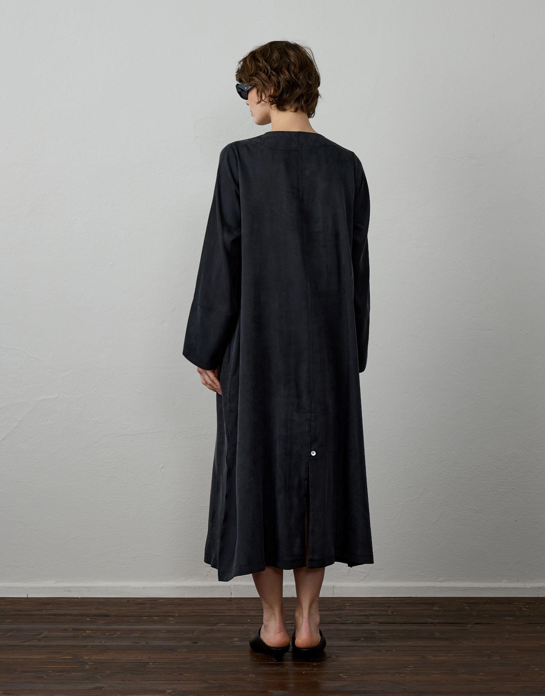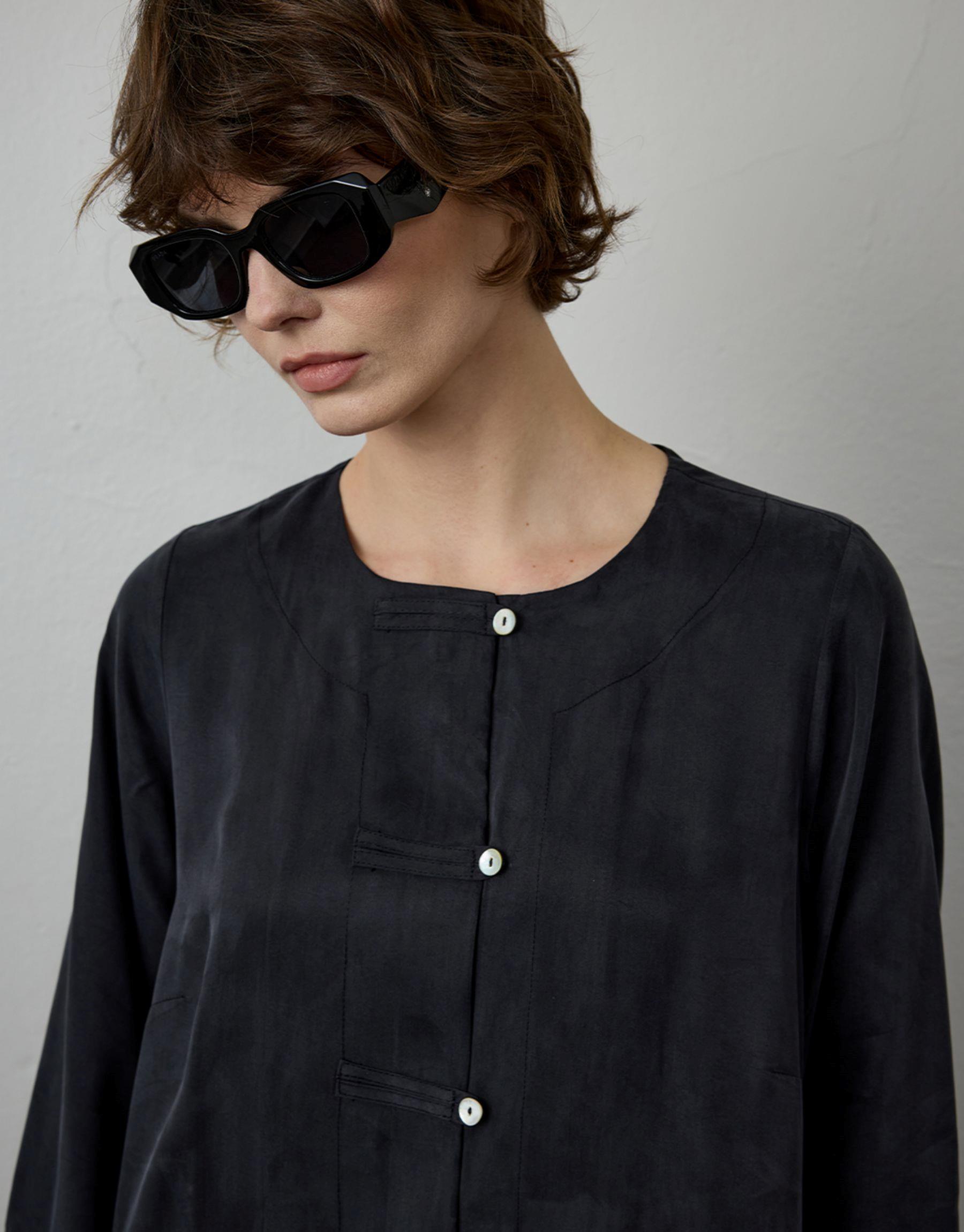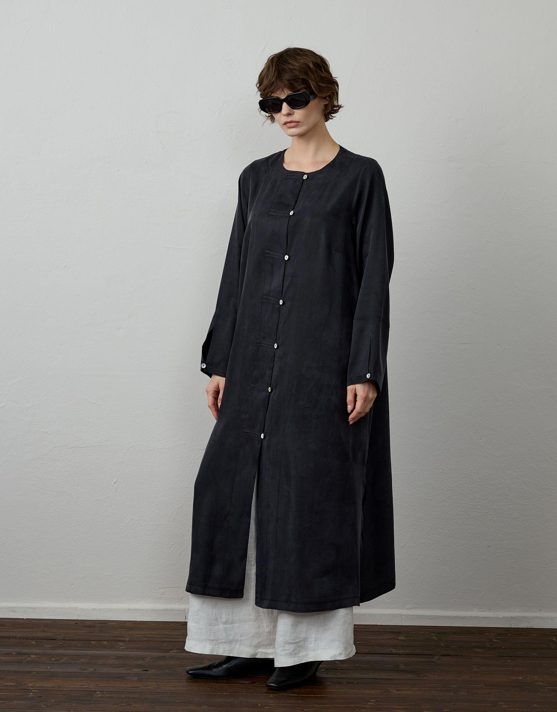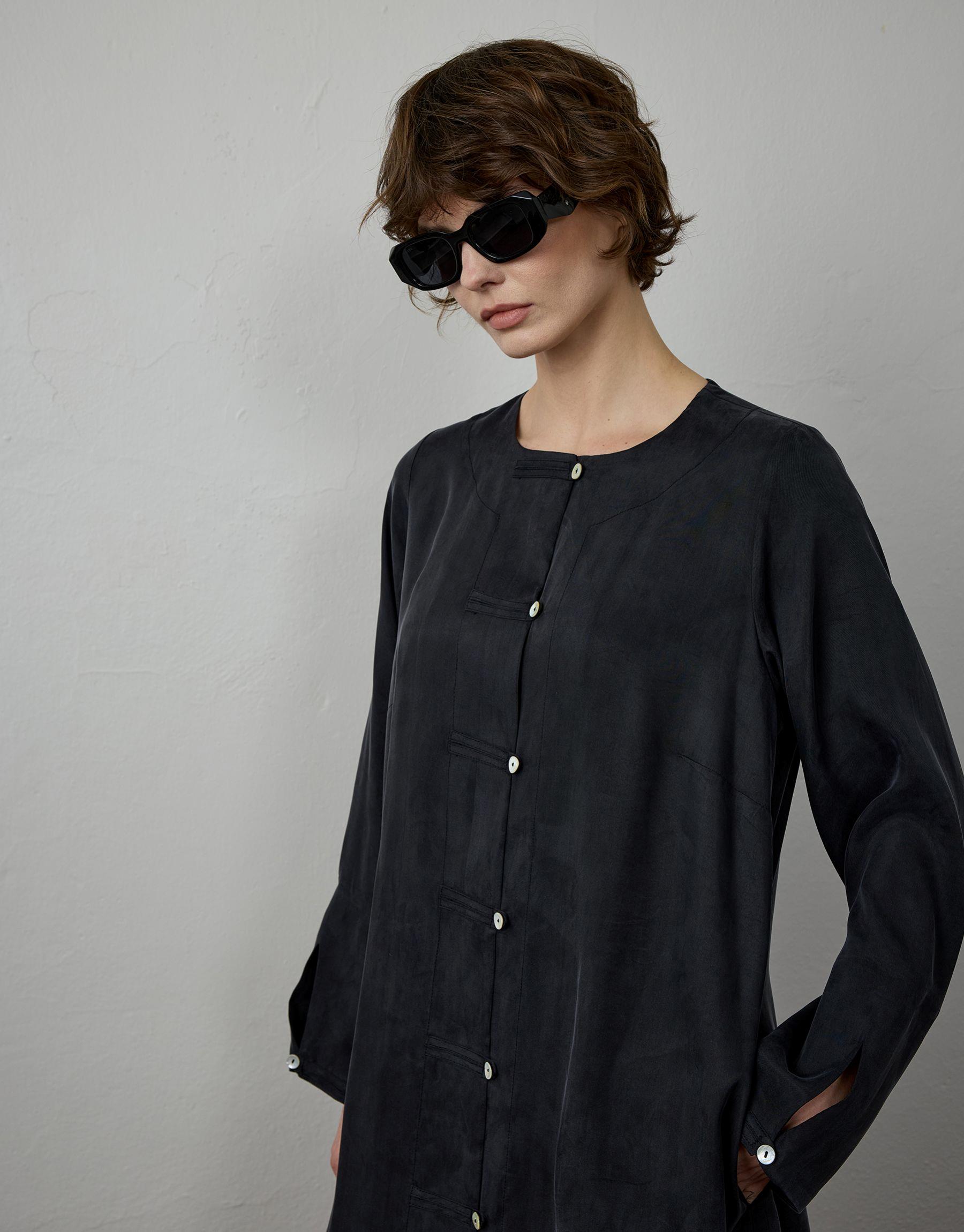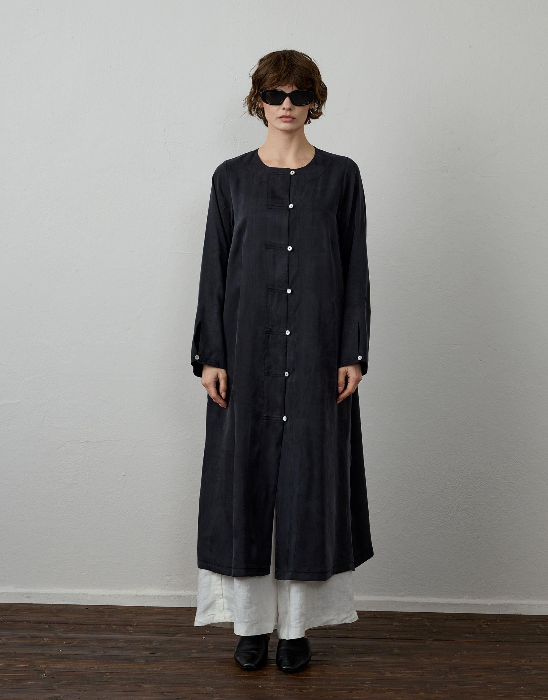 Siyah İpek Dokulu Uzun Tunik