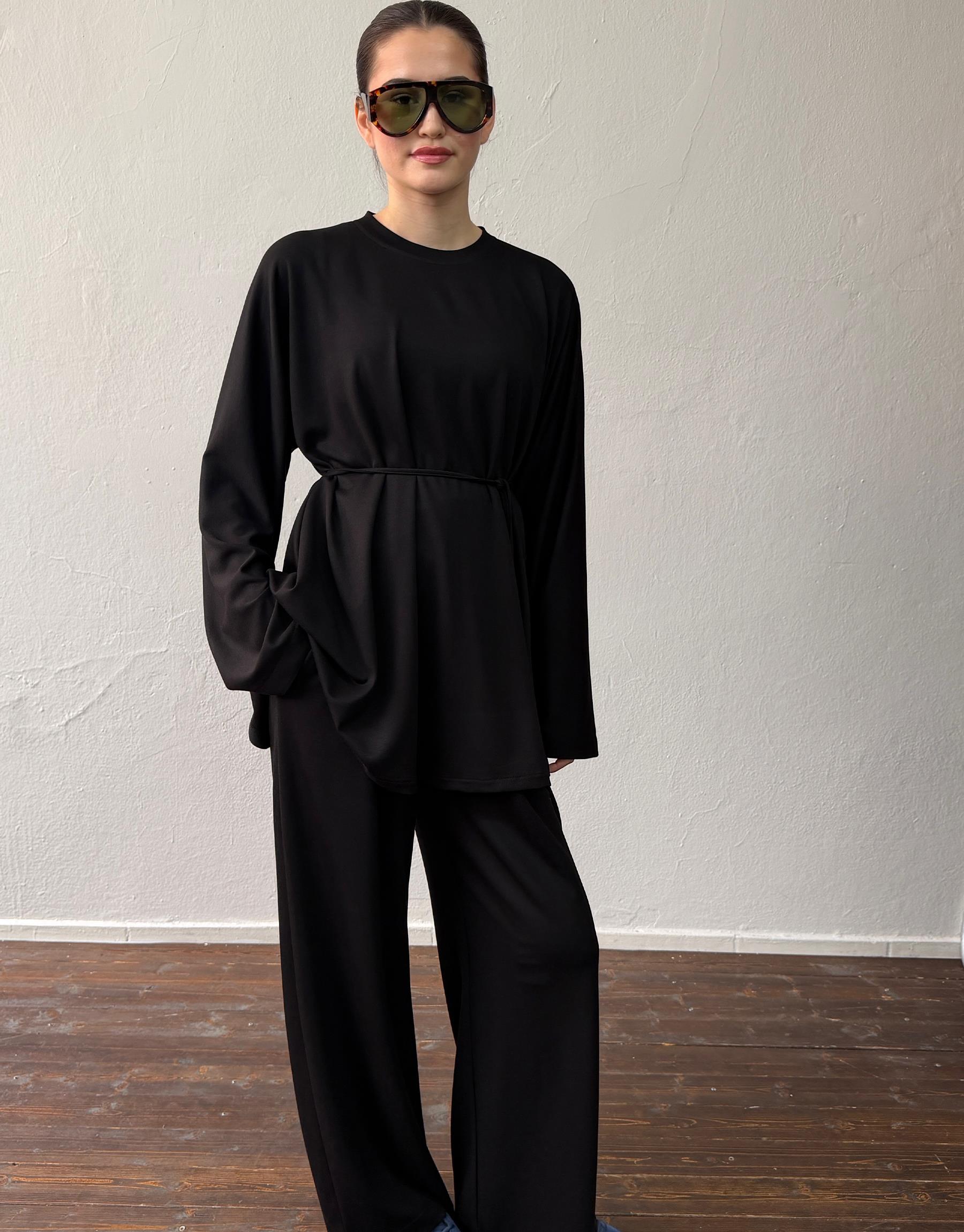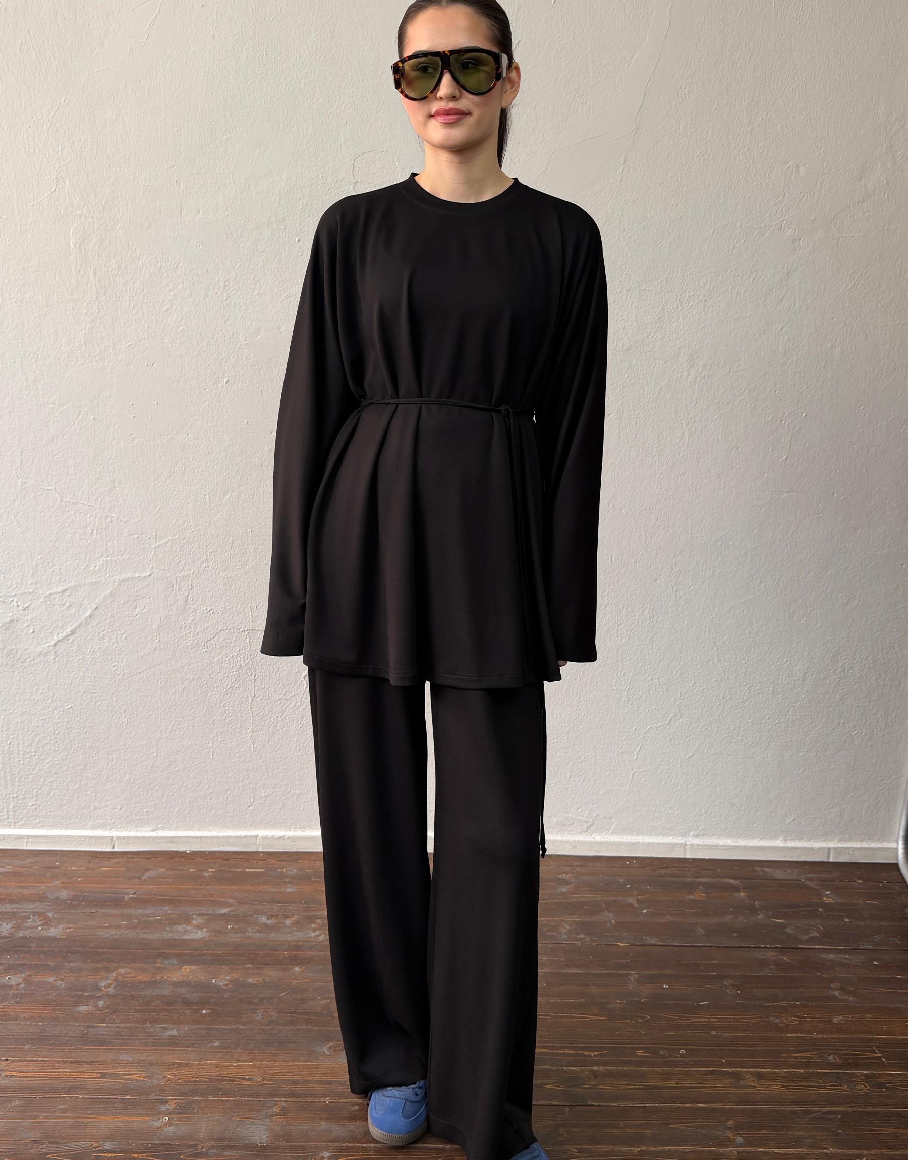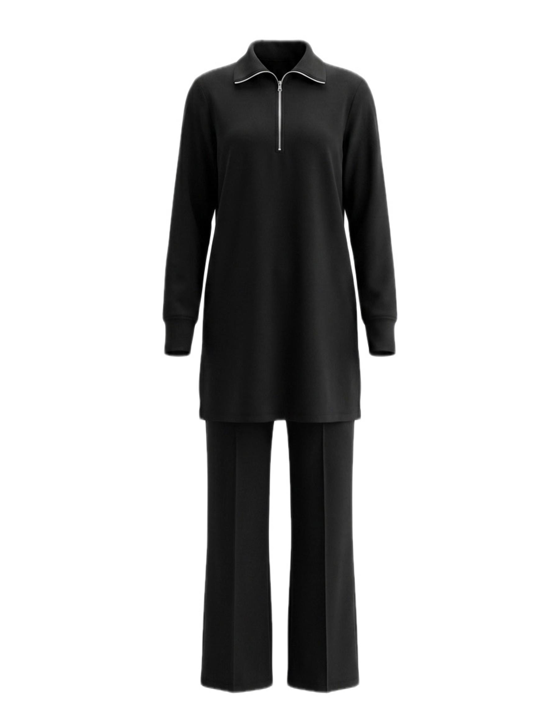 Bayan Siyah Orkide Modal Yarım Fermuarlı Takım | Sarprive