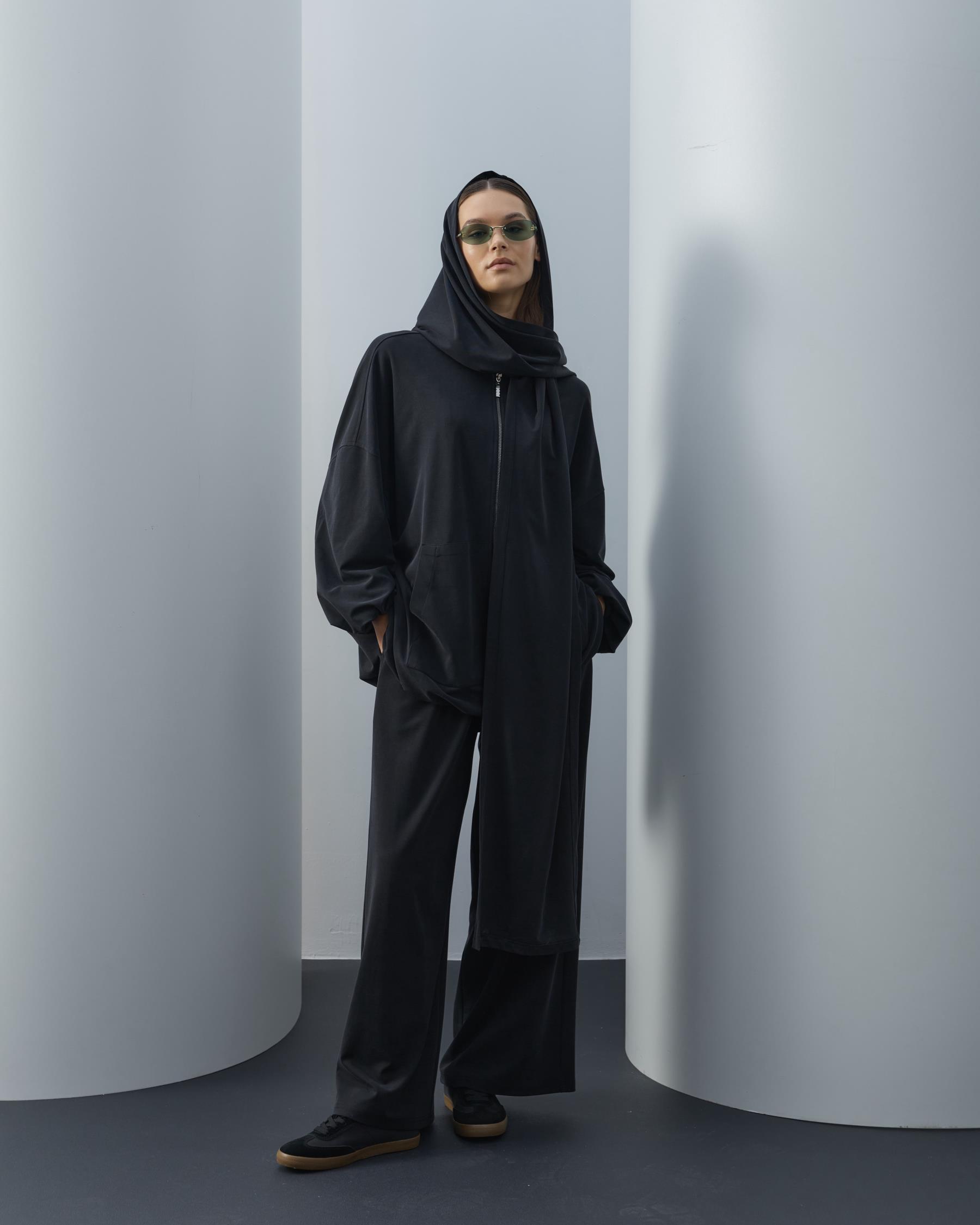 Bayan Siyah Örme Şal Detaylı Takım | Sarprive