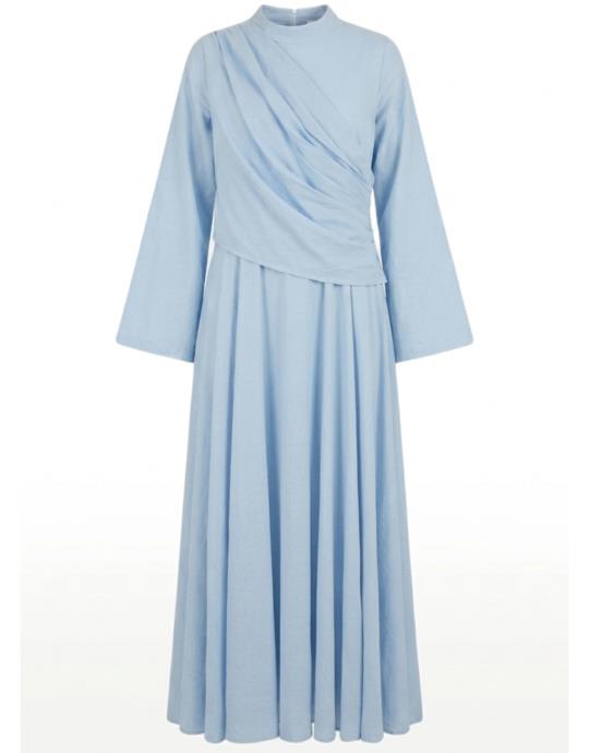 Açık Mavi Pamuklı Allerli Elbise