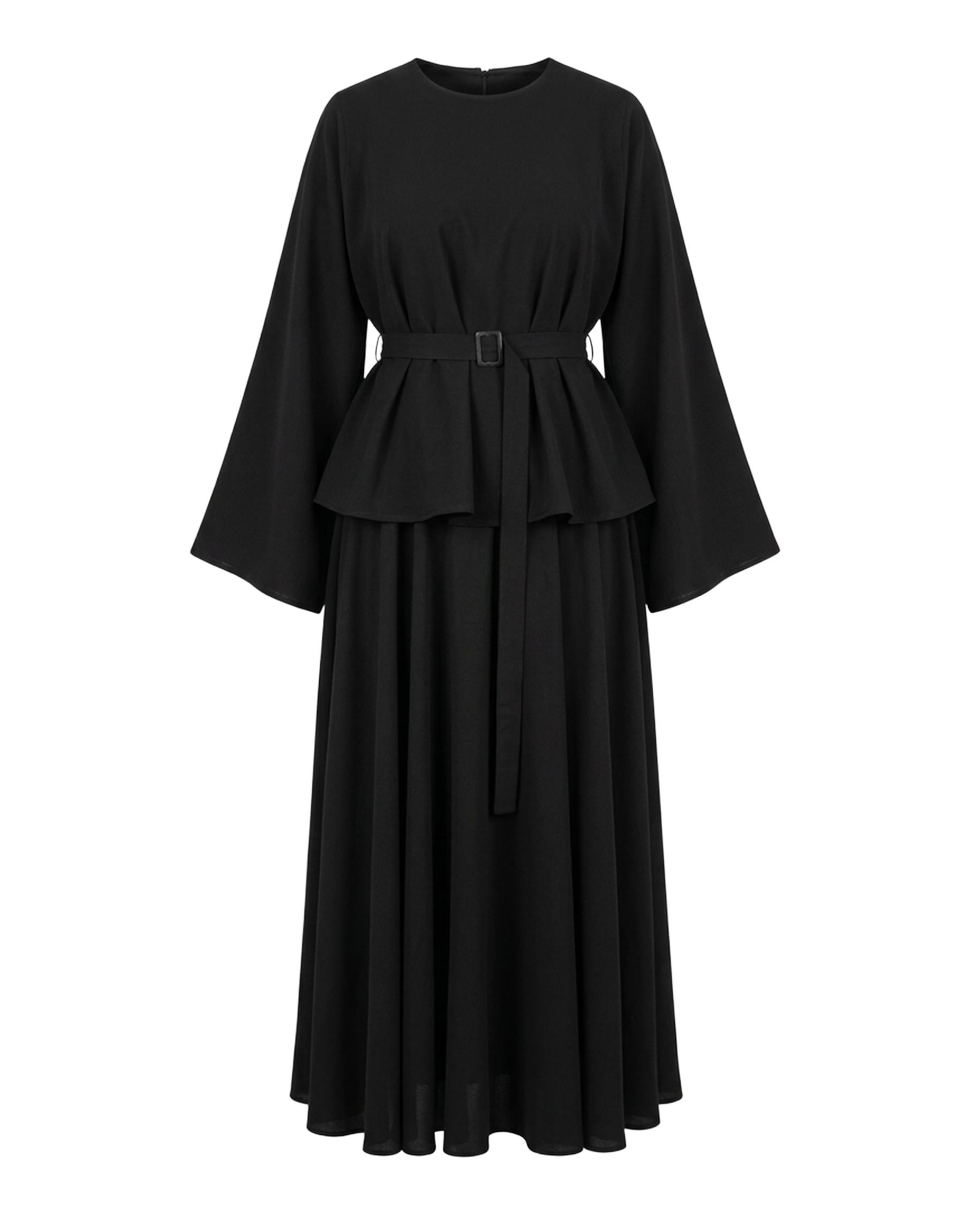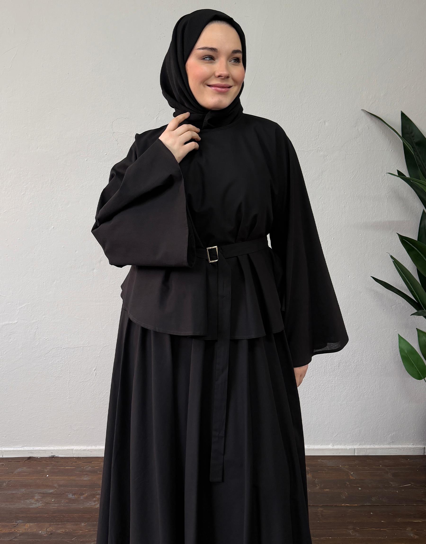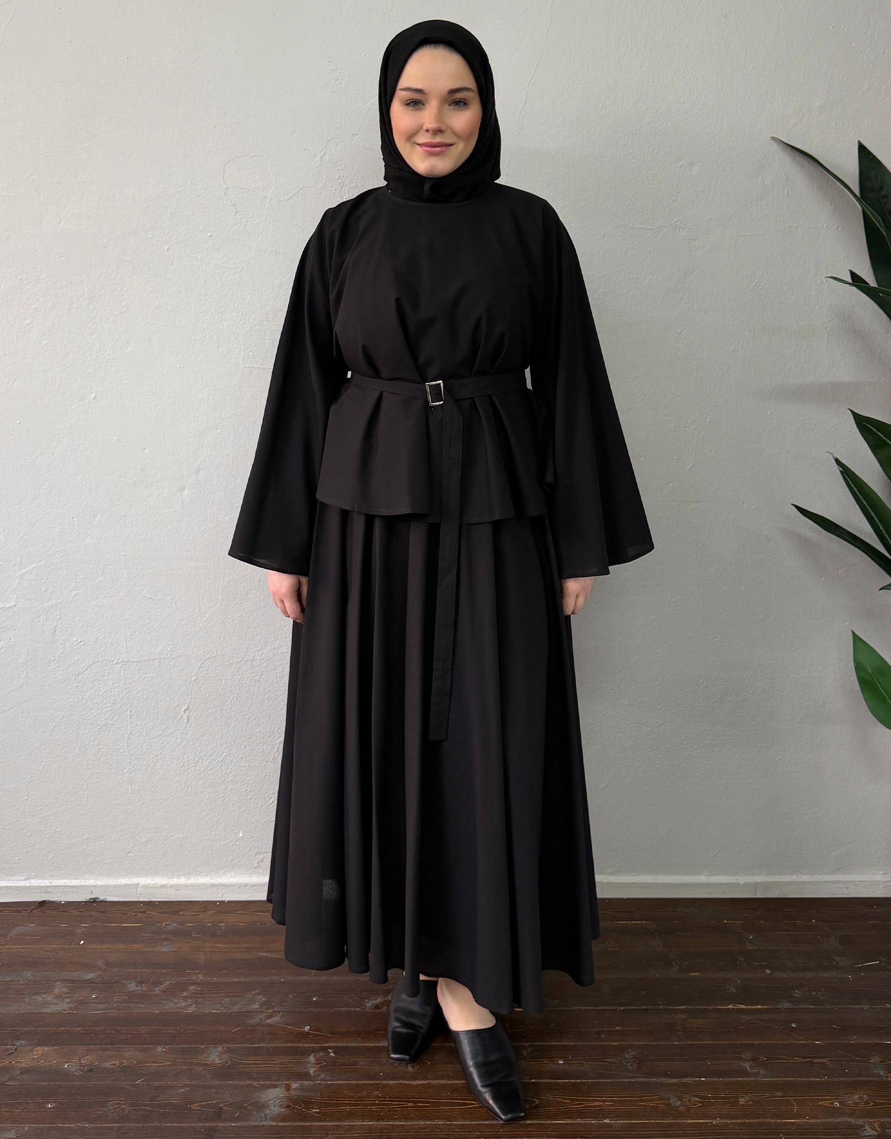 Siyah Pamuklu Kemerli Etekli Takım