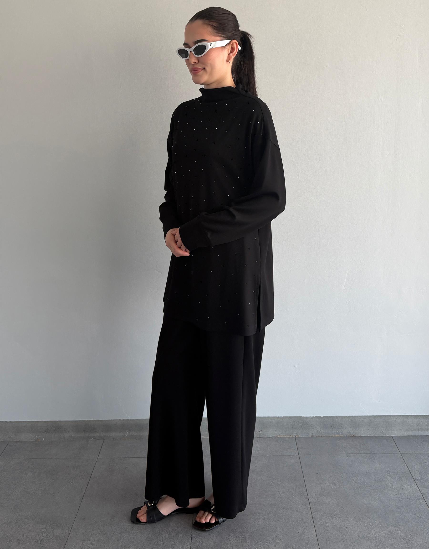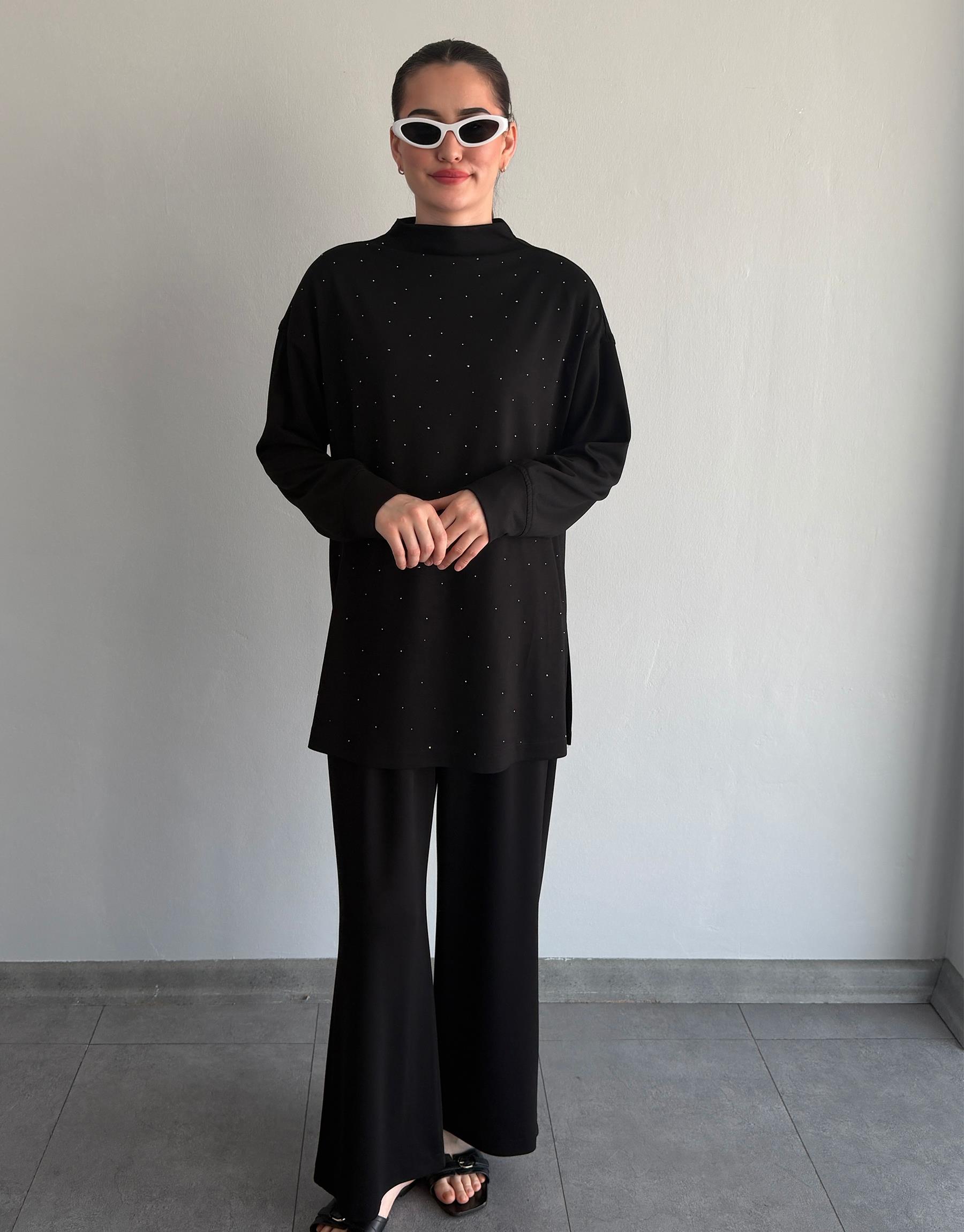 Bayan Siyah Şakayık Modal Taşlı Takım | Sarprive