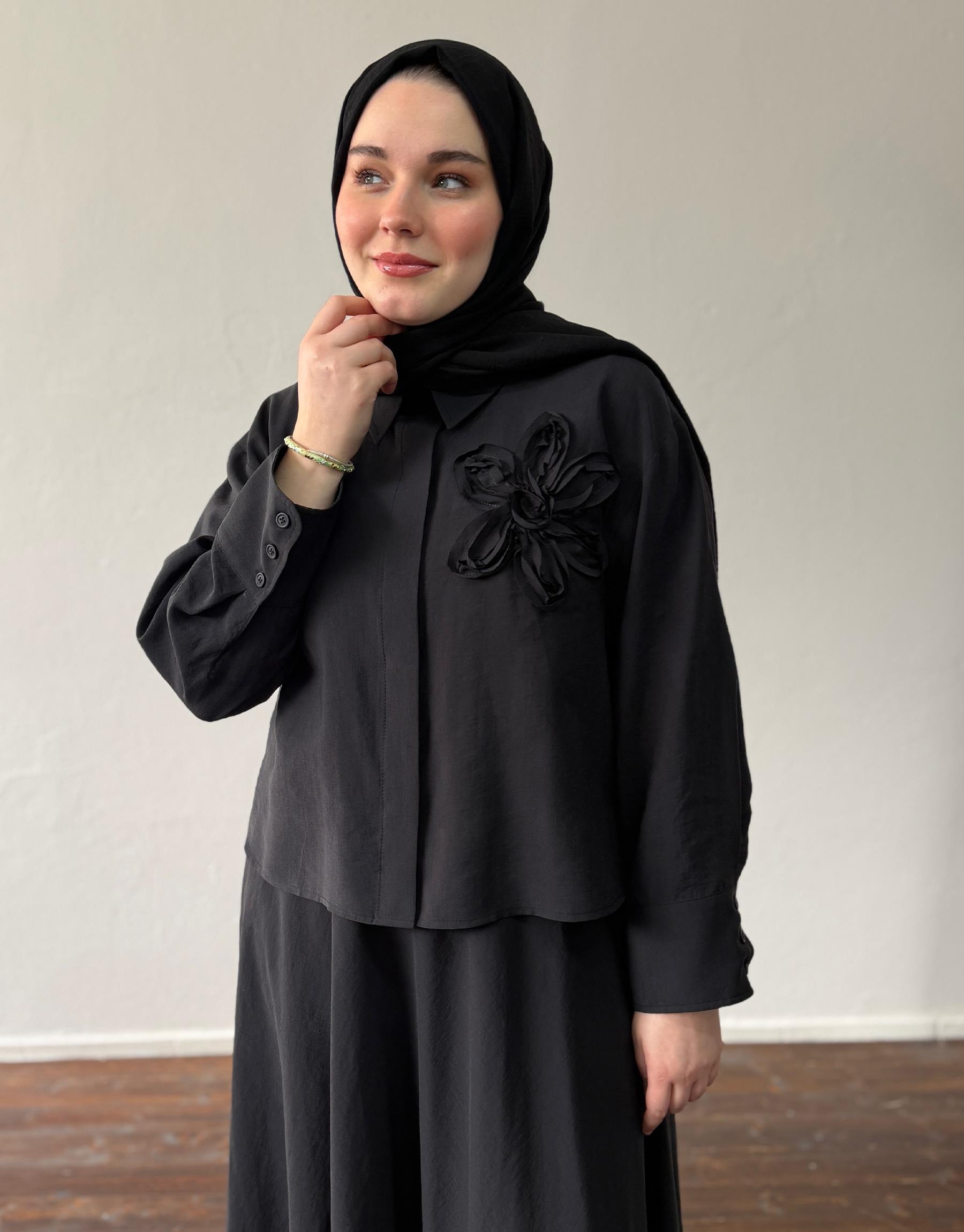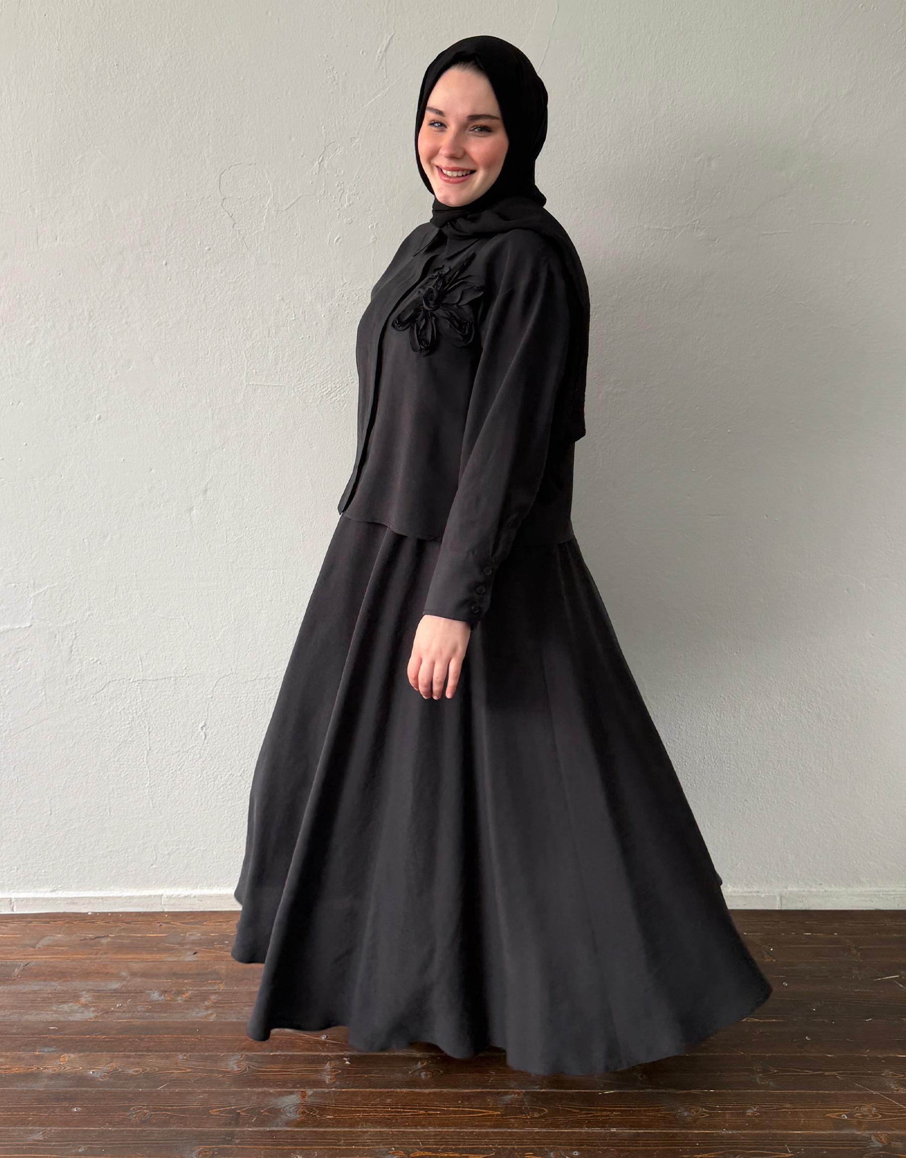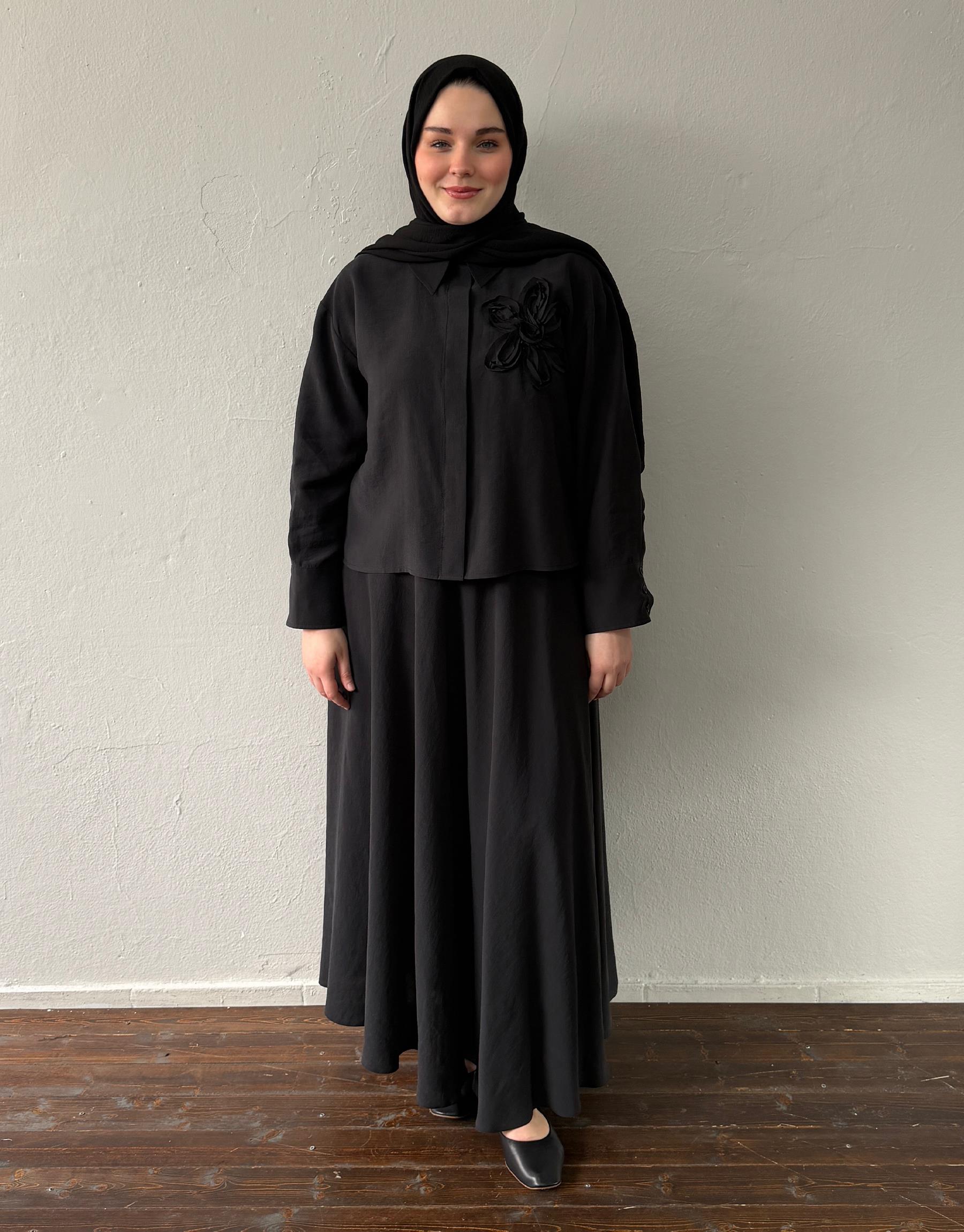 Doğal liflerden elde edilen yumuşacık tensel kumaşıyla Tensel etekli takım, hafifliğin ve sofistike sadeliğin birleştiği gömleğindeki zarif nakış detayıyla modern bir yorum sunar. Cilt dostu yapısı, dökümlü duruşu ve özenle düşünülmüş detaylarıyla stilinize zarif bir soluk getirir.Etek beli lastikli ve astarsızdır.