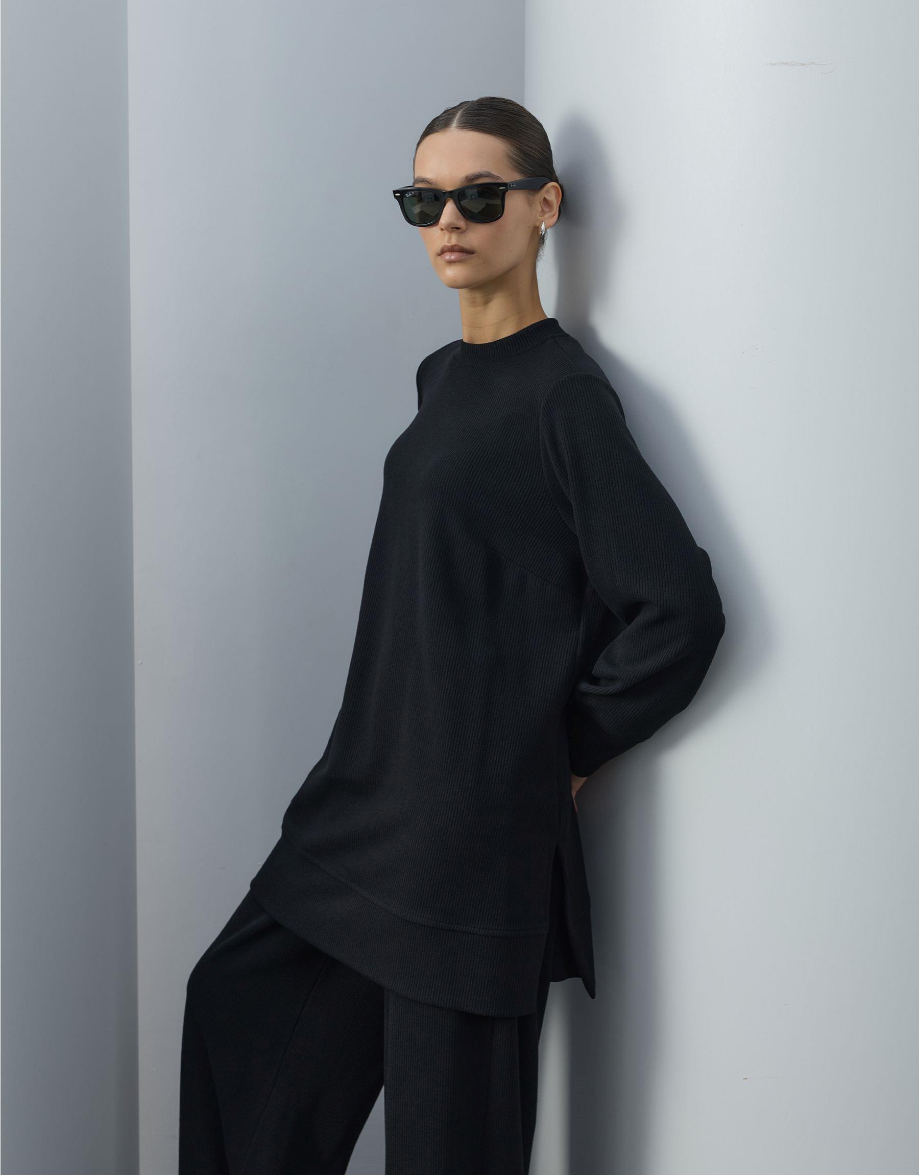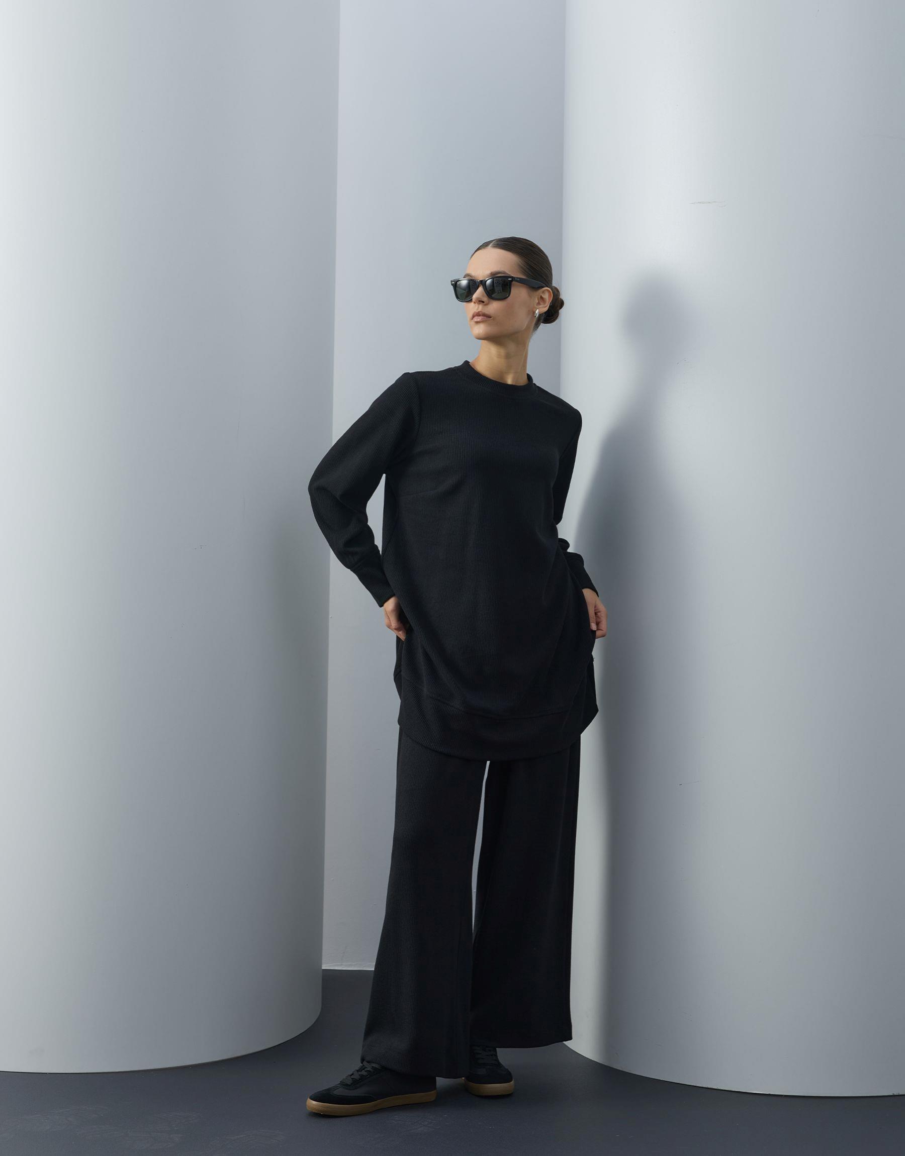 Bayan Siyah Triko Bol Formlu Takım | Sarprive